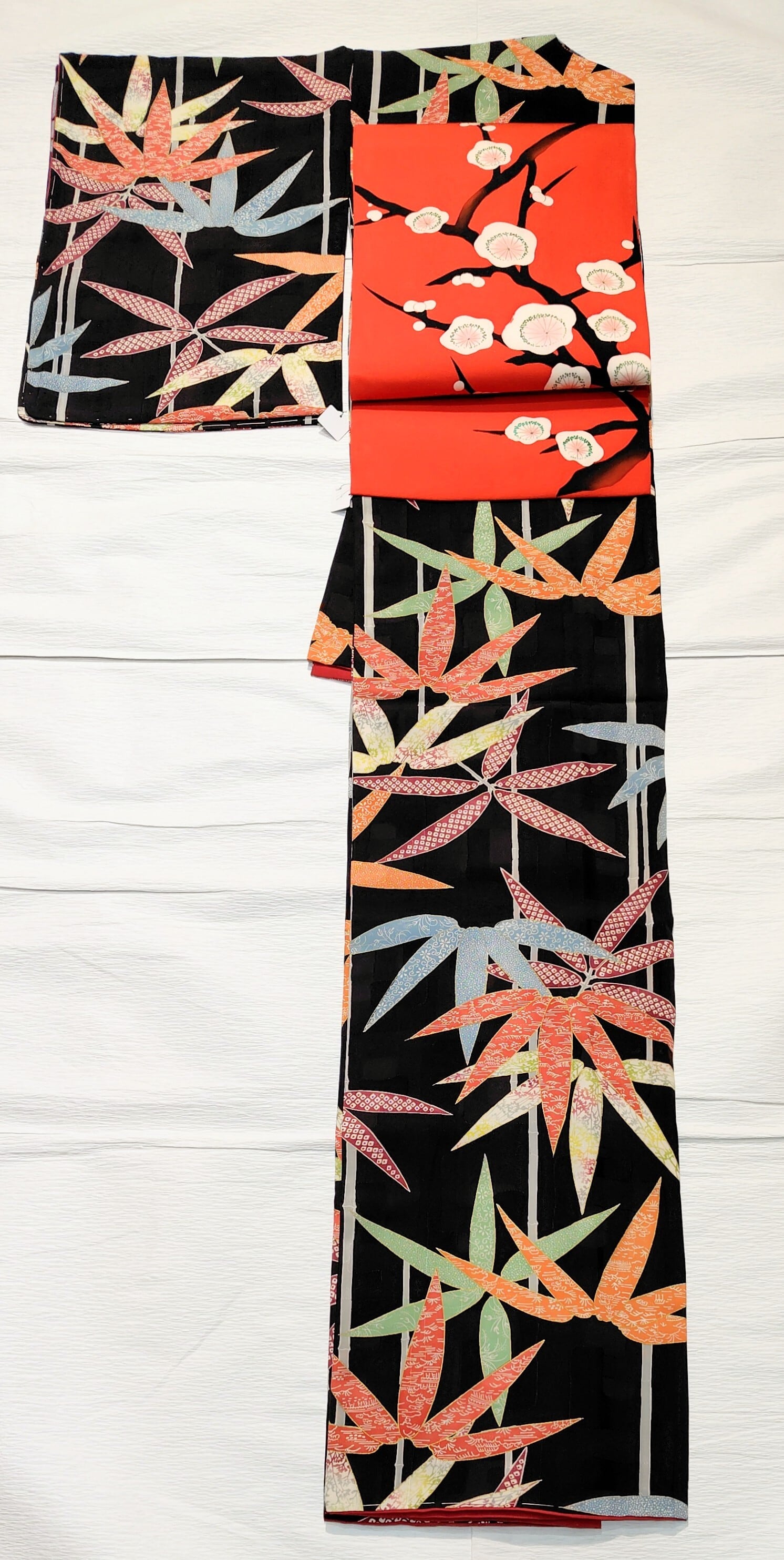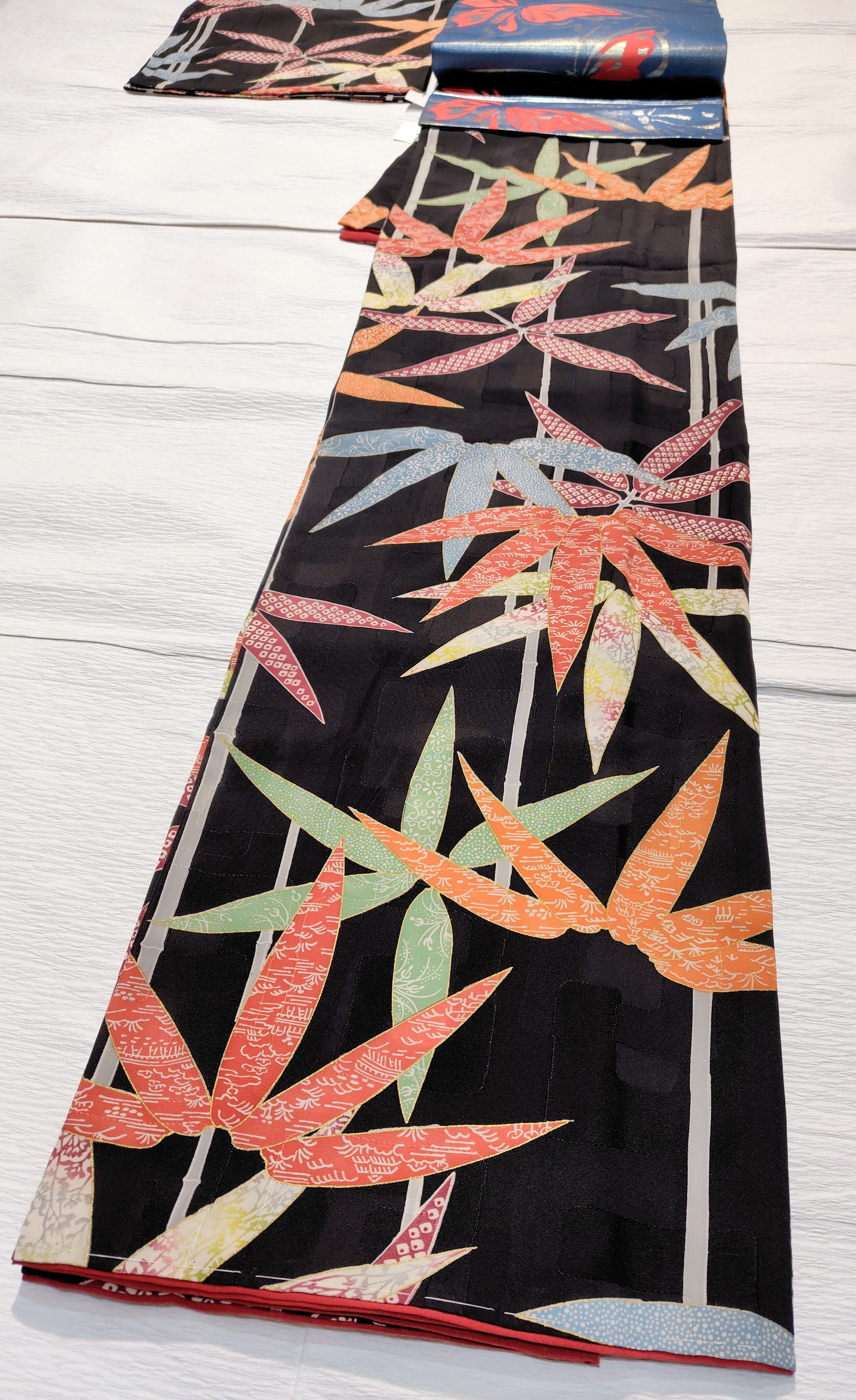 柄は竹のみのシンプルさですが、まるで江戸時代のお着物や浮世絵に描かれるお着物のように大胆かつ小技が利いています◎