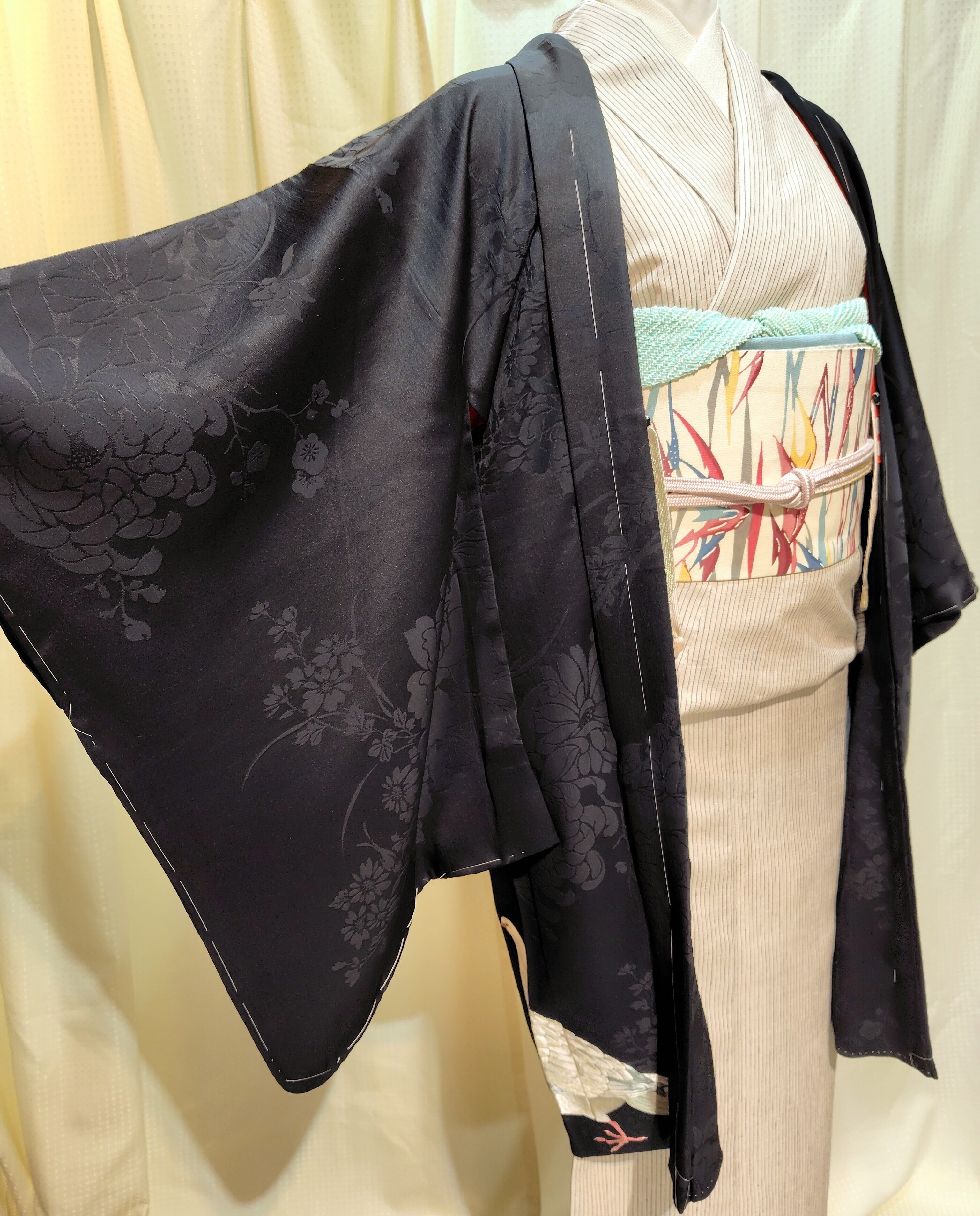 黒地に浮かぶ薔薇はとても美しく、アンティークの和洋折衷の魅力◎
