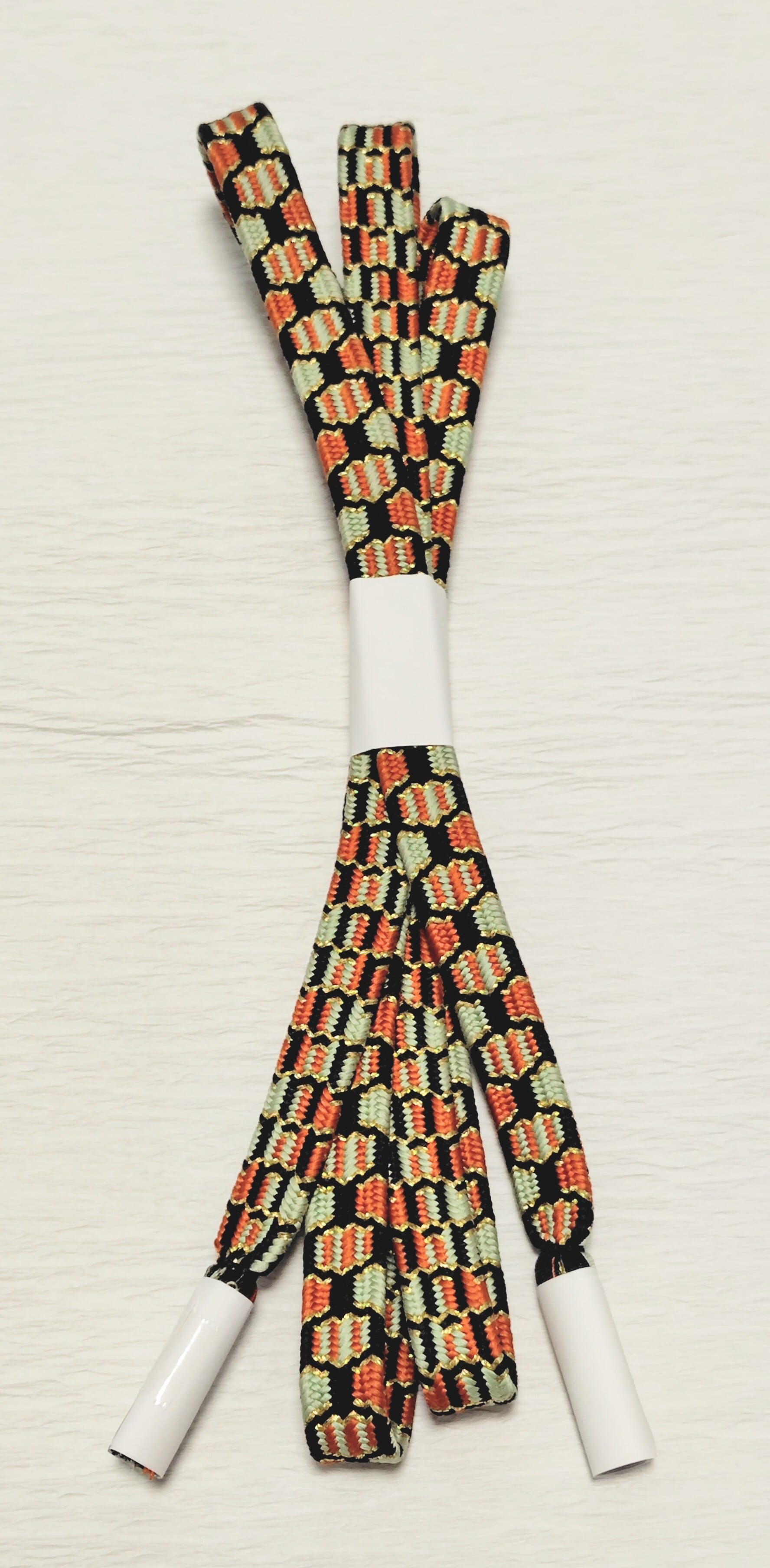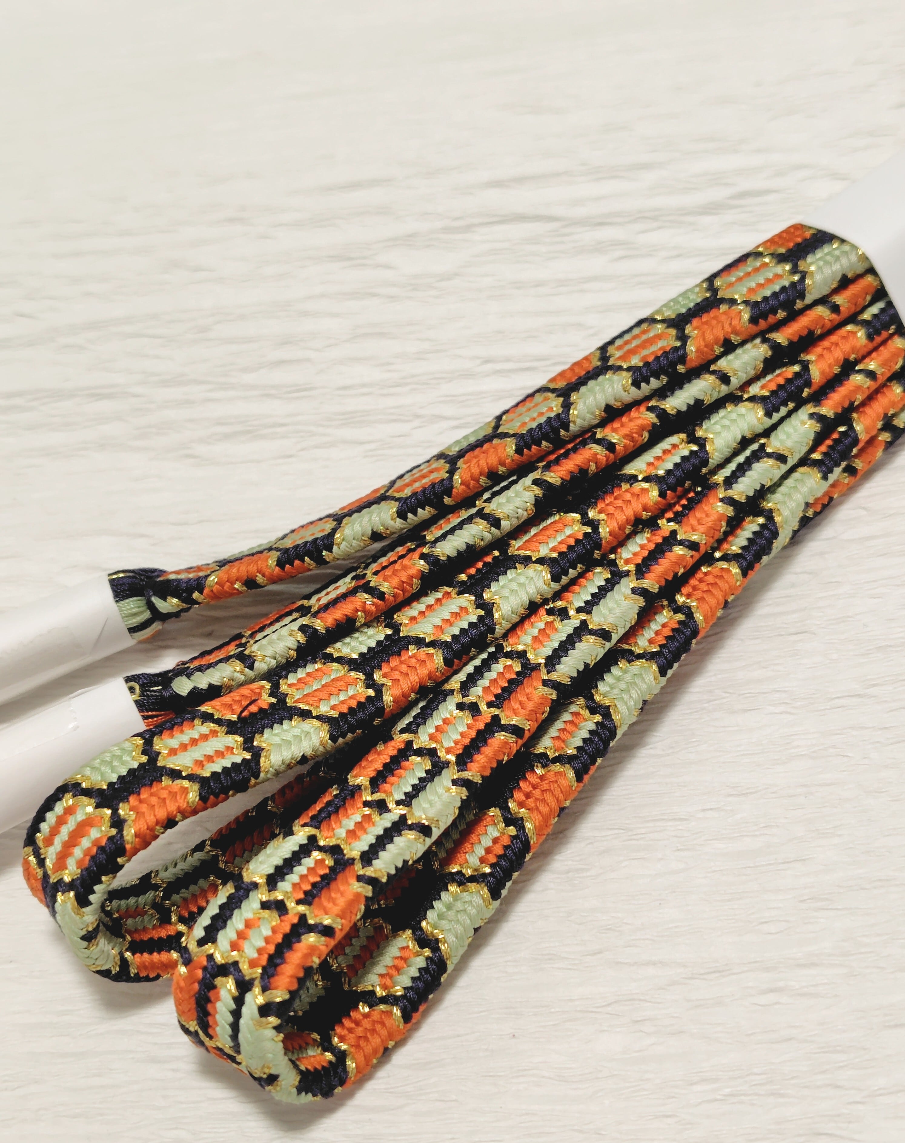 亀甲組の組紐は平安の時代より、太刀の緒、鎧の繰締めの緒に使われ装飾性と確かな締め心地による安定が好まれ大切にされてきました。