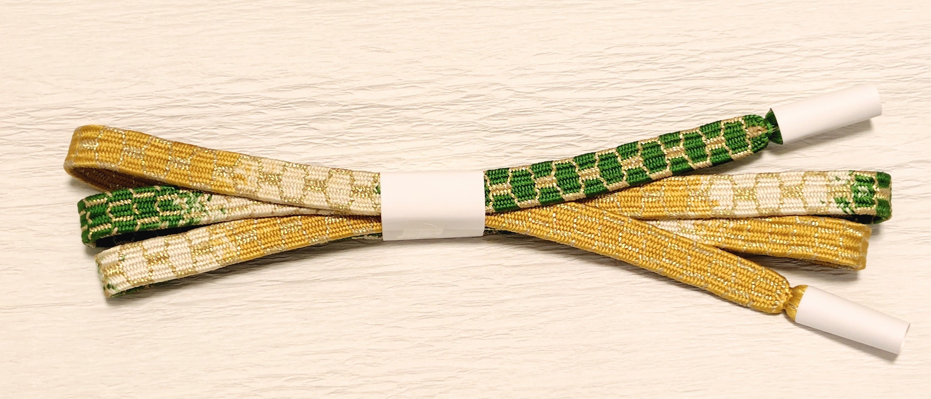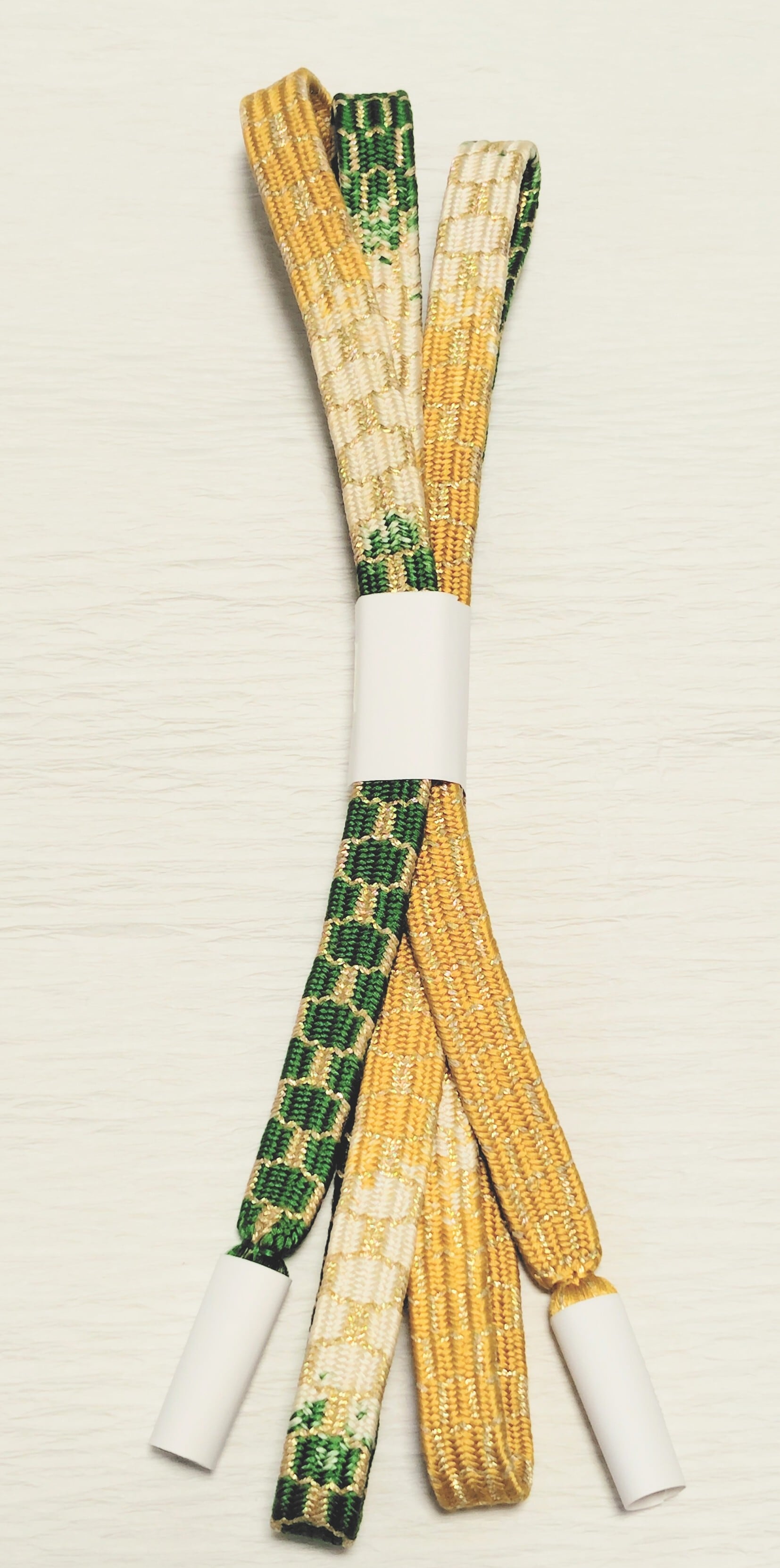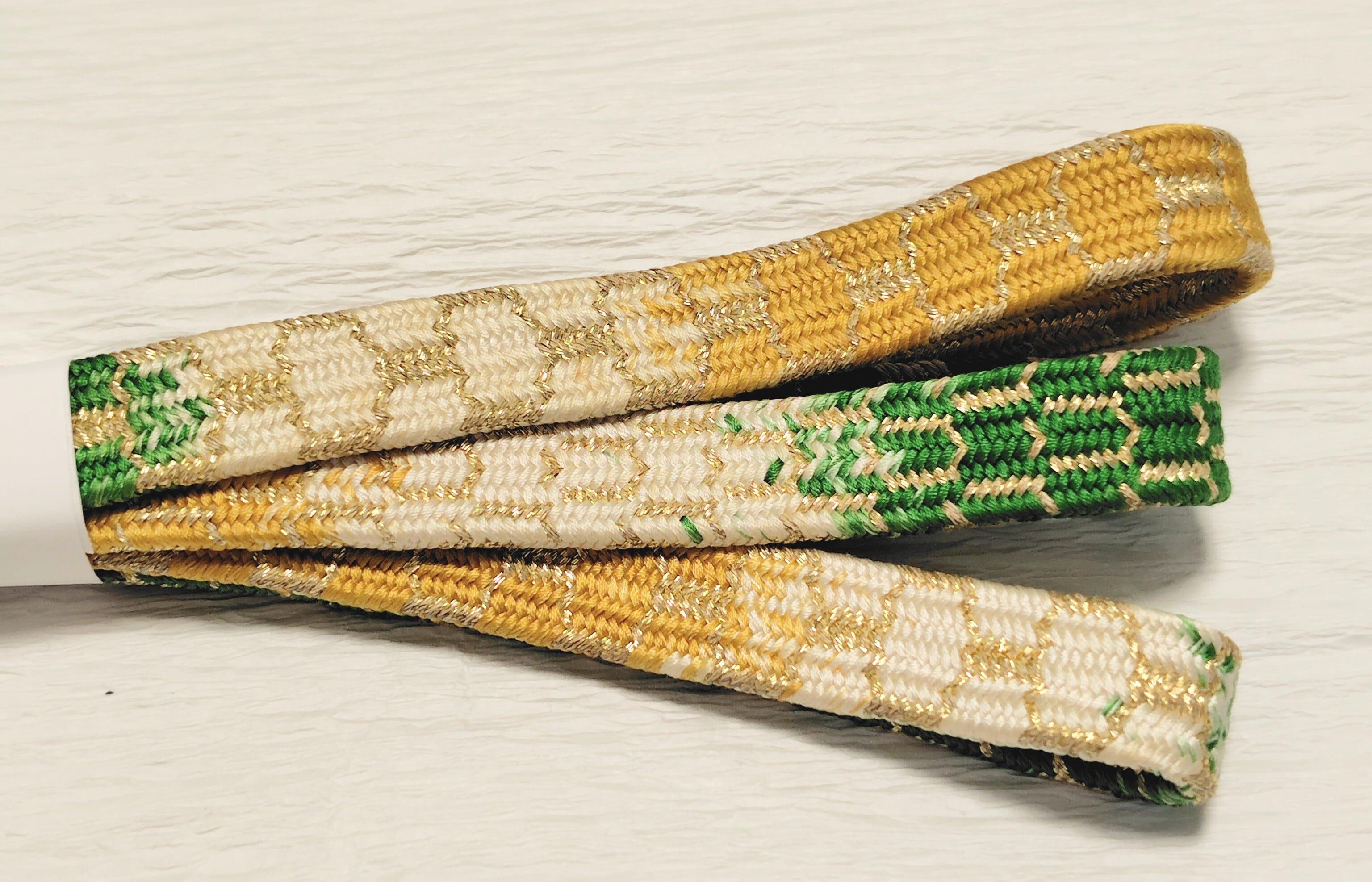 道明製 亀甲組 緑色と山吹色に金糸 段染です。