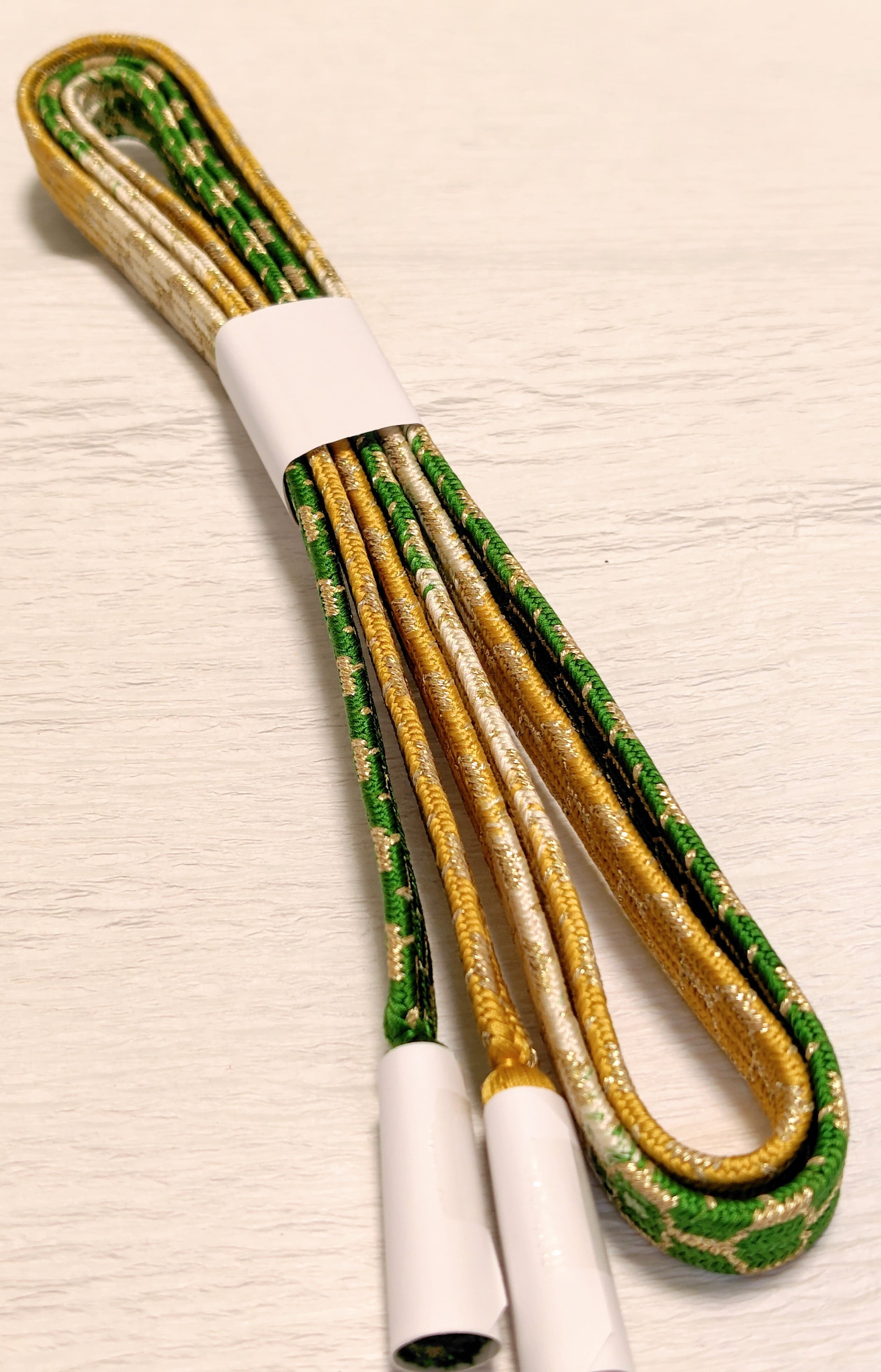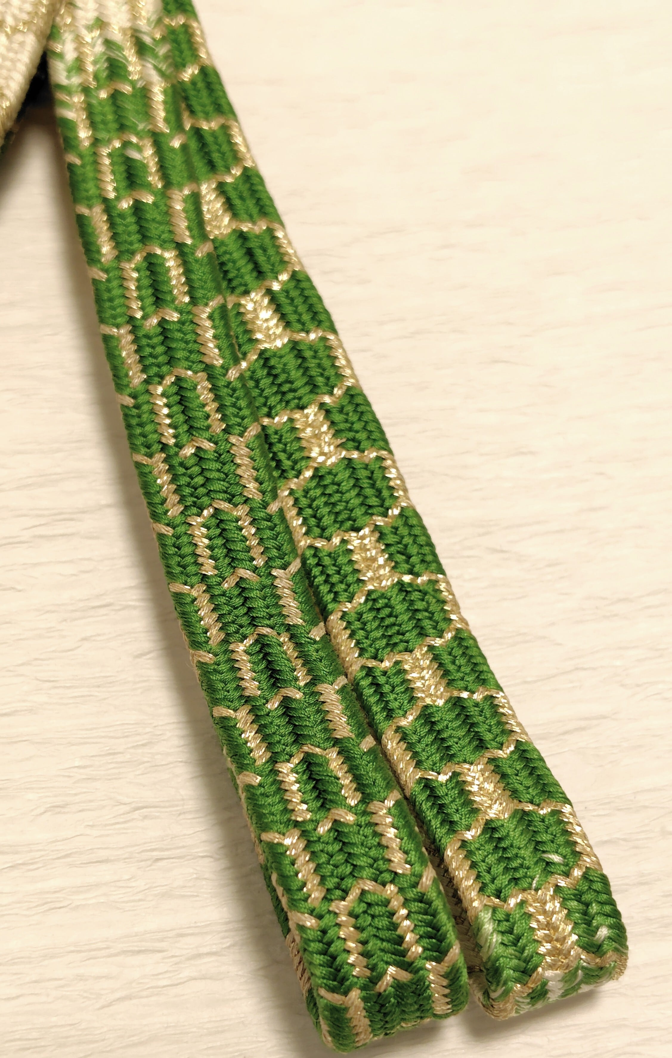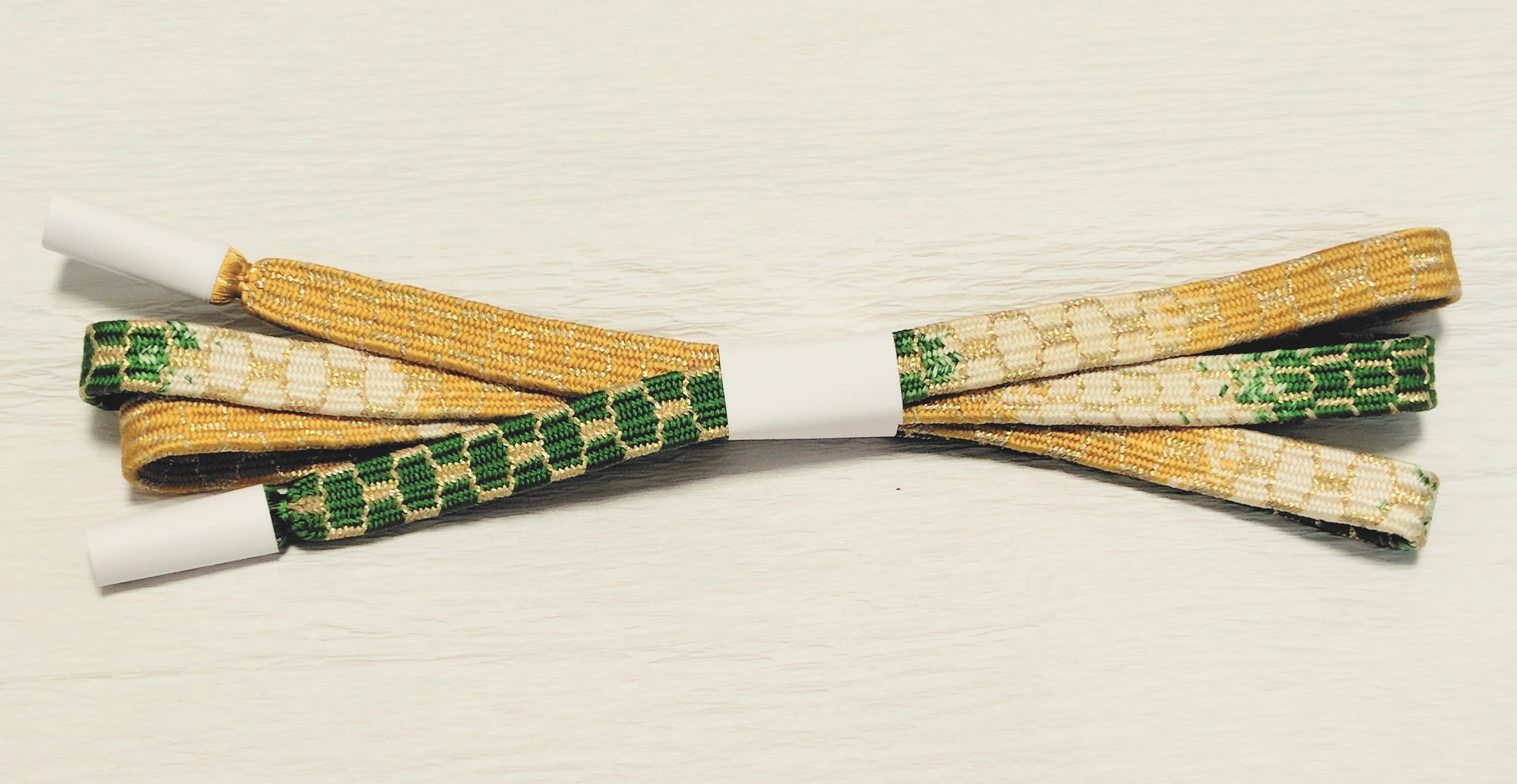 道明製 亀甲組 緑色と山吹色に金糸 段染です。