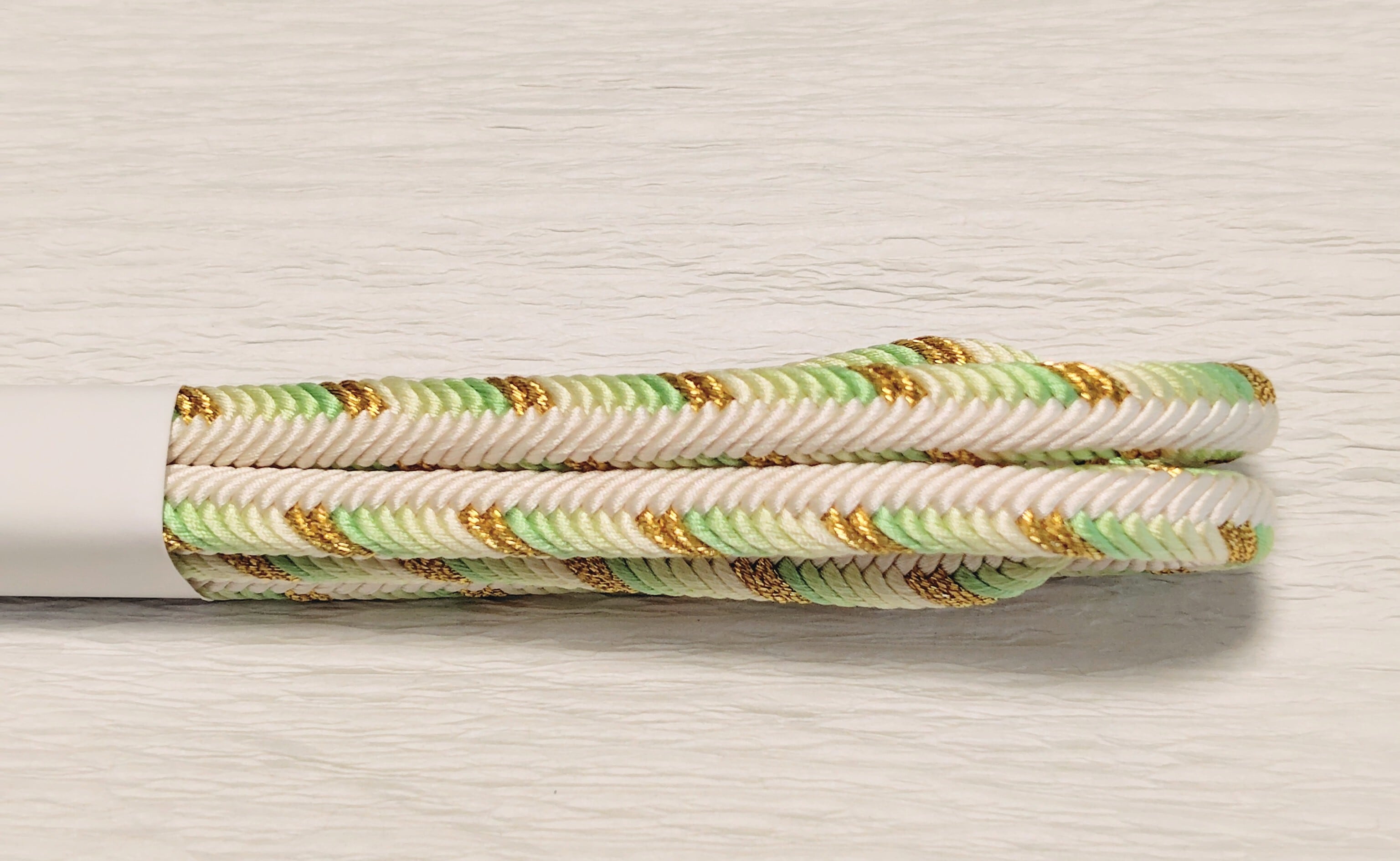 道明製 奈良組 丸胡蝶 薄い緑色のグラデーションです。