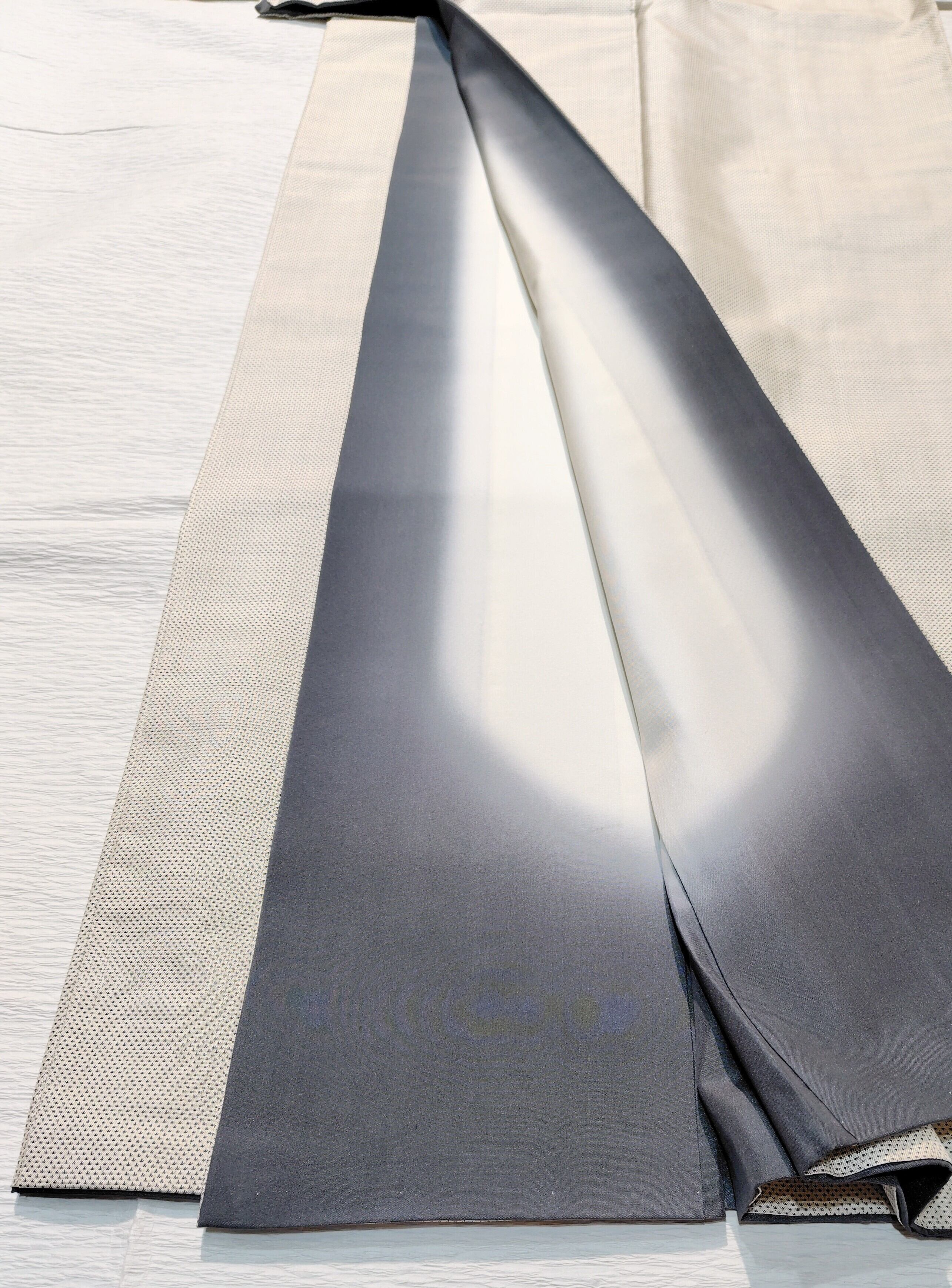 白地にグレーで蚊絣という、極めてシンプルな美しさです。