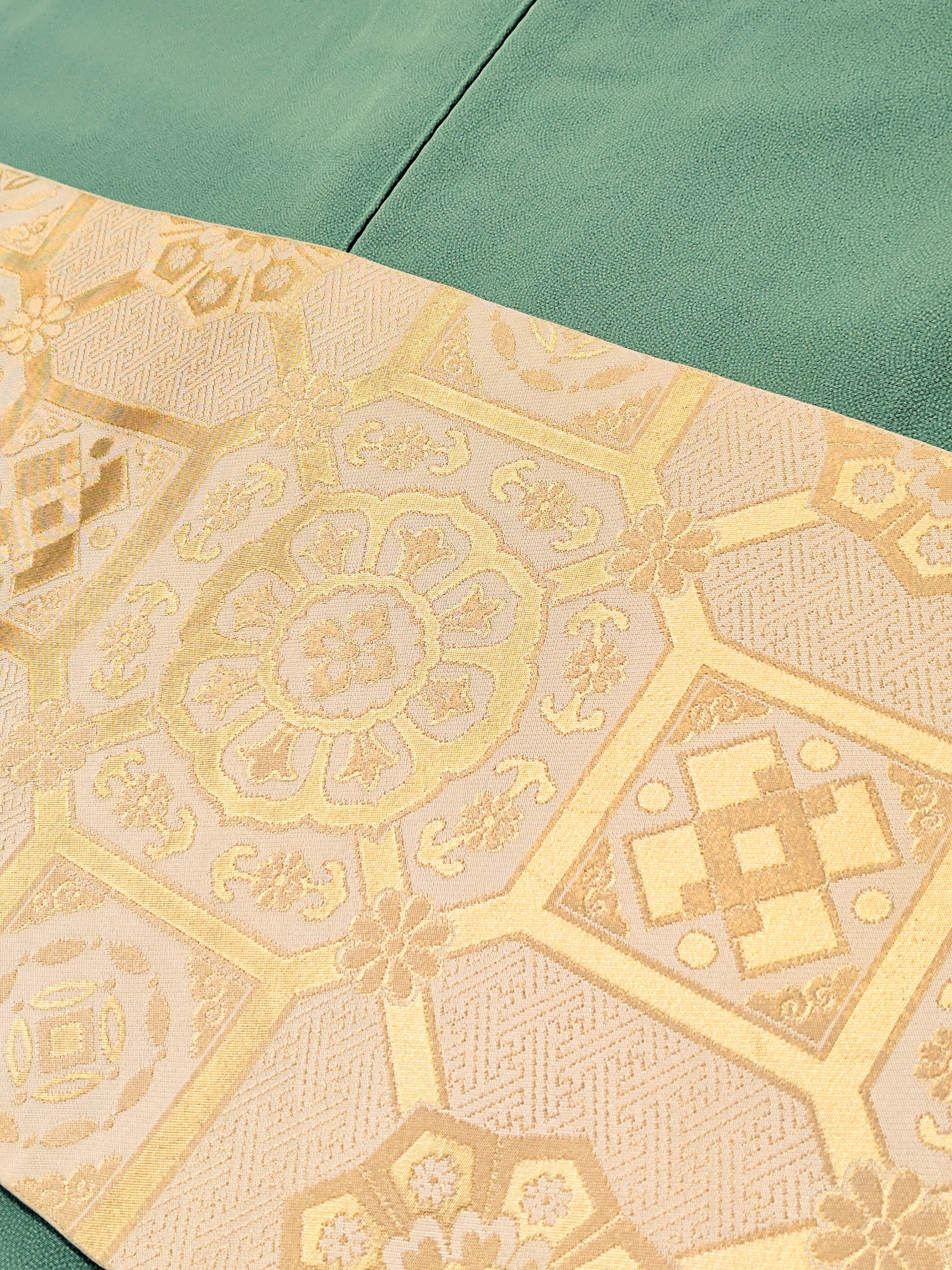 今回は白地に古典的な柄 蜀江文の礼装向き袋帯となっています。