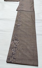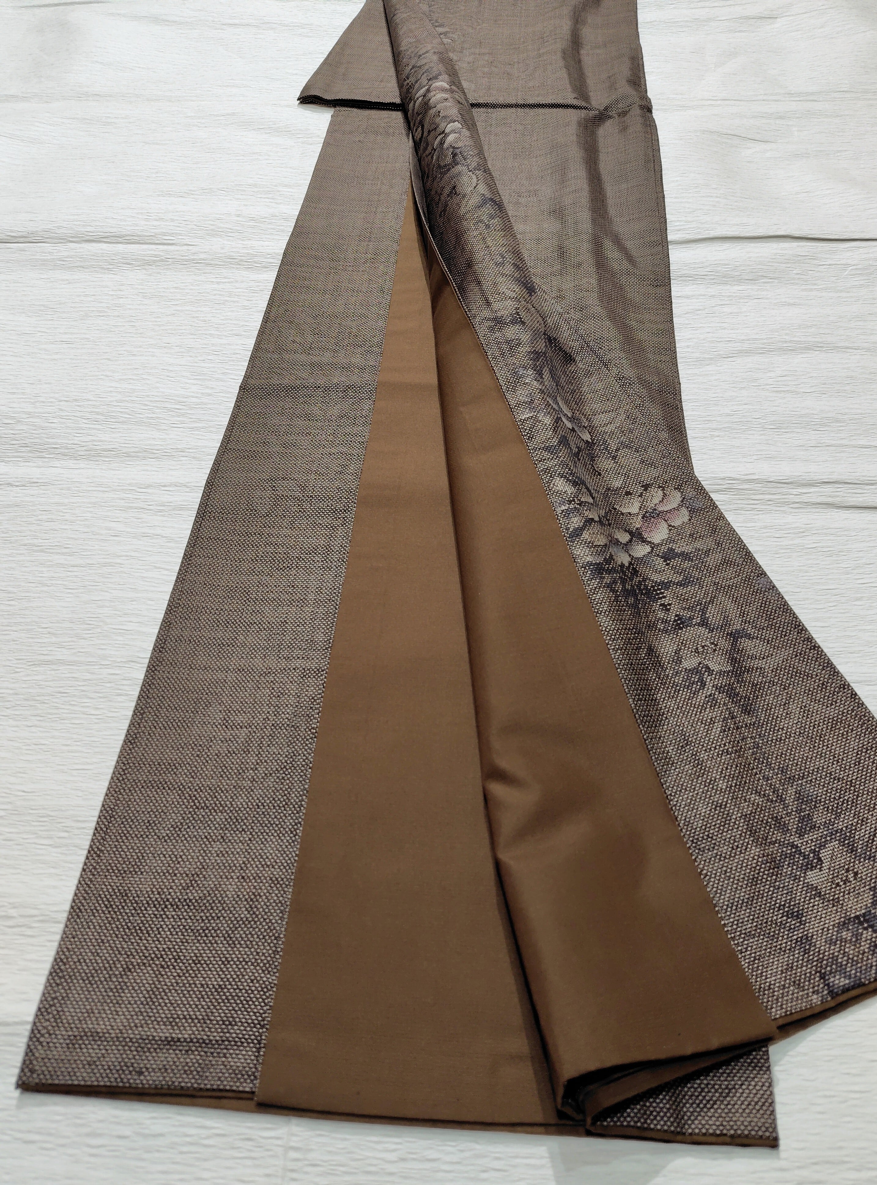 八掛けも焦げ茶色、泥染めに馴染む静かな美しい組み合わせ。