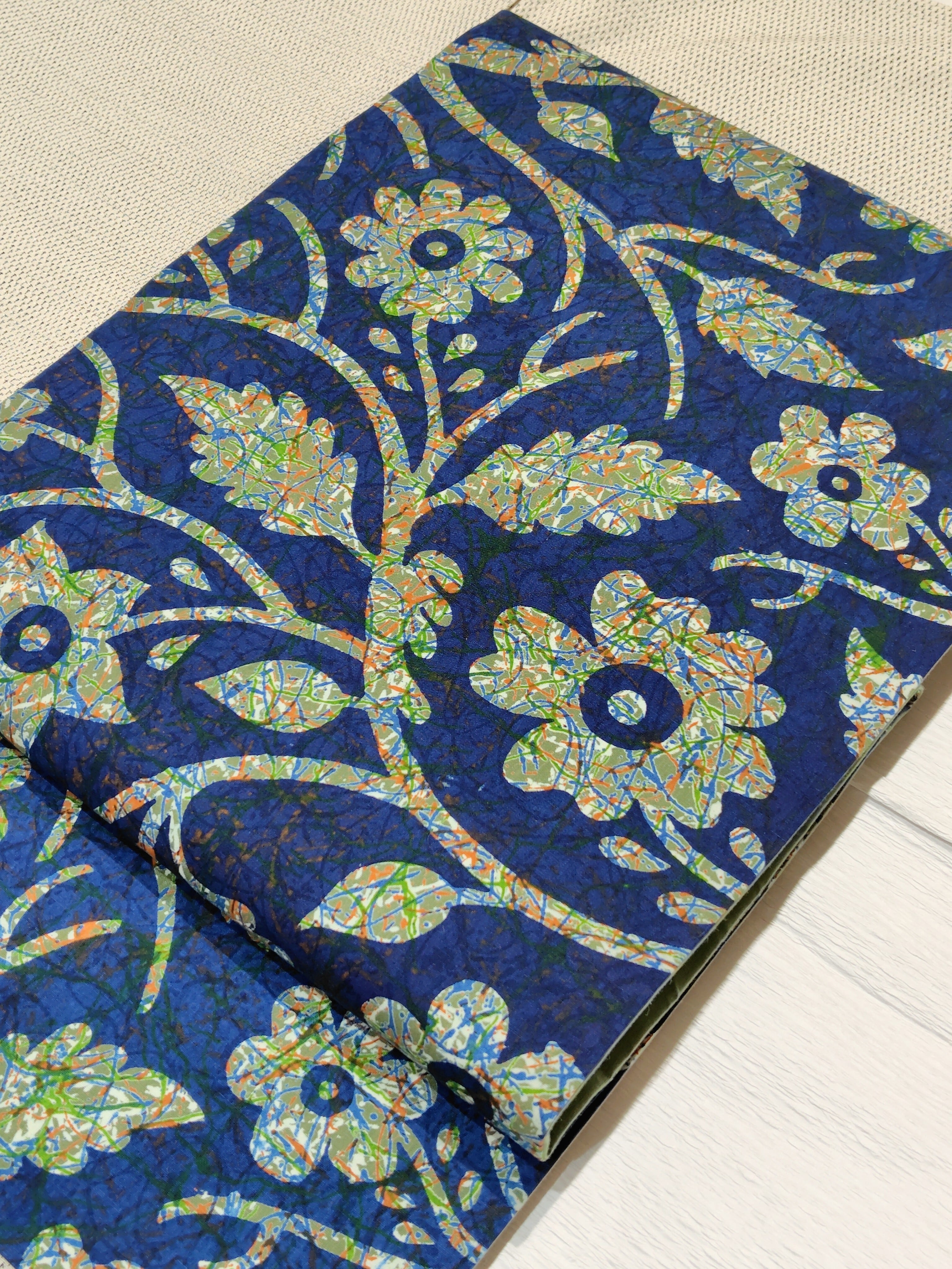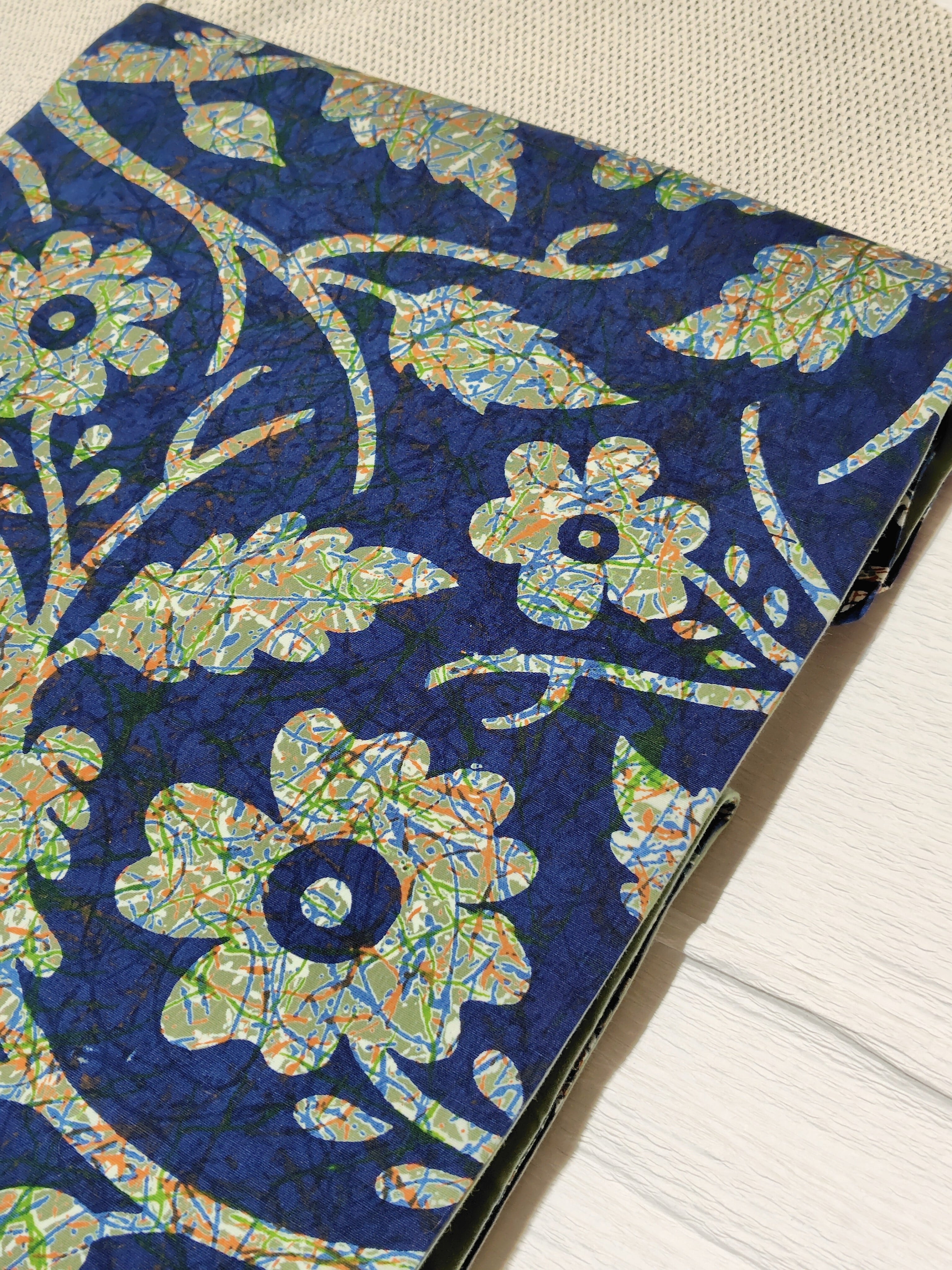 ラピスラズリのような綺麗な青色とモスグリーンのようなくすんだ緑色に可愛いお花柄。