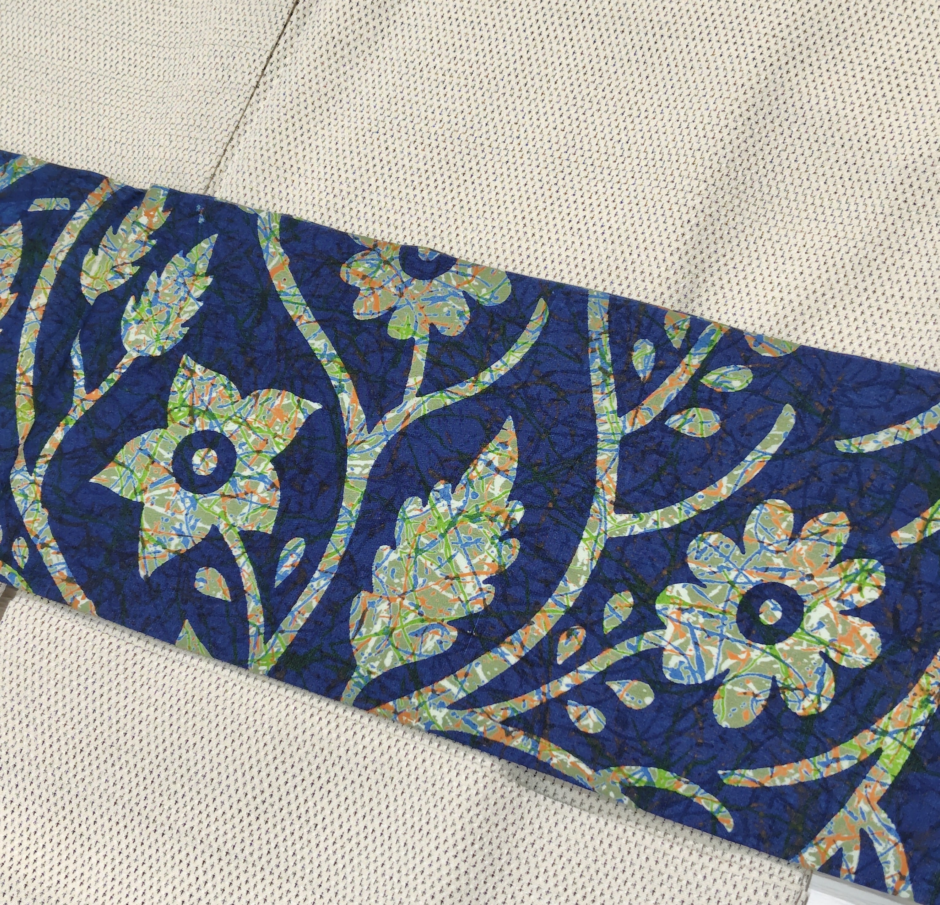 青色×緑色の可愛いお花柄のバティック名古屋帯です。