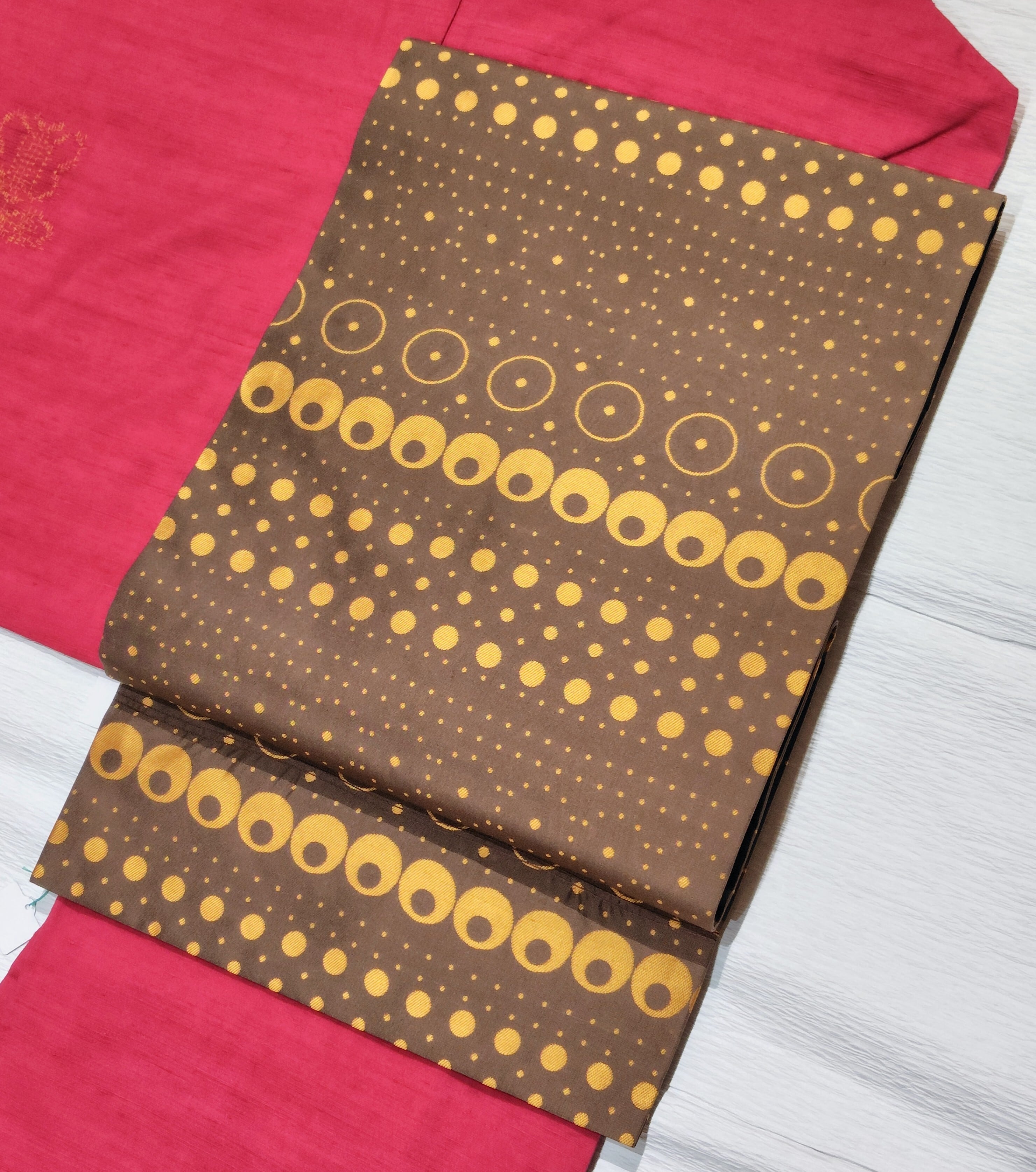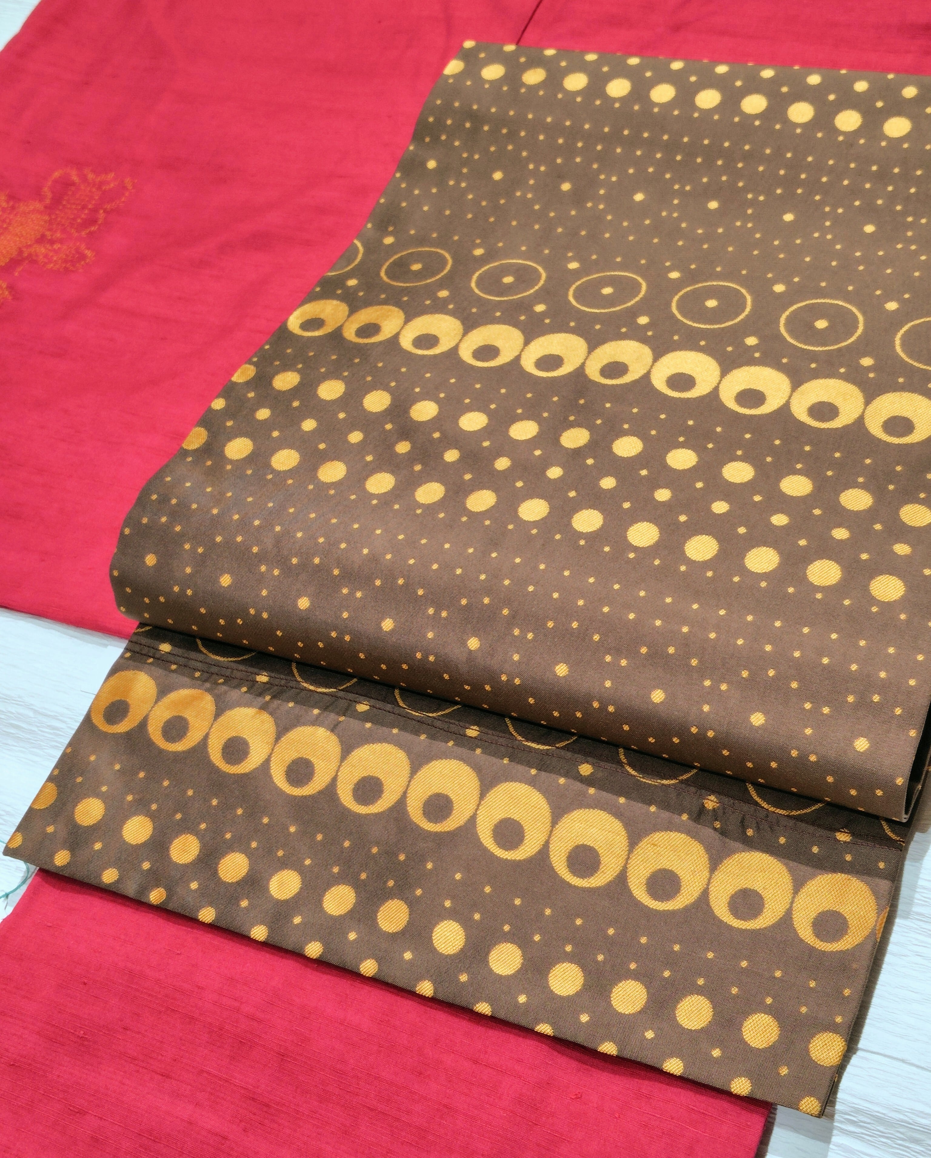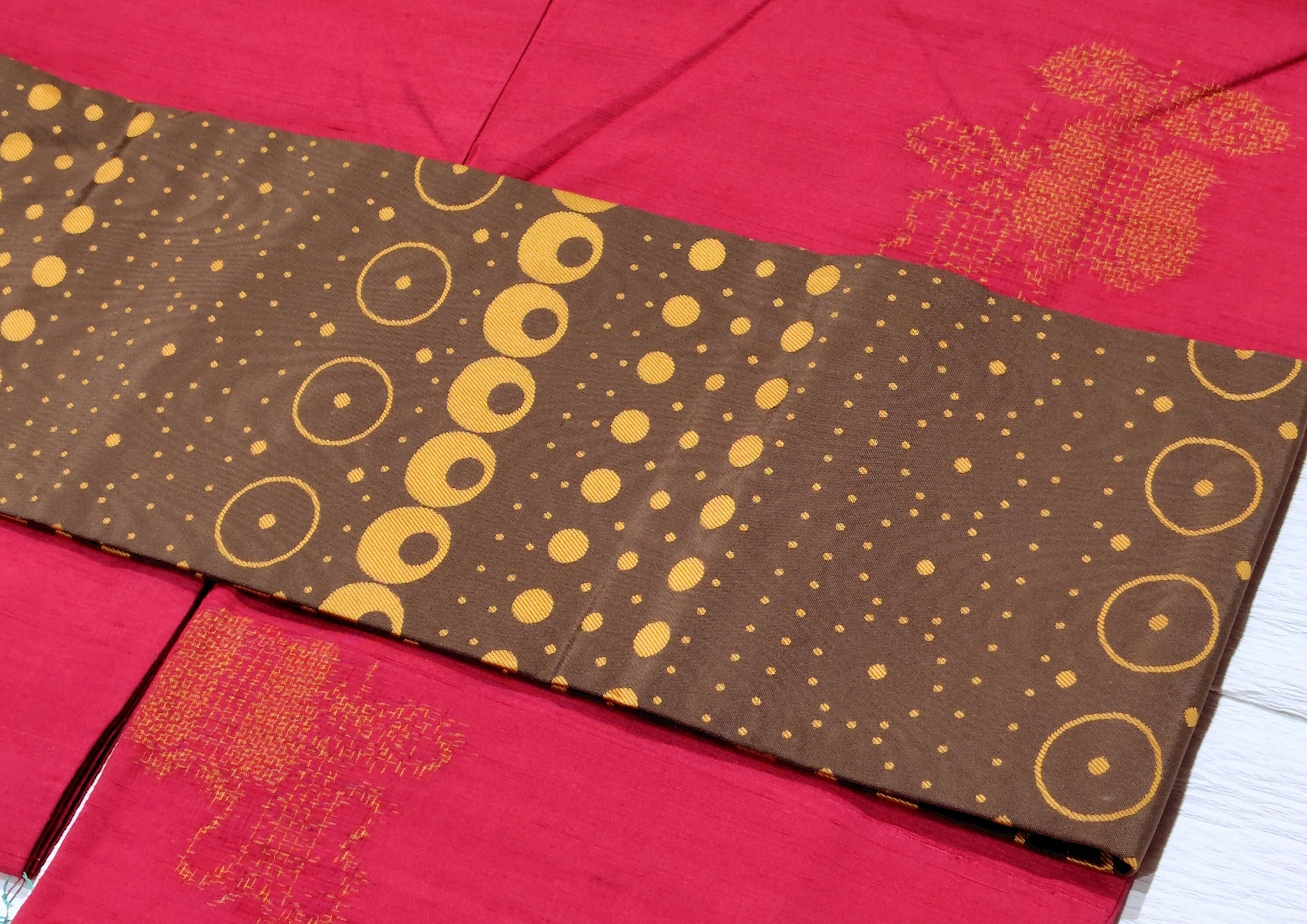 細かいドット部分は離れると無地に近い印象になるため、細かい柄のお着物とも相性抜群◎