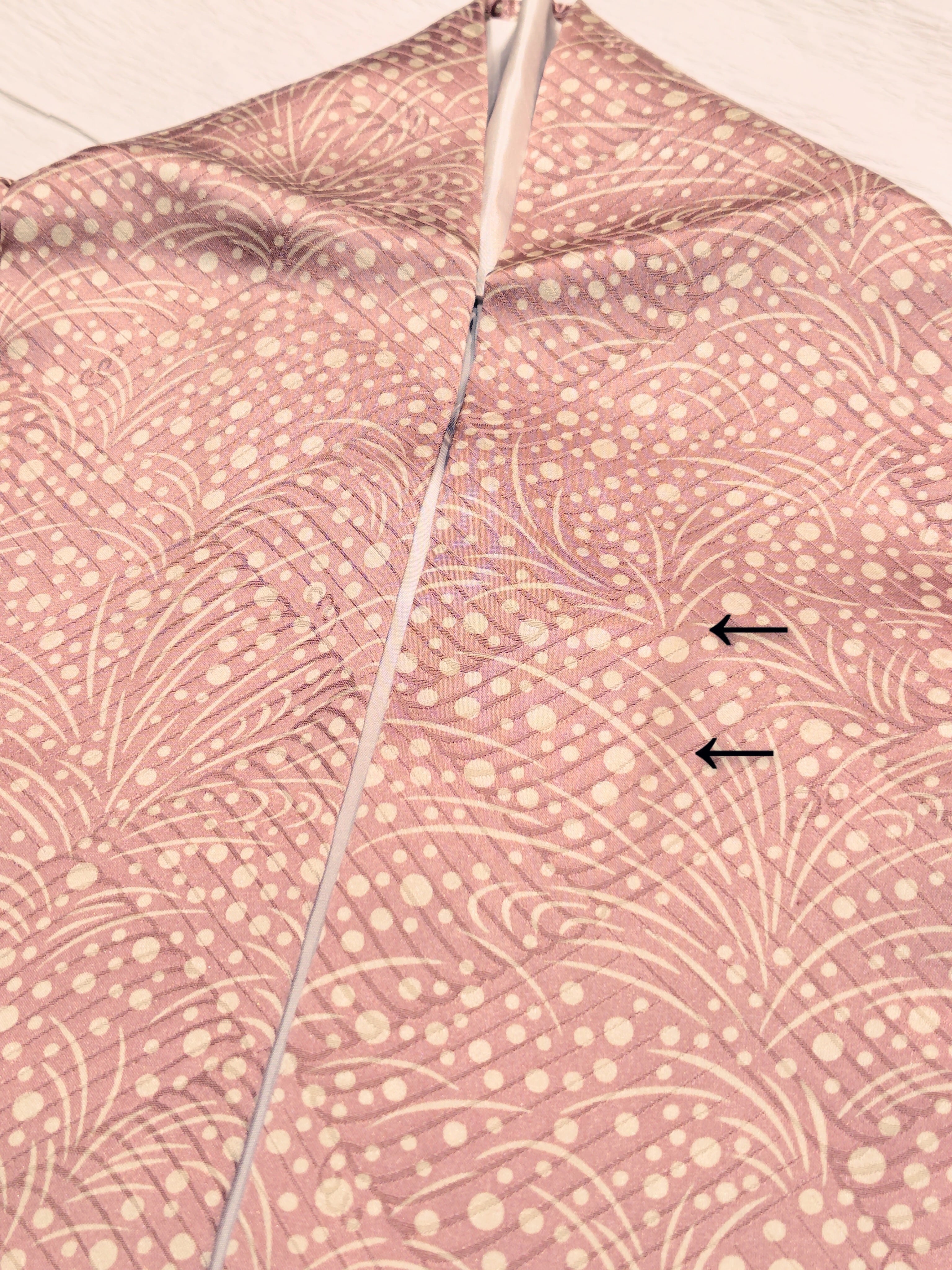 (衿くすみ、左袖に小さなシミがあります。どちらもお召し頂ければ、気にならないと思います。)