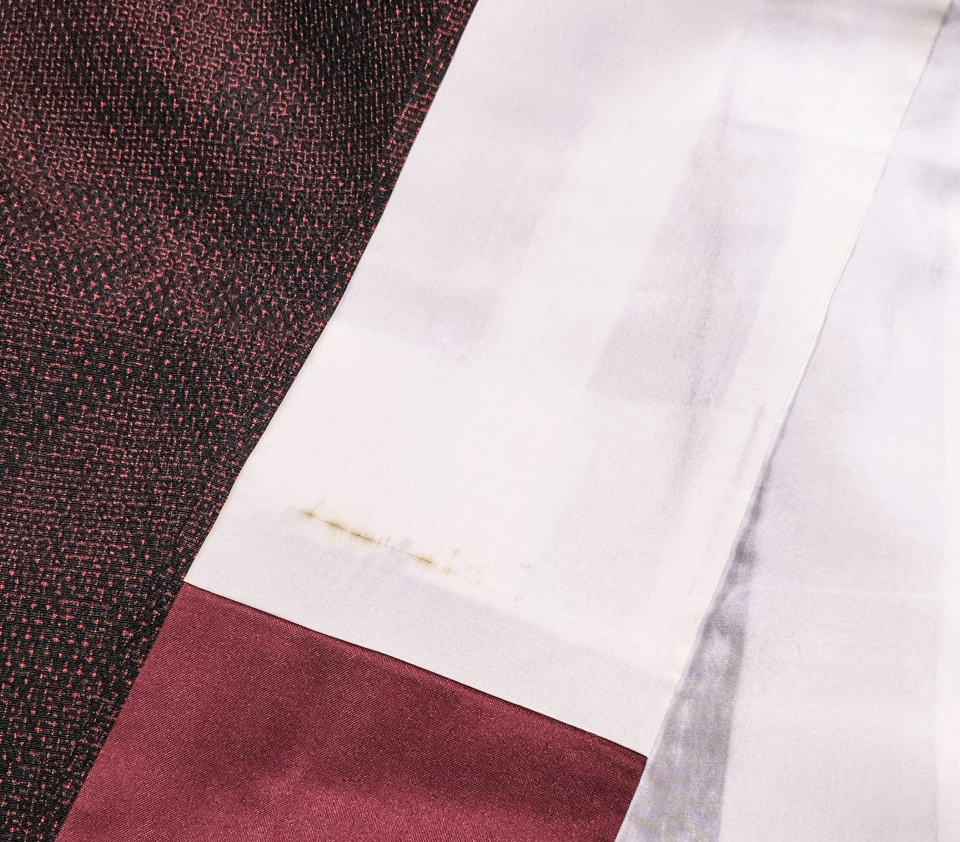 ハッ掛けもボルドーワインのような深い臙脂色、お洒落でシックな印象です。