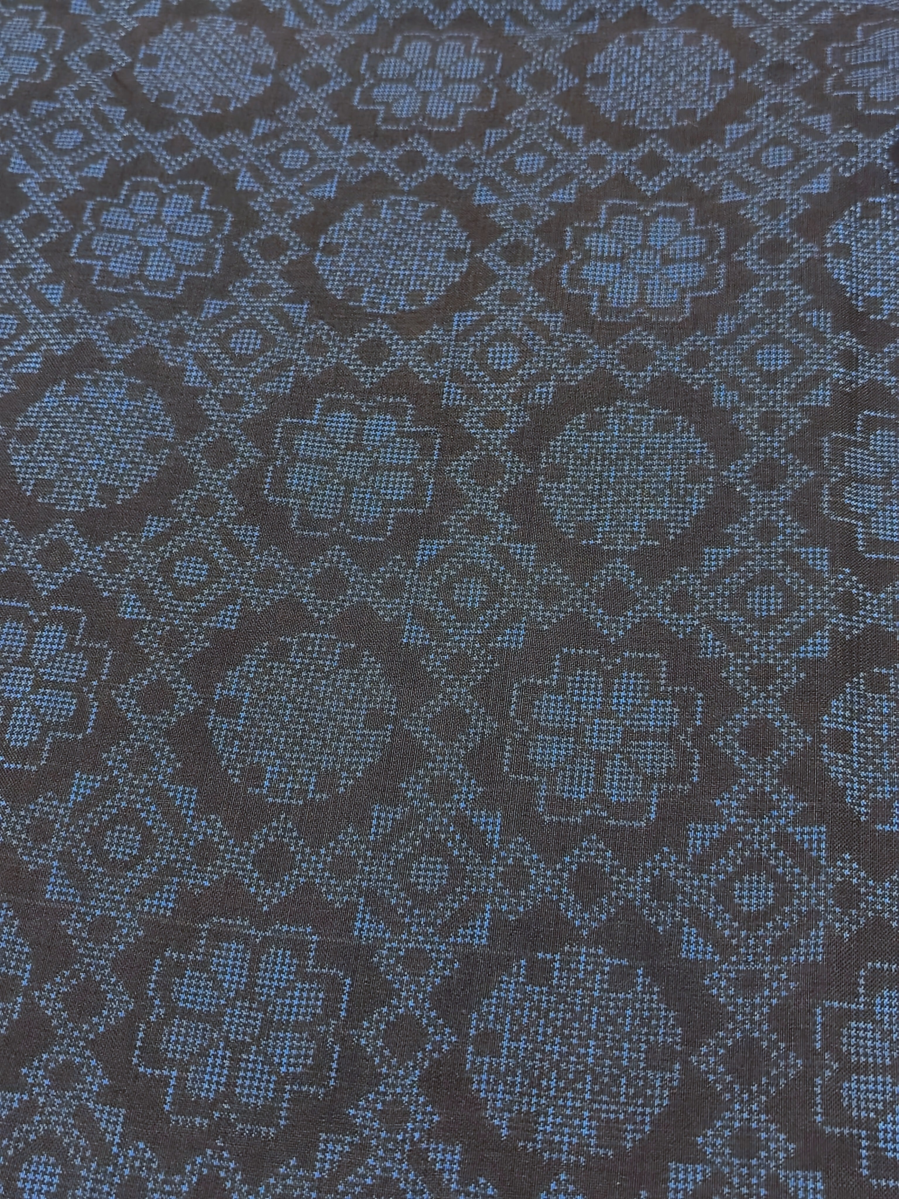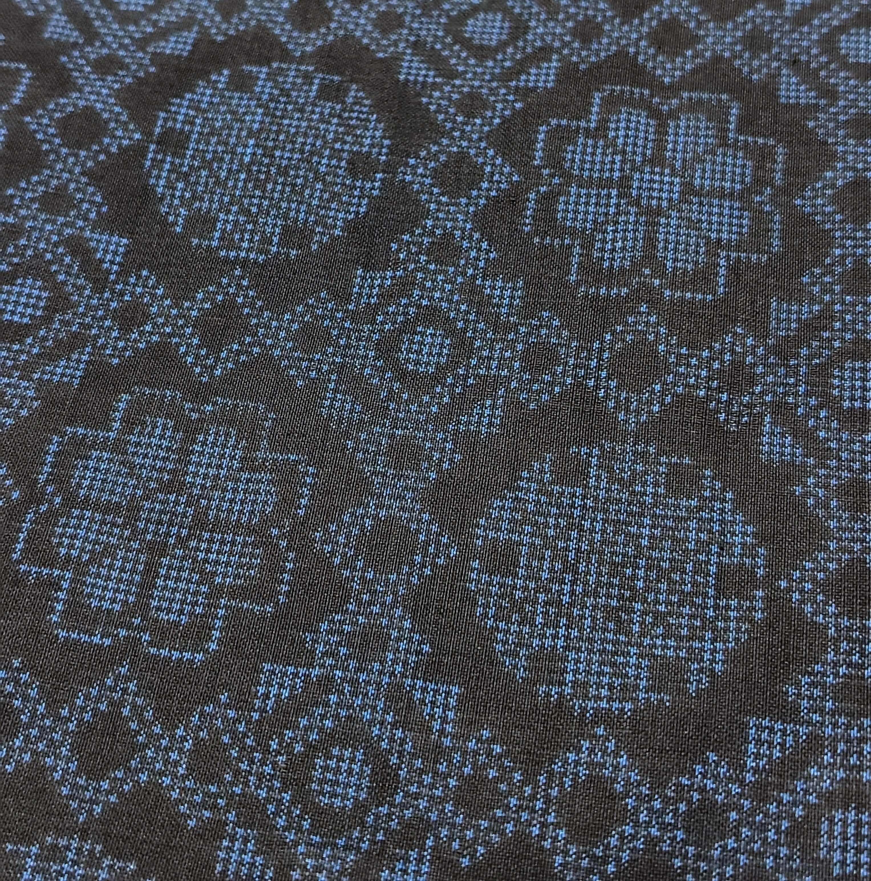 本場大島紬 青色 花と雪輪柄です。