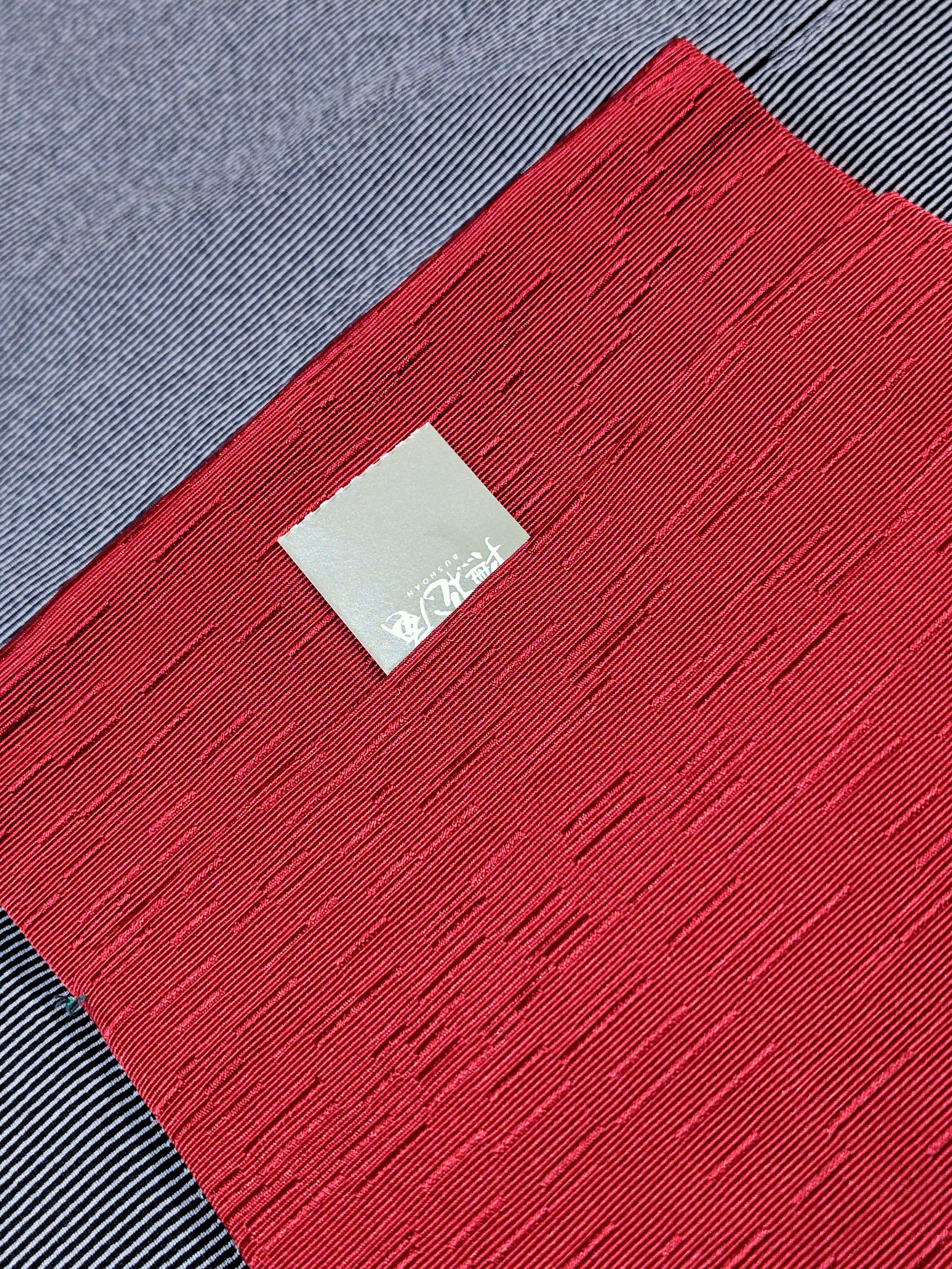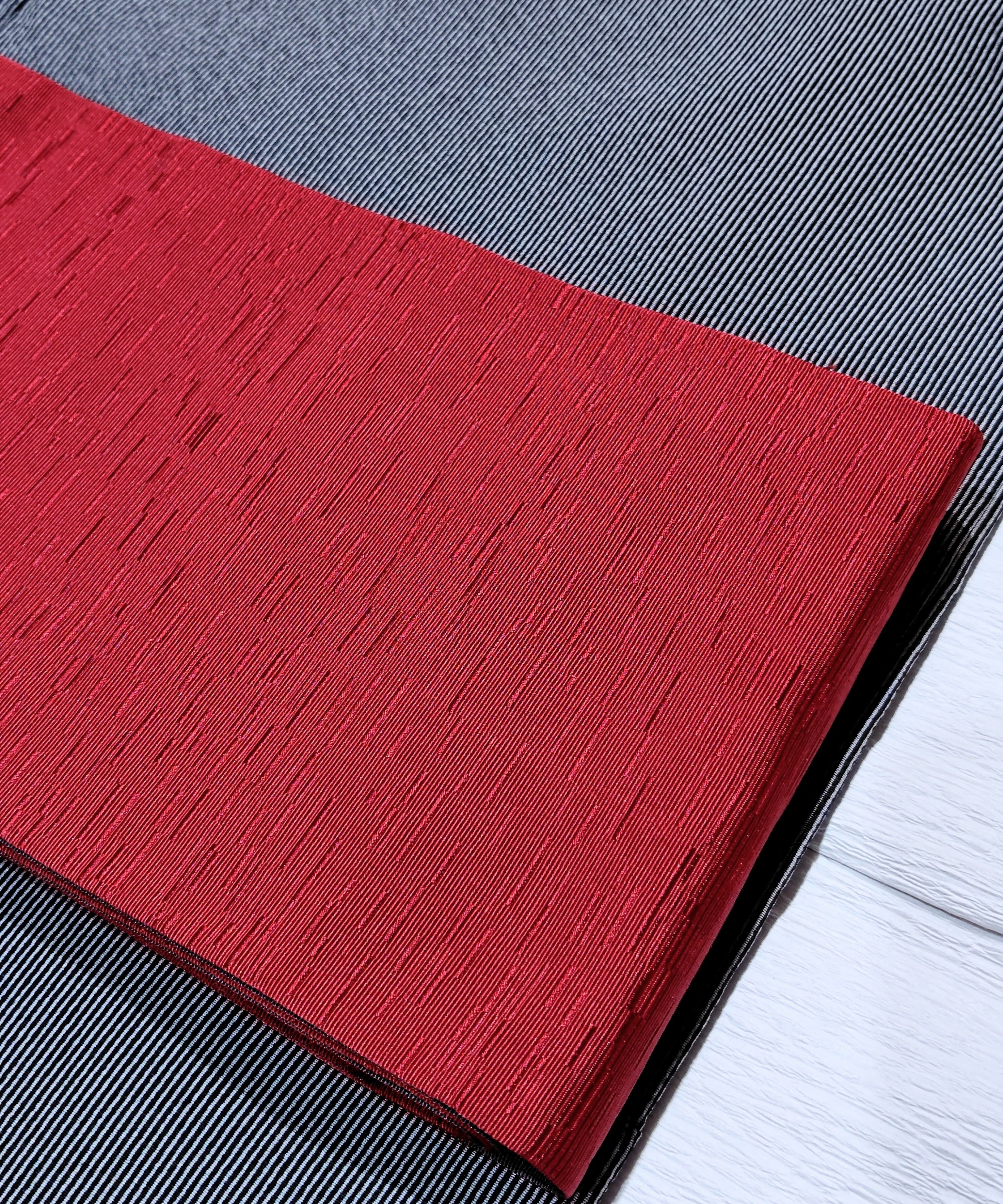撫松庵 シンプルな半幅帯 臙脂✕グレー