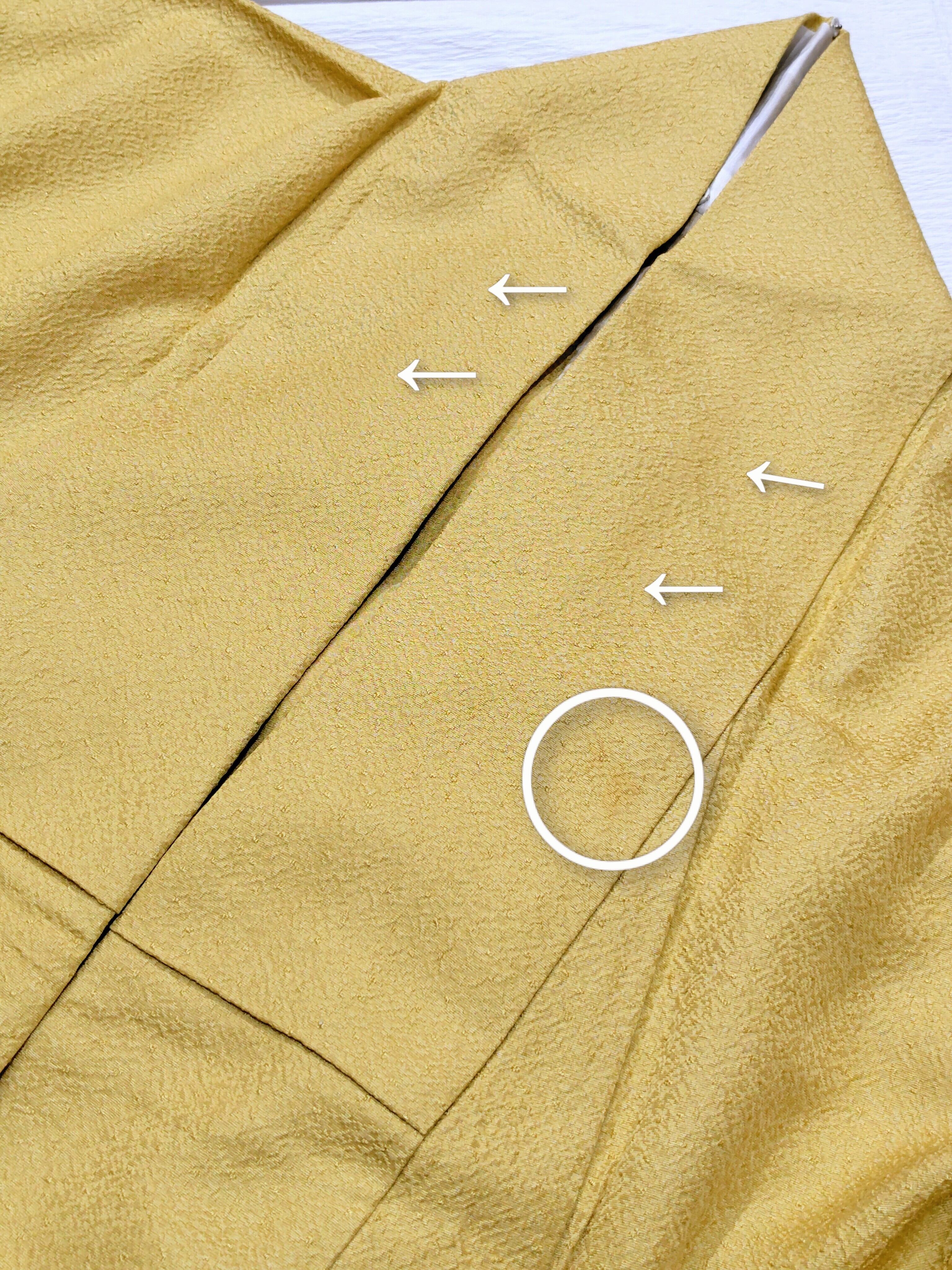 (お好みにもよりますが身長141cm前後~161cm前後の方におはしょりありでお召し頂けます。)