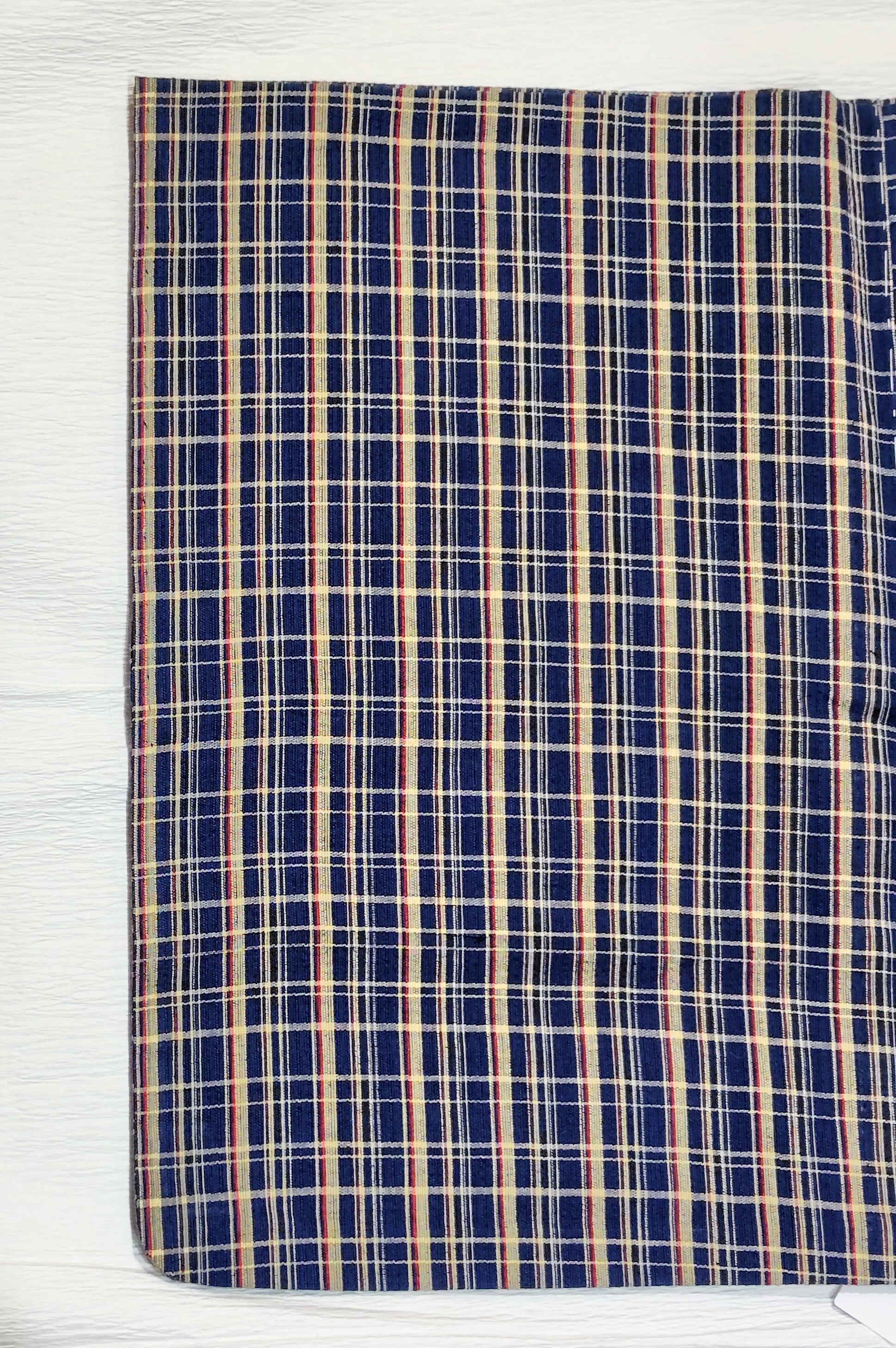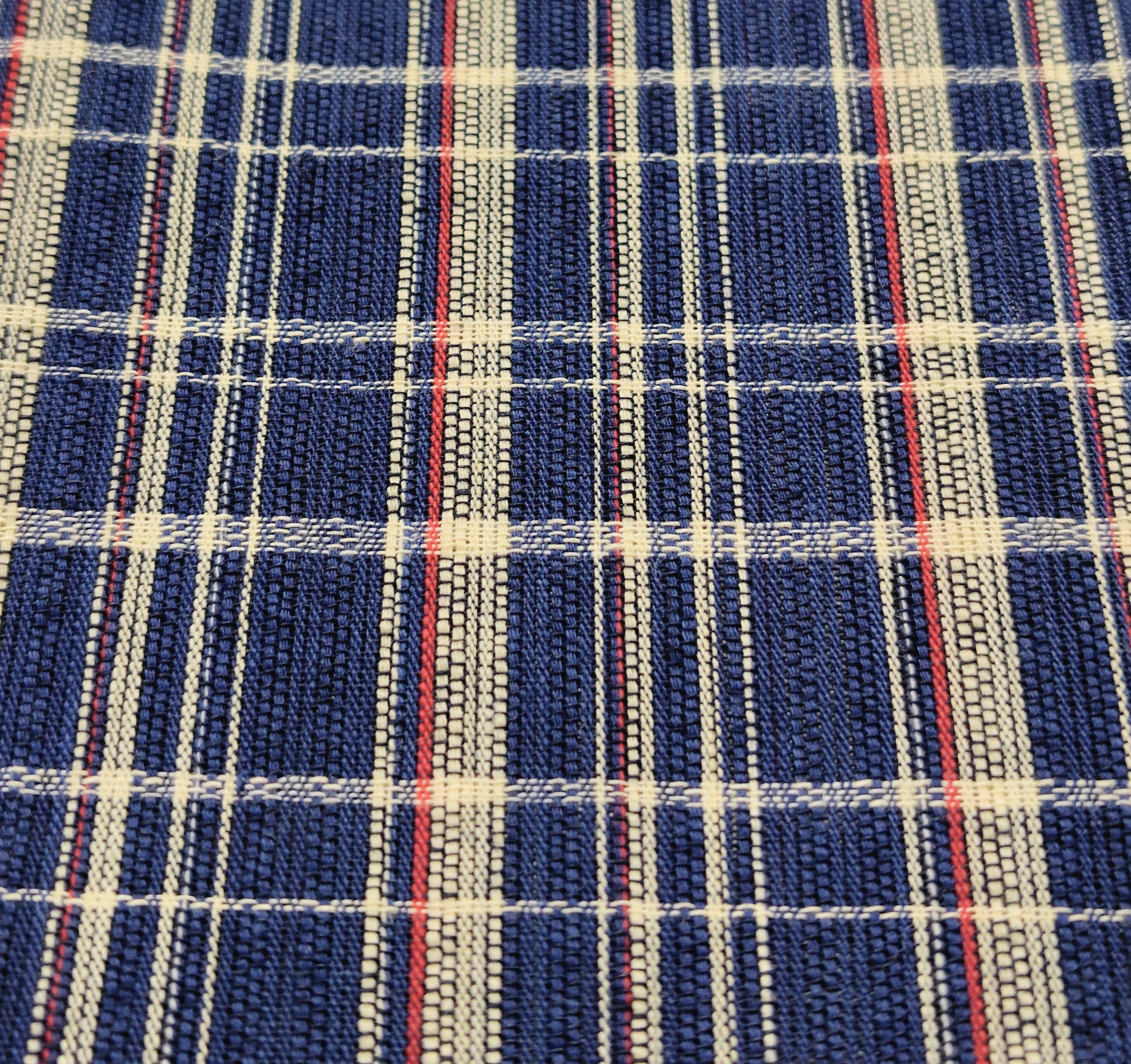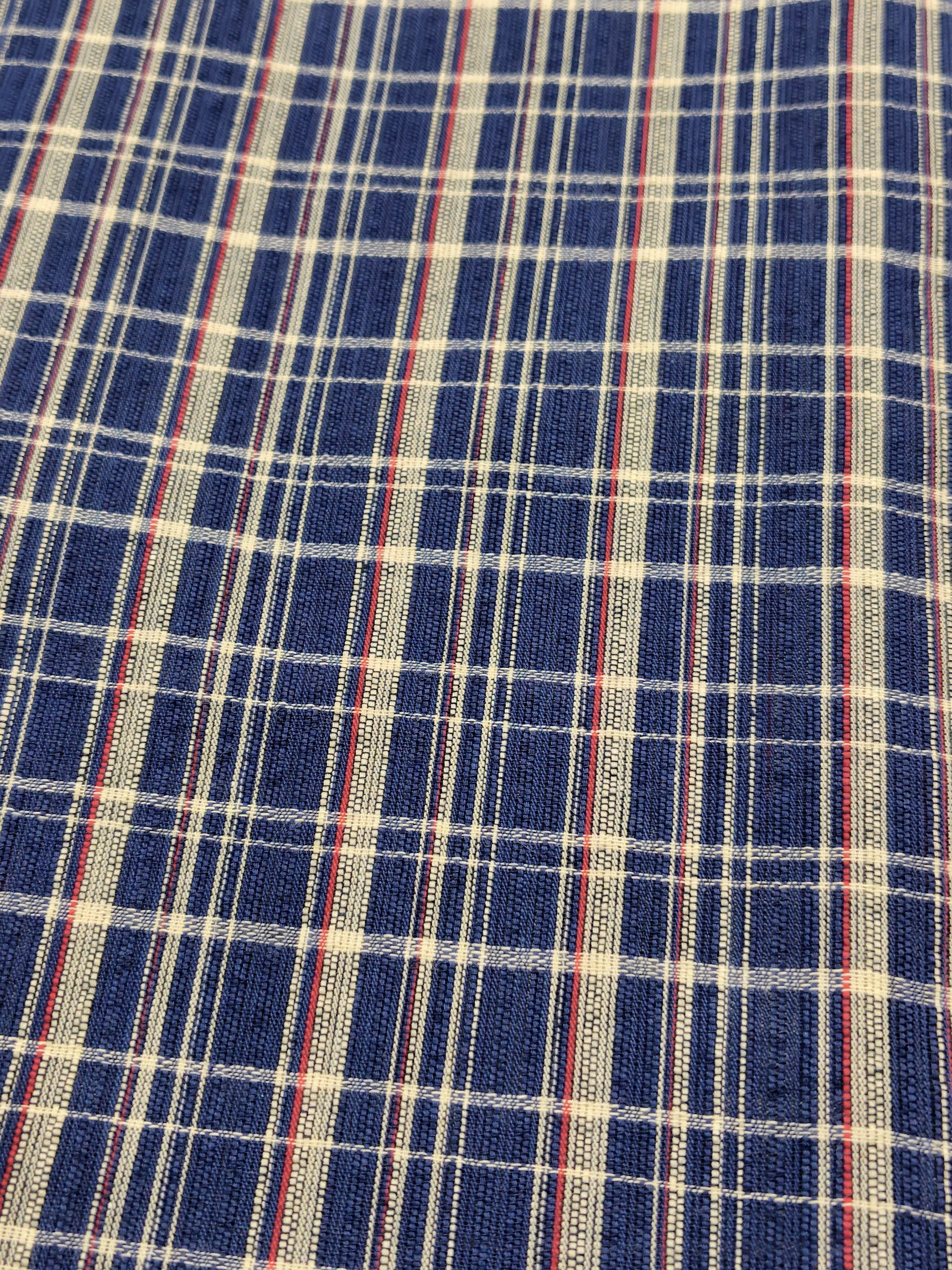 阿波しじら 紺地にチェック柄〜赤色とクリーム色〜