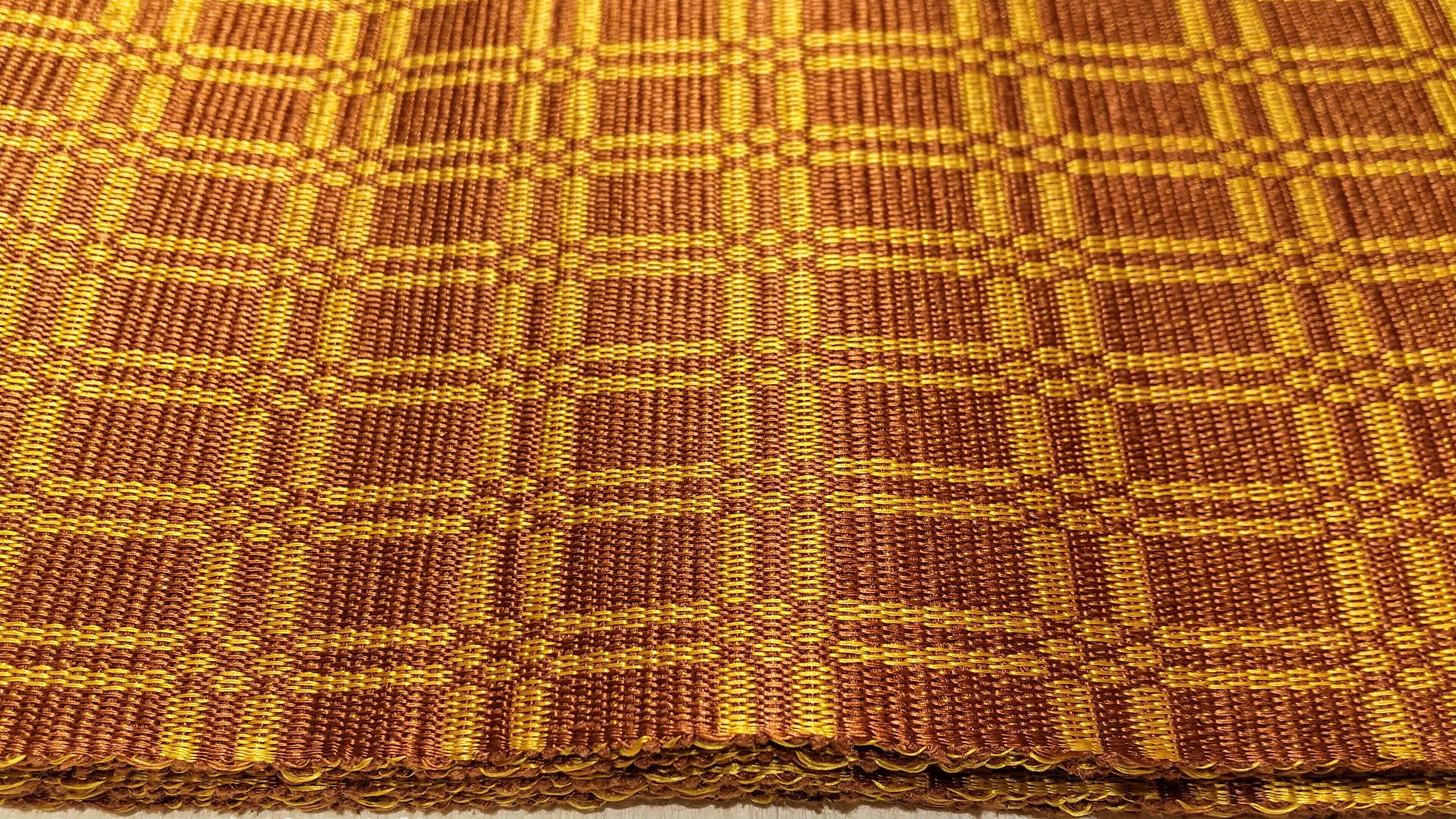 八丈刈安の黄金色がとても綺麗な本場黄八丈の半幅帯です。