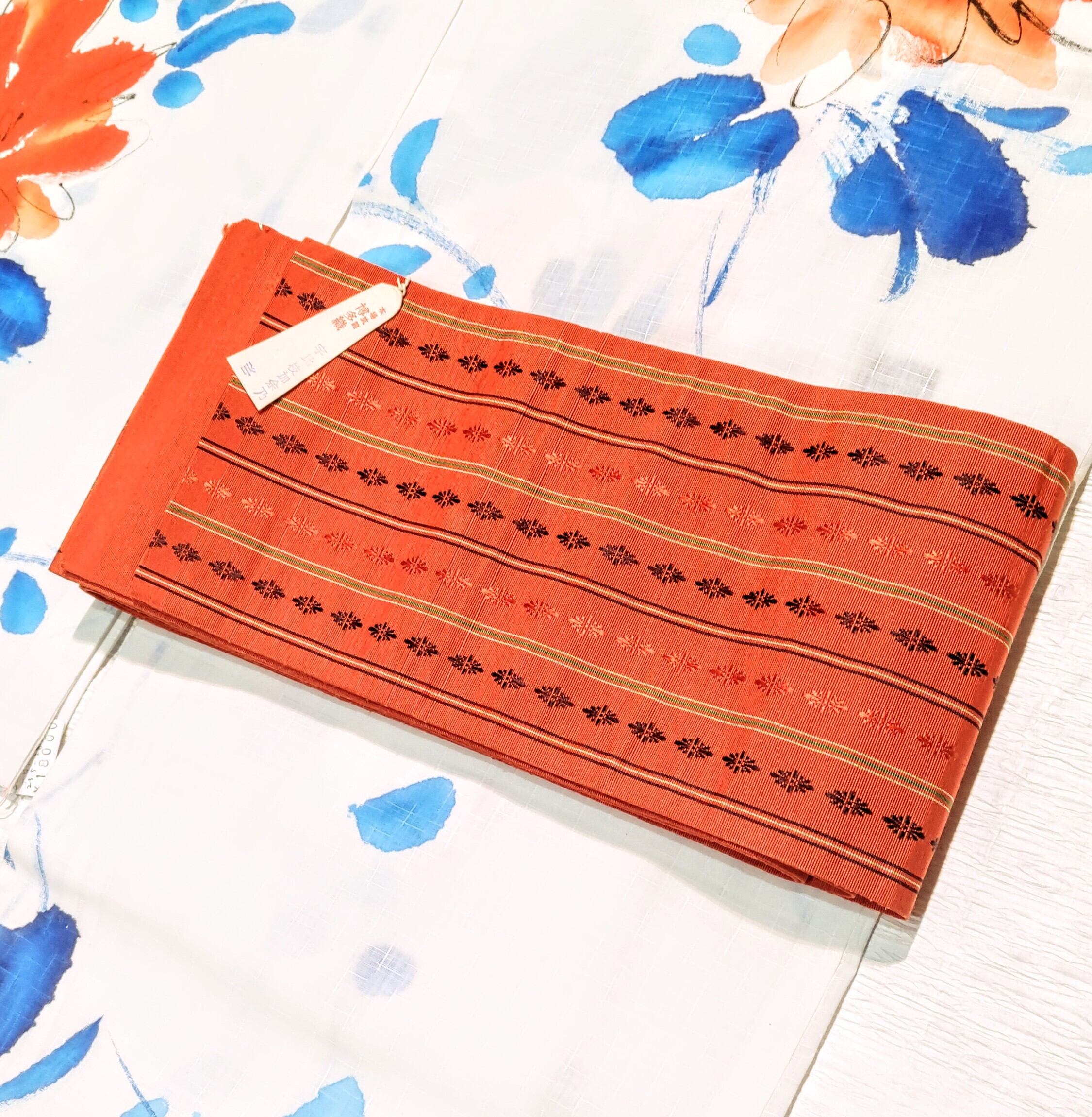 博多織りの献上柄(独鈷柄)の半幅帯で未使用品