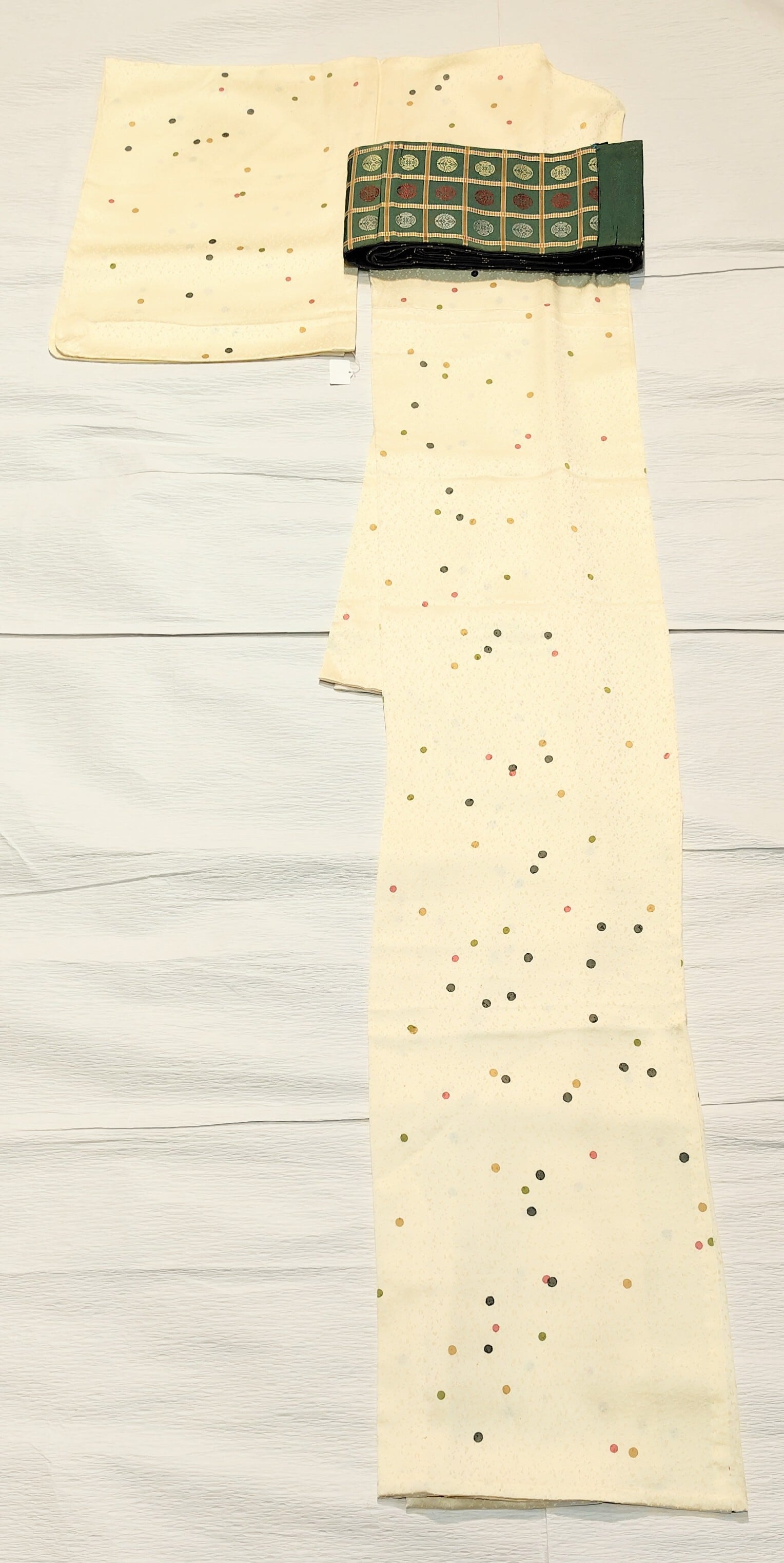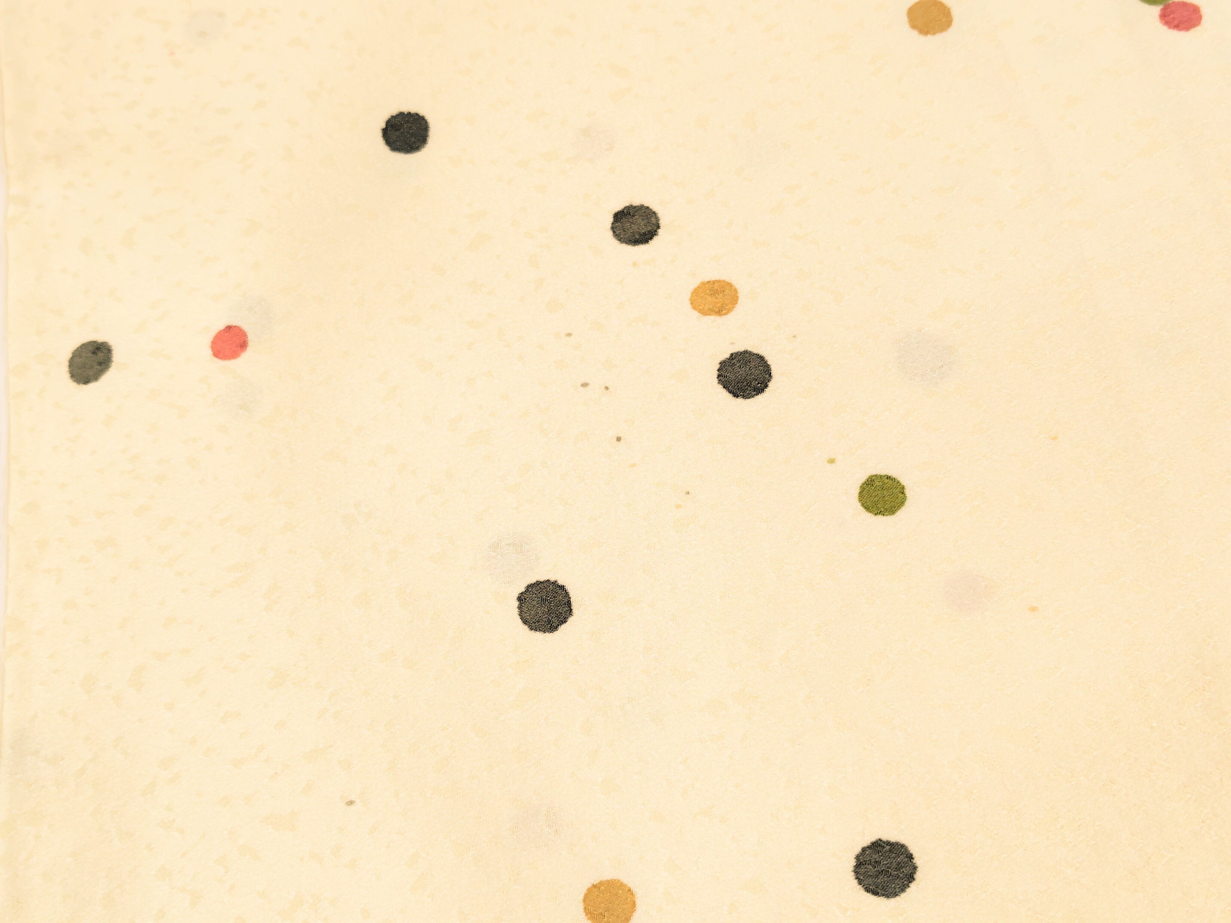 (水玉柄の間に同じお色で細かいドットのような物があります、一部染めムラで滲んで見えますので、染めムラを気にする方にはおすすめしません。お召し頂ければほとんど気にならないと思います。)