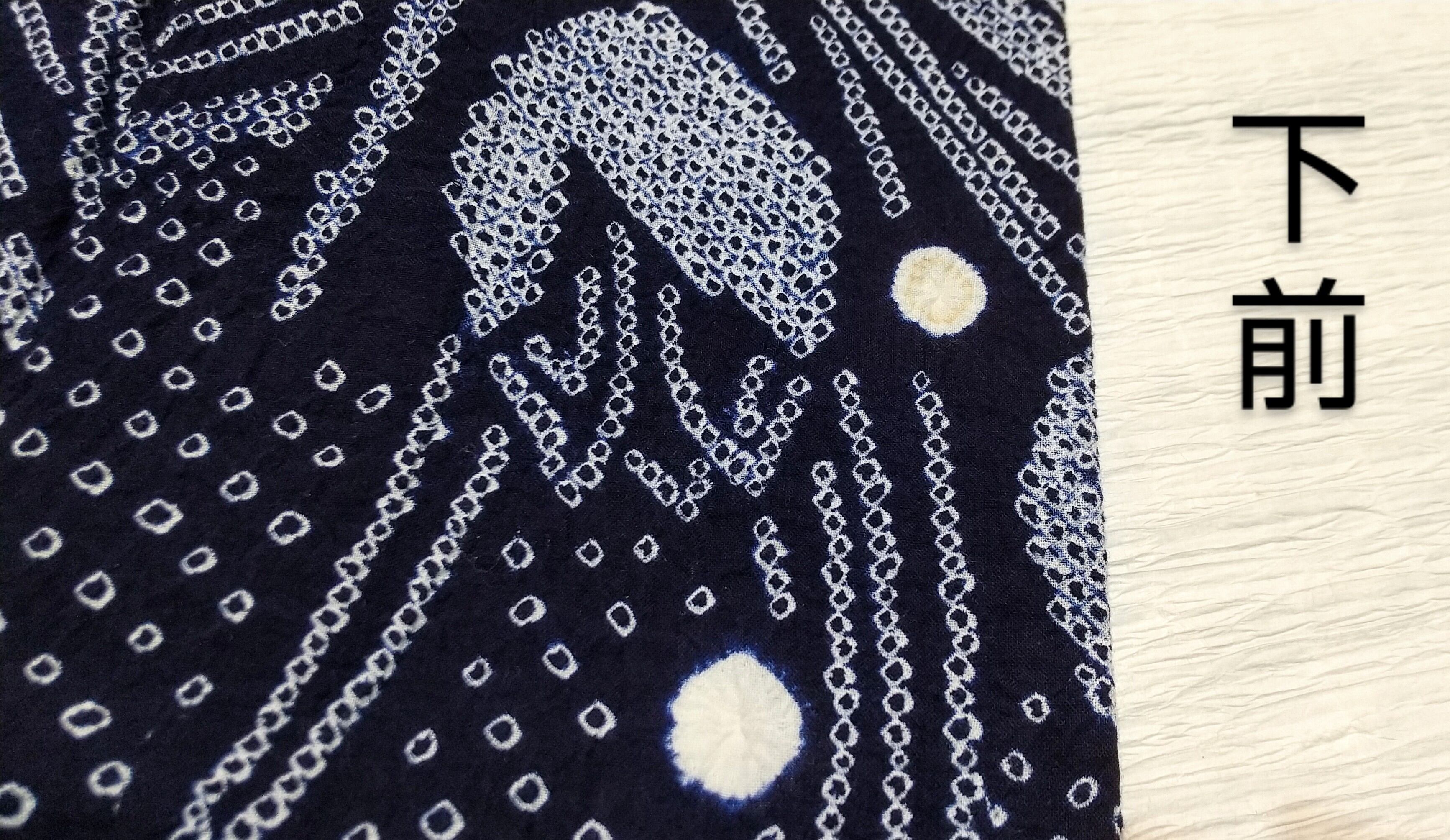 濃紺なのに白の絞りが日差しに透けると透き通るような透明感があり、はっと目を惹きます。