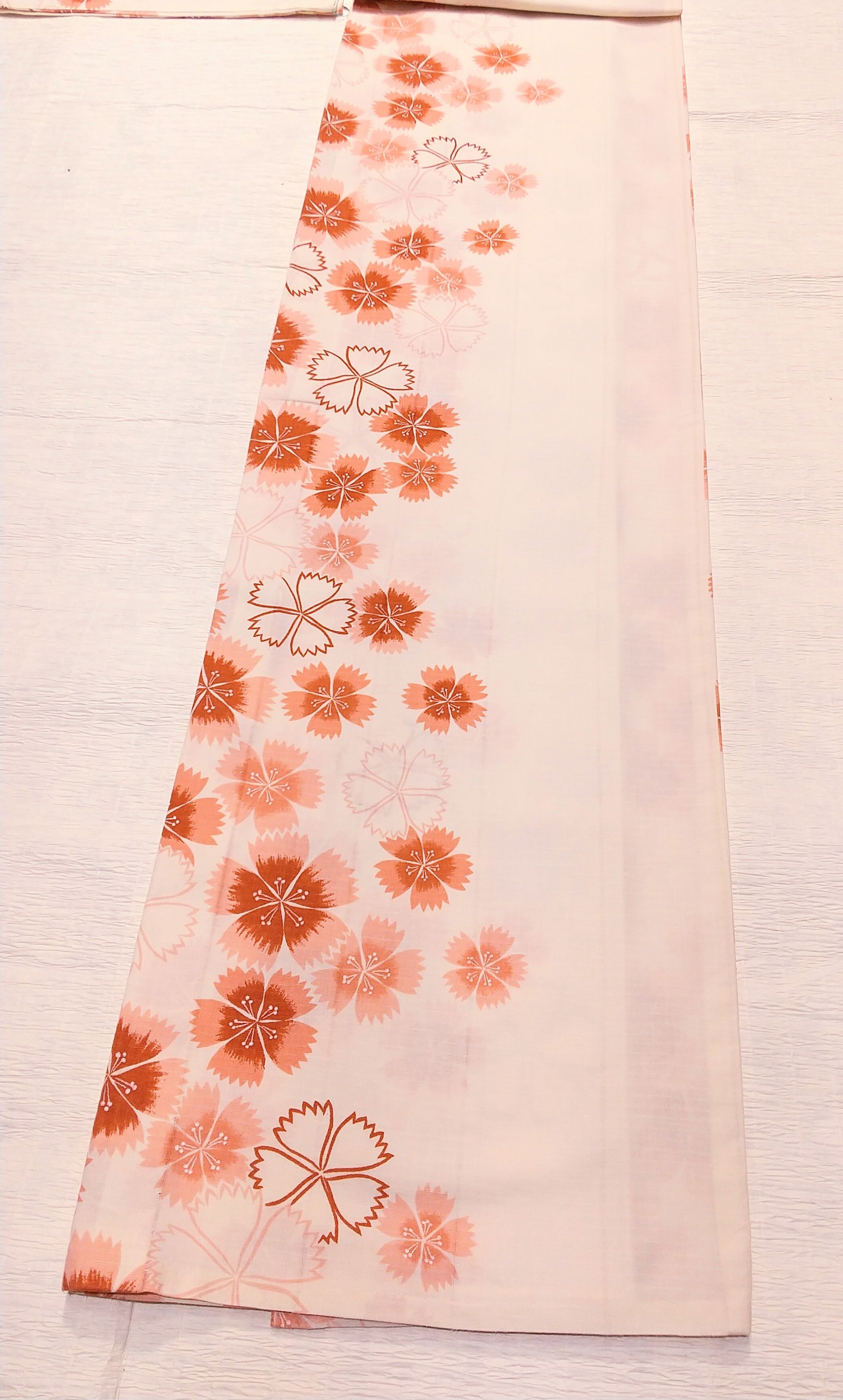 夢工房 綿麻浴衣 生成り地に撫子柄