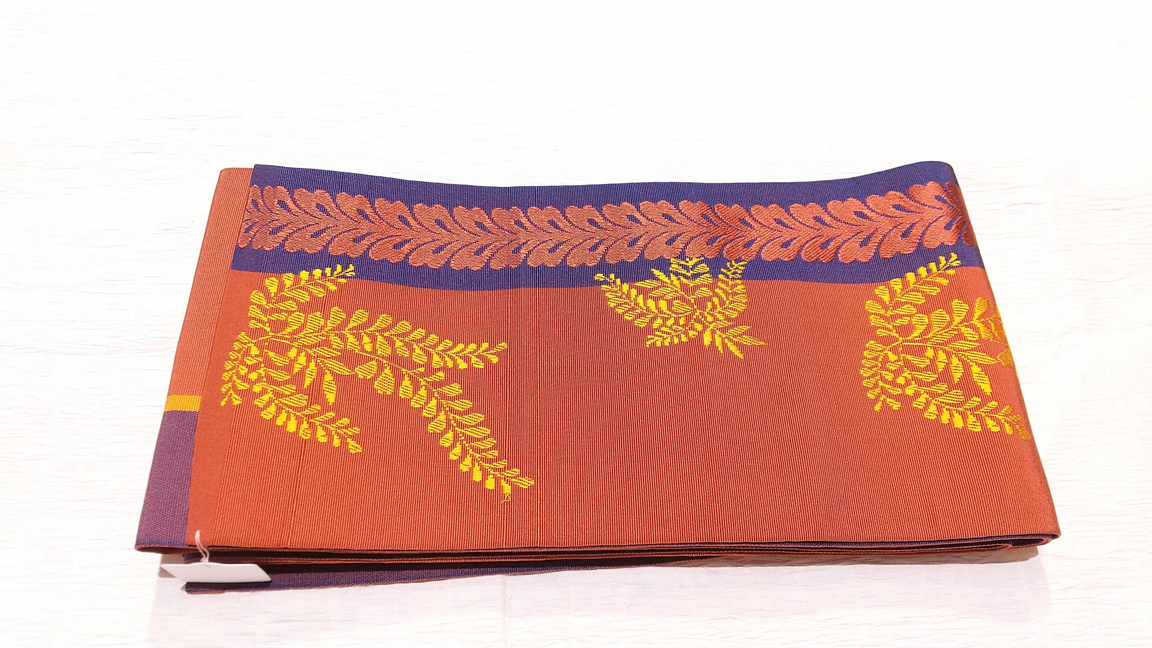 オレンジ茶色と紫色のリバーシブル博多織りの半幅帯