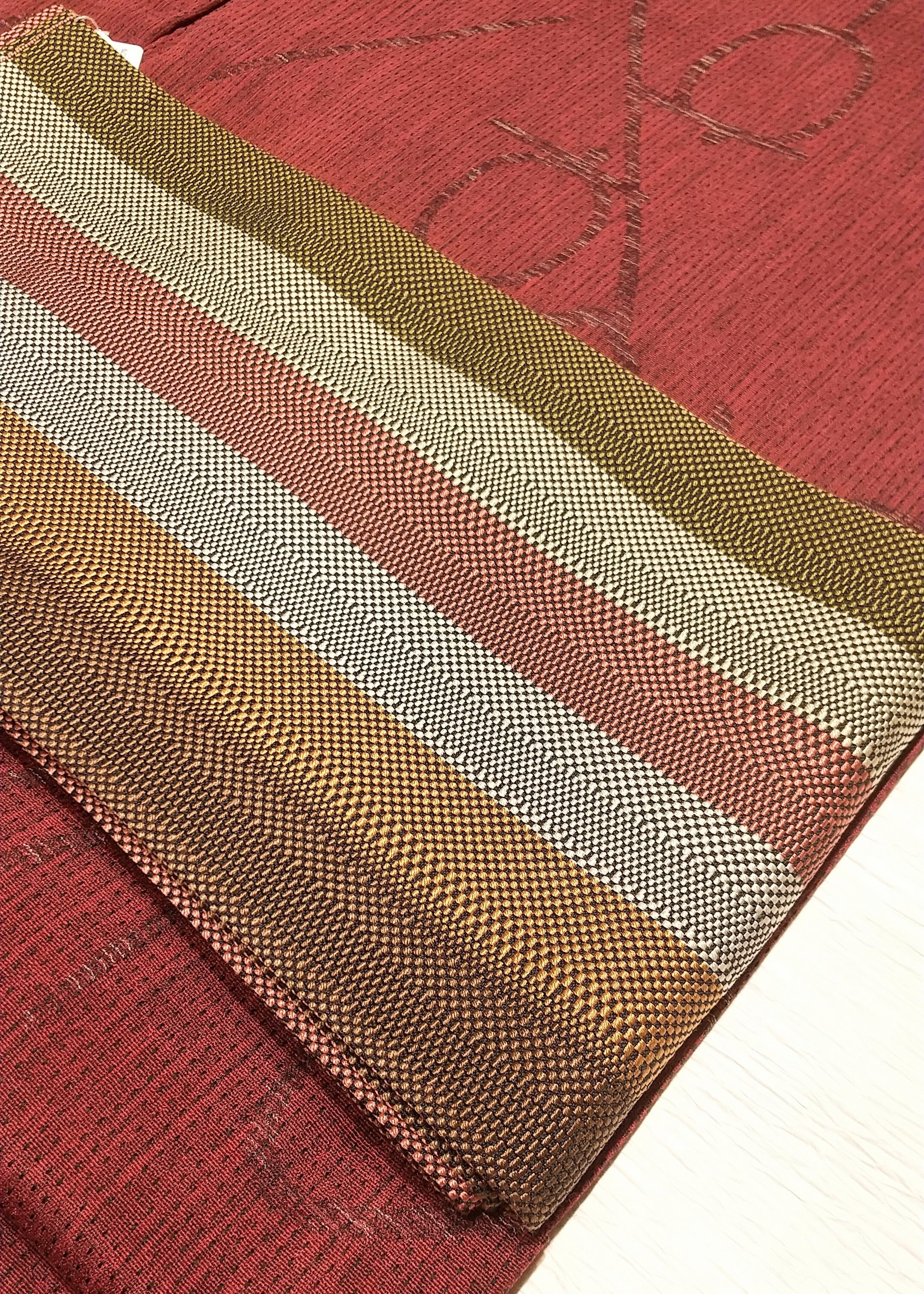 博多織りの半幅帯 ボーダーと単色のリバーシブル