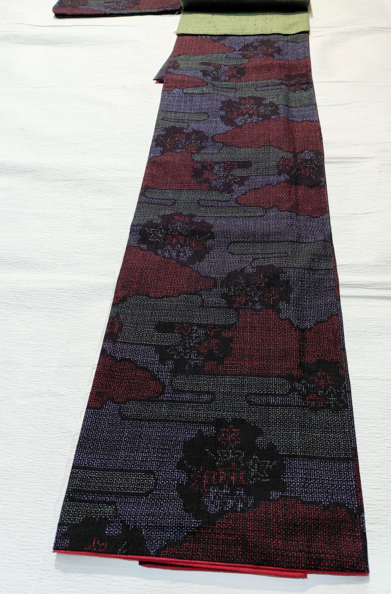 本場結城紬 霞と雲取りに雪輪~寸法大きめ~