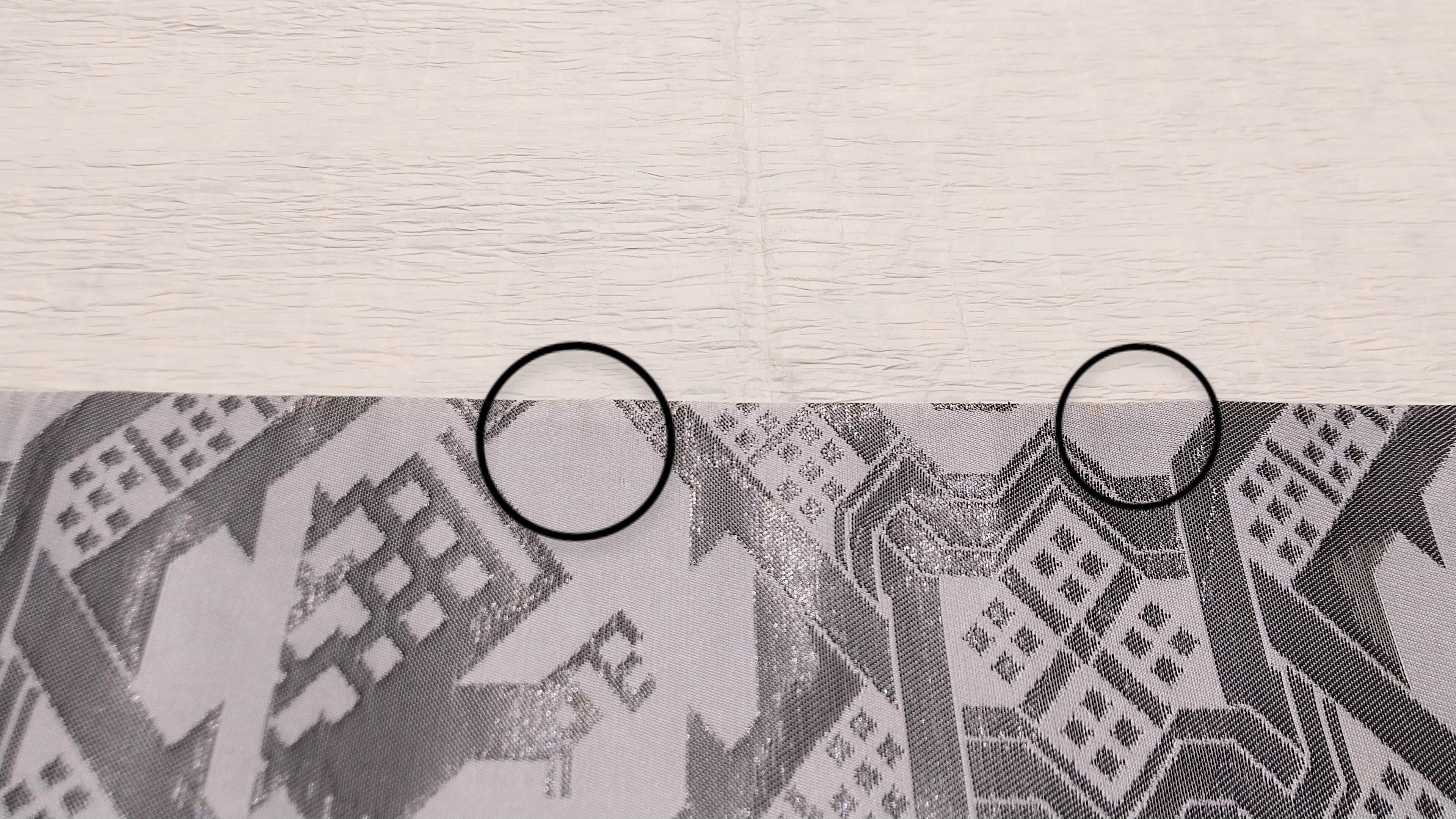 こちらは薄いグレー地に少し濃いグレー色で有栖川文様が織り出されています。