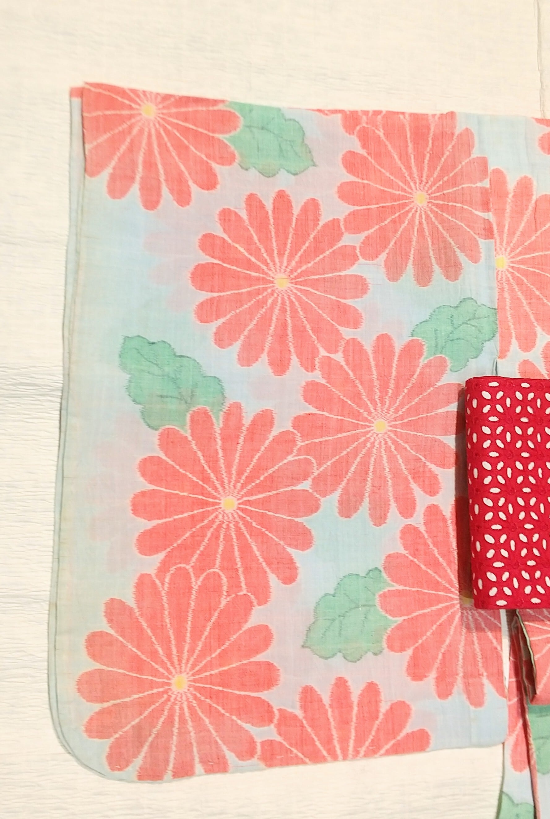 当店でお水で洗い→糊つけ→寝押し→仕上げに部分的にアイロンで仕上げてありますので、さっぱりとした状態です。