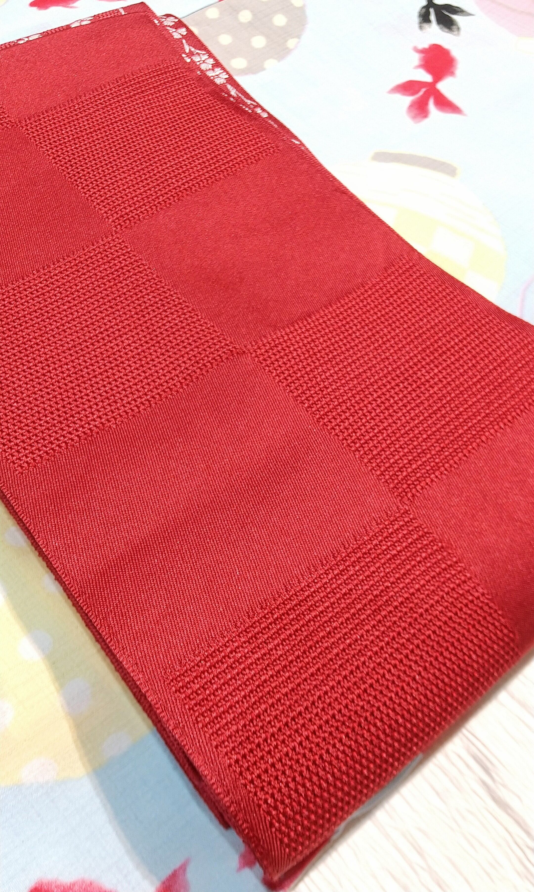 撫松庵さんのポリの半幅帯は質がよく結びやすく形も崩れにくいのでおすすめです。