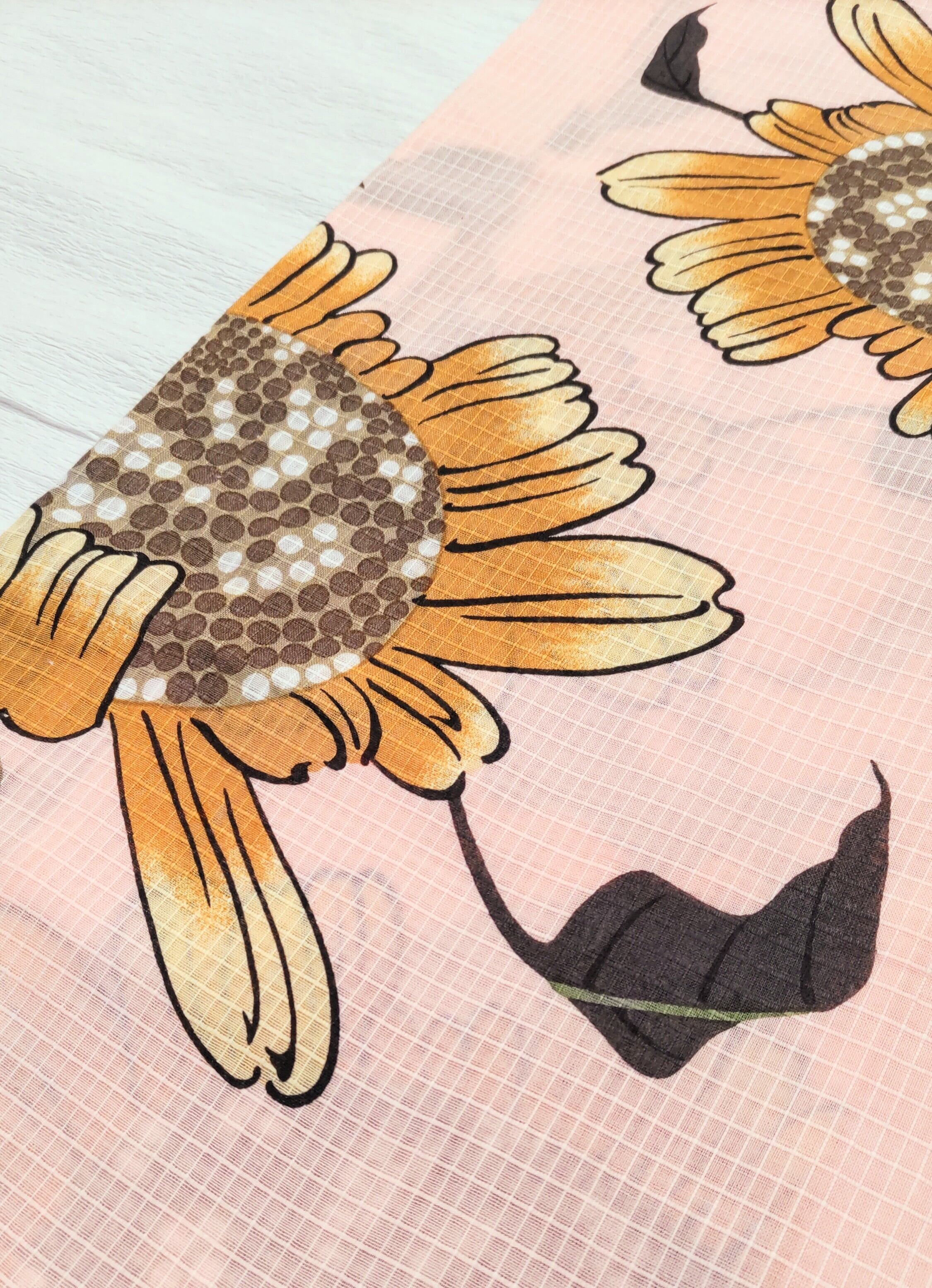 向日葵が写真ではかなり強めの印象ですが、実物はもっと優しく渋さのある日本画の美しさを感じる色になります。