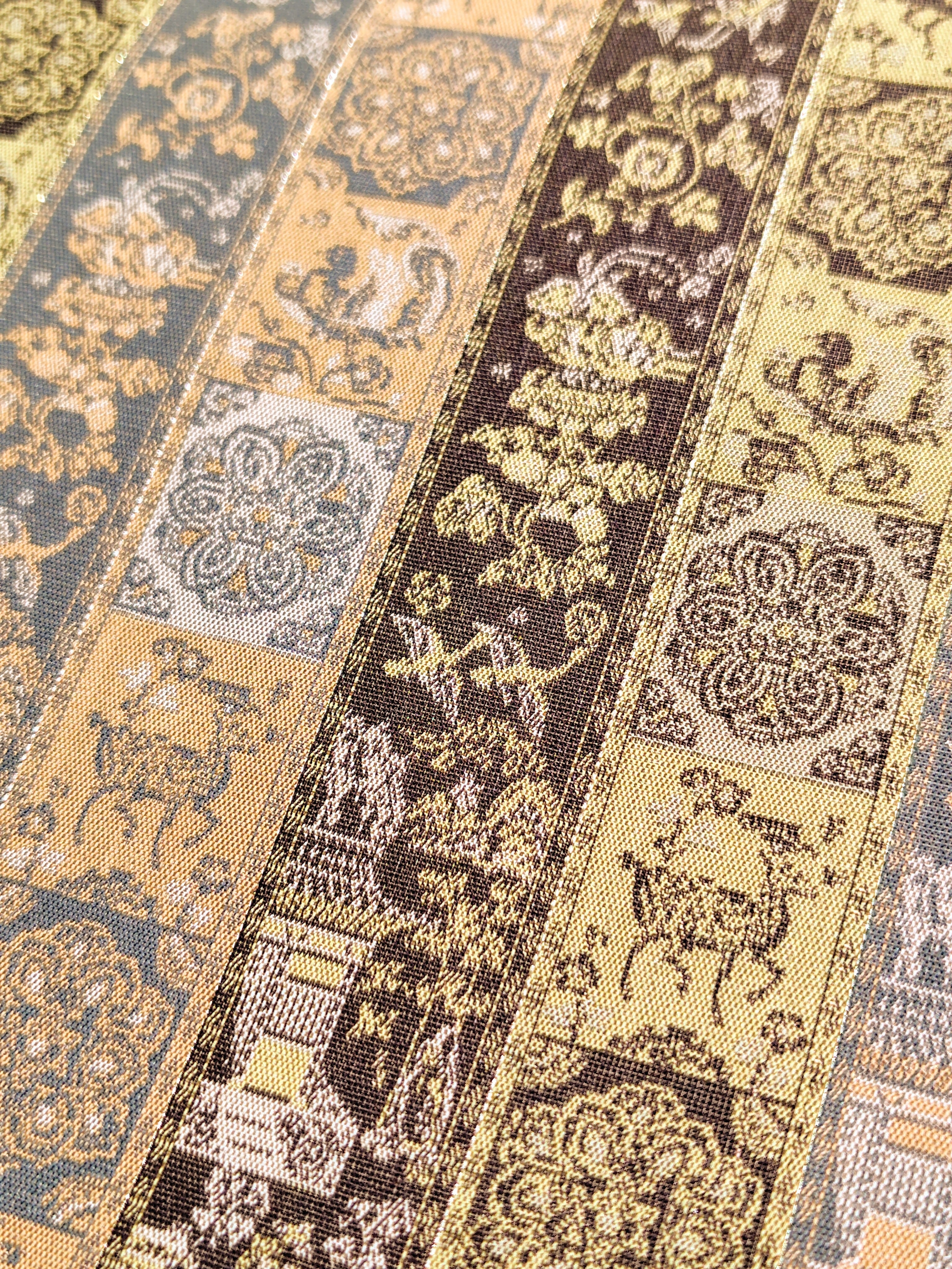 とても滑らかな肌触りと美しい光沢感のある錦で仕立てられた龍村美術織物さんの定番帯です。