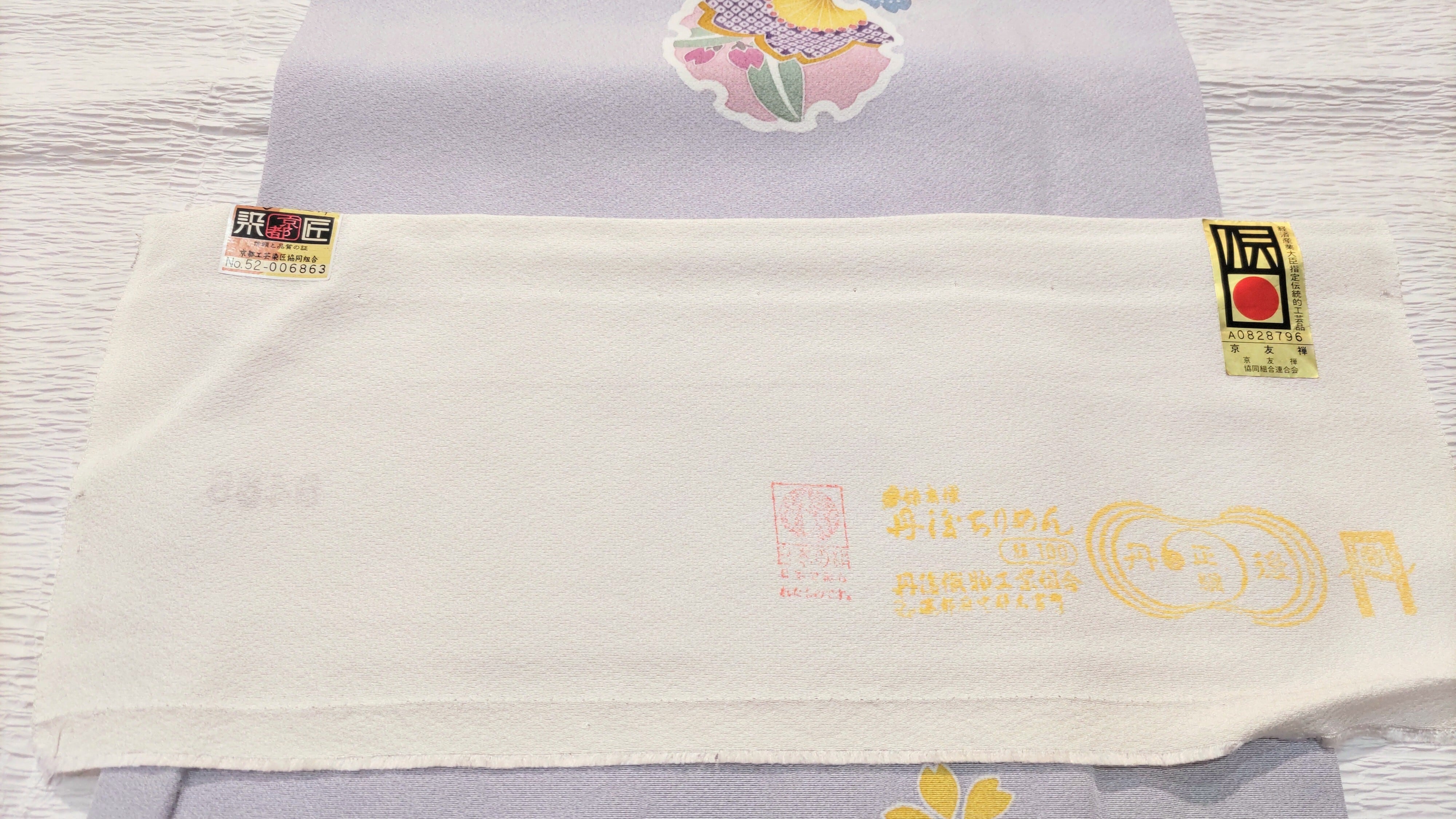 こちらは京都手描友禅の京都染匠のラベルと伝統工芸品の京友禅のラベル付きです。