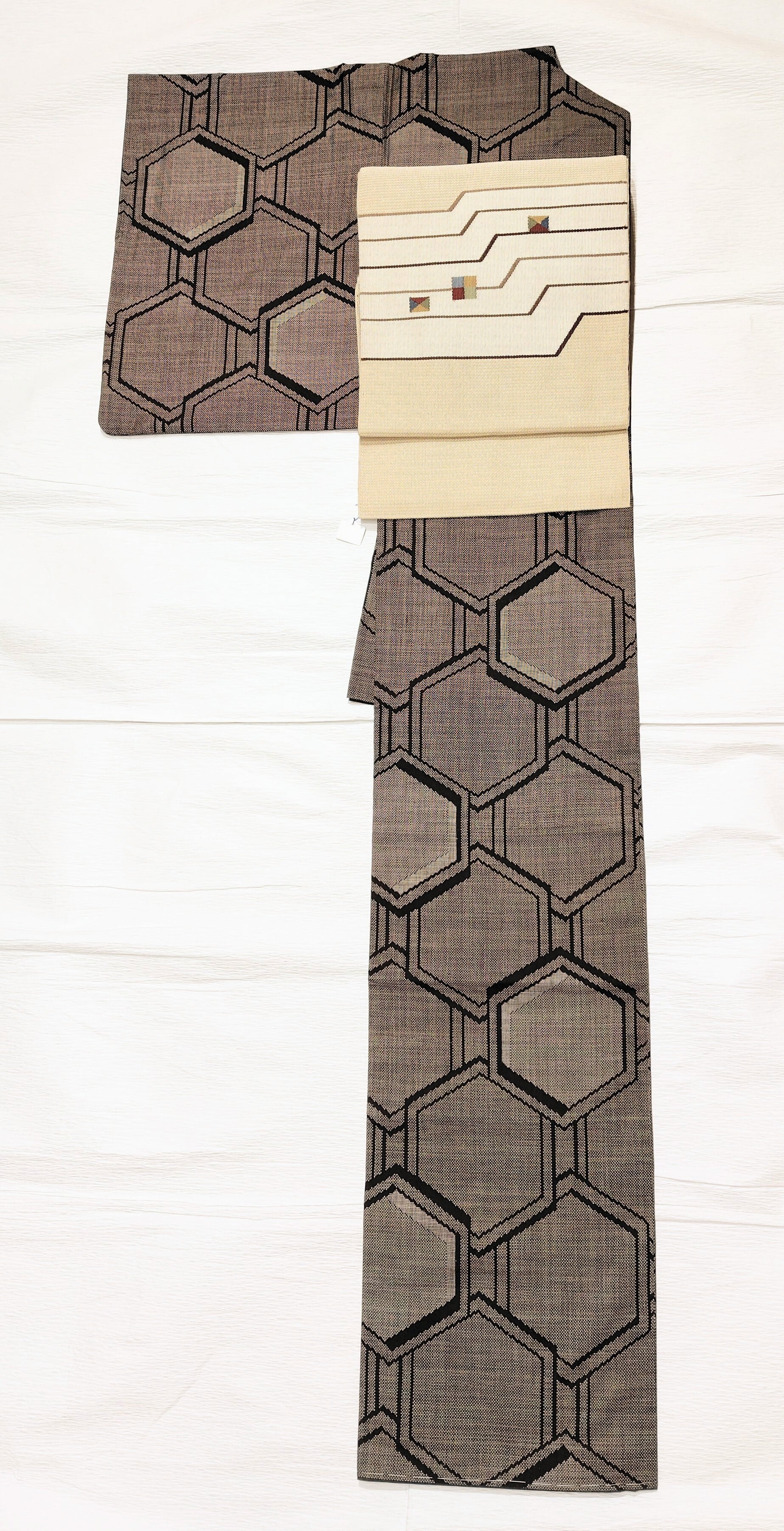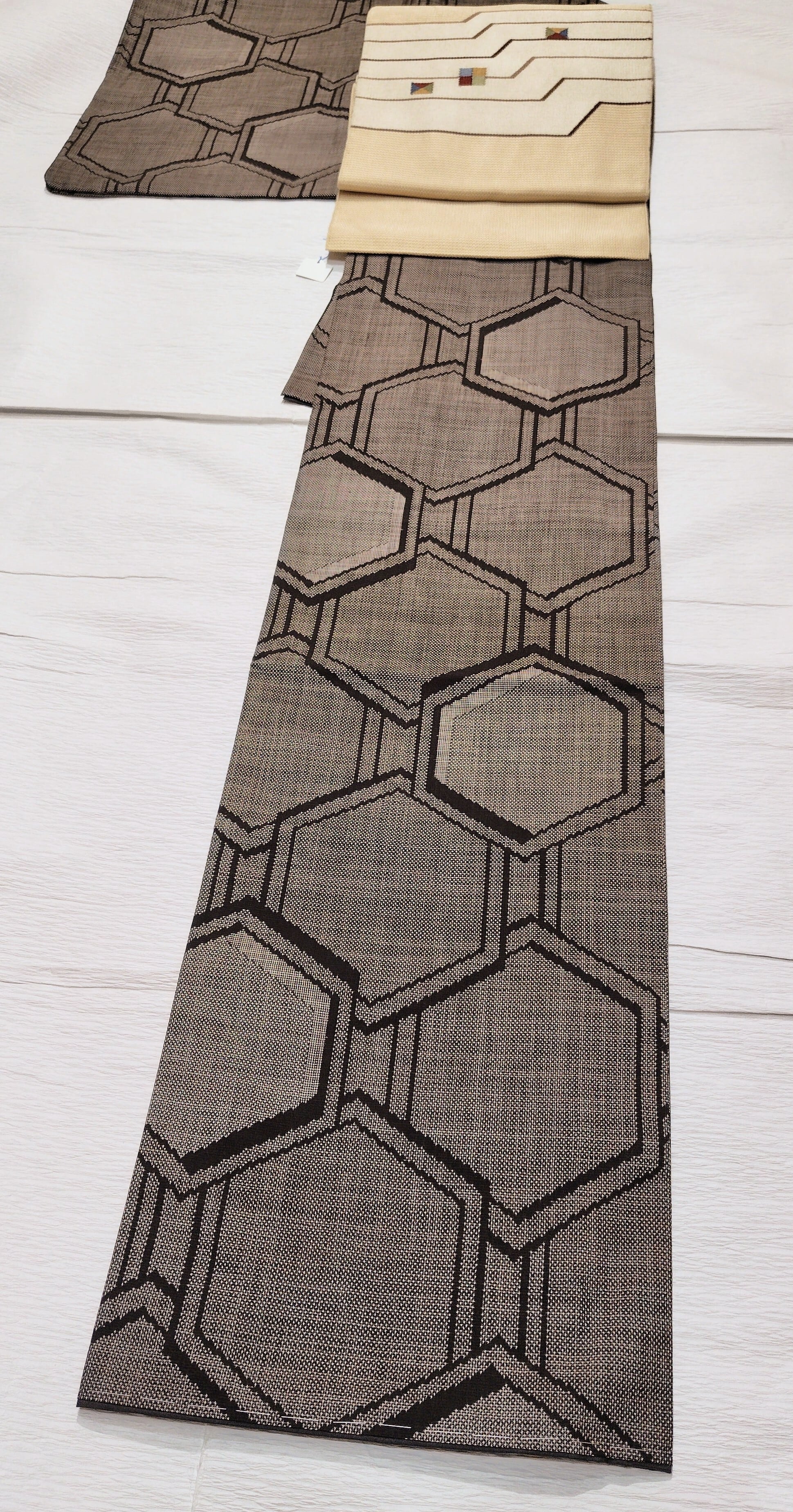 本場泥大島紬 大きな亀甲柄です。