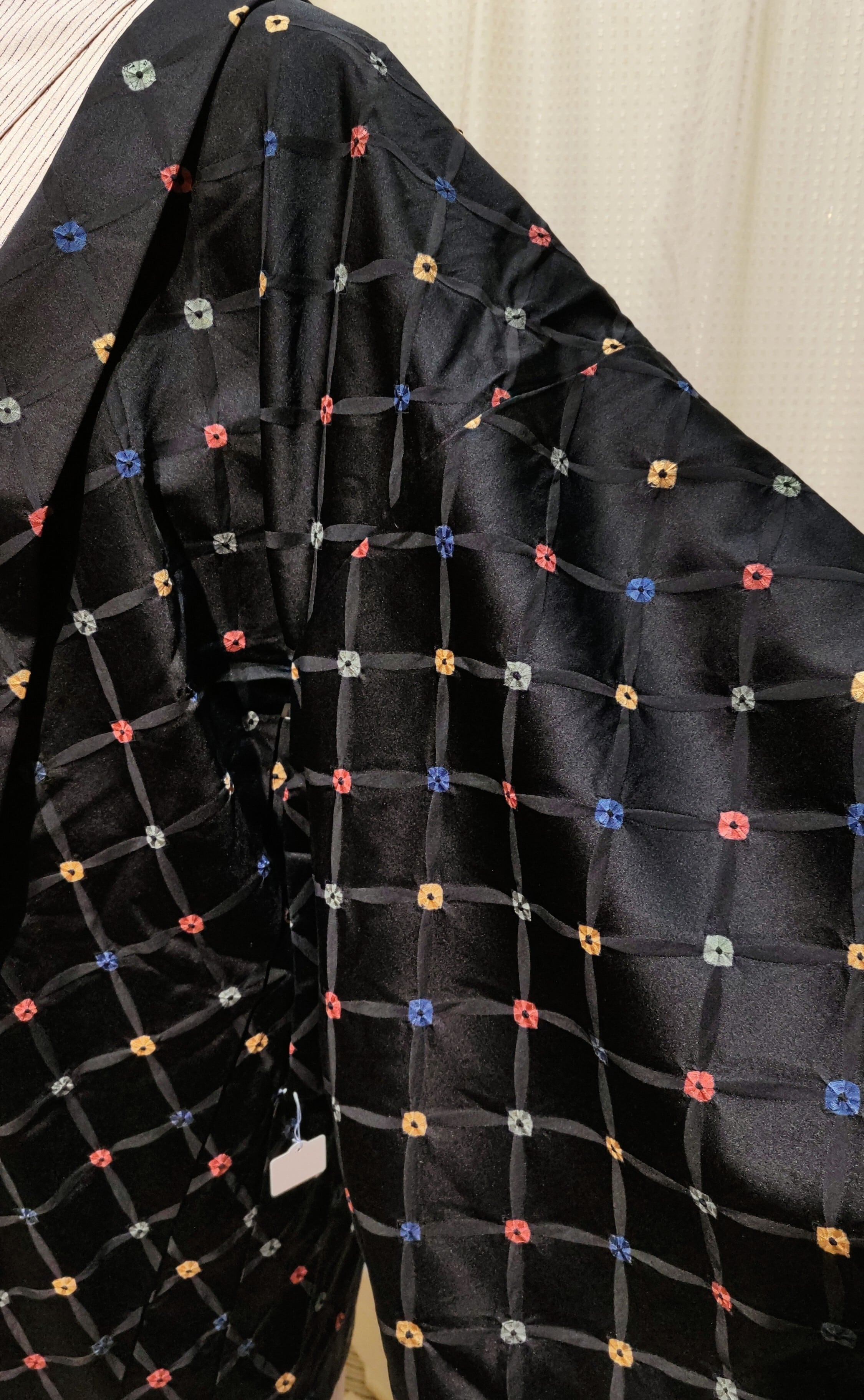 黒地に絞りの羽織り〜カラフルなドット柄〜です。