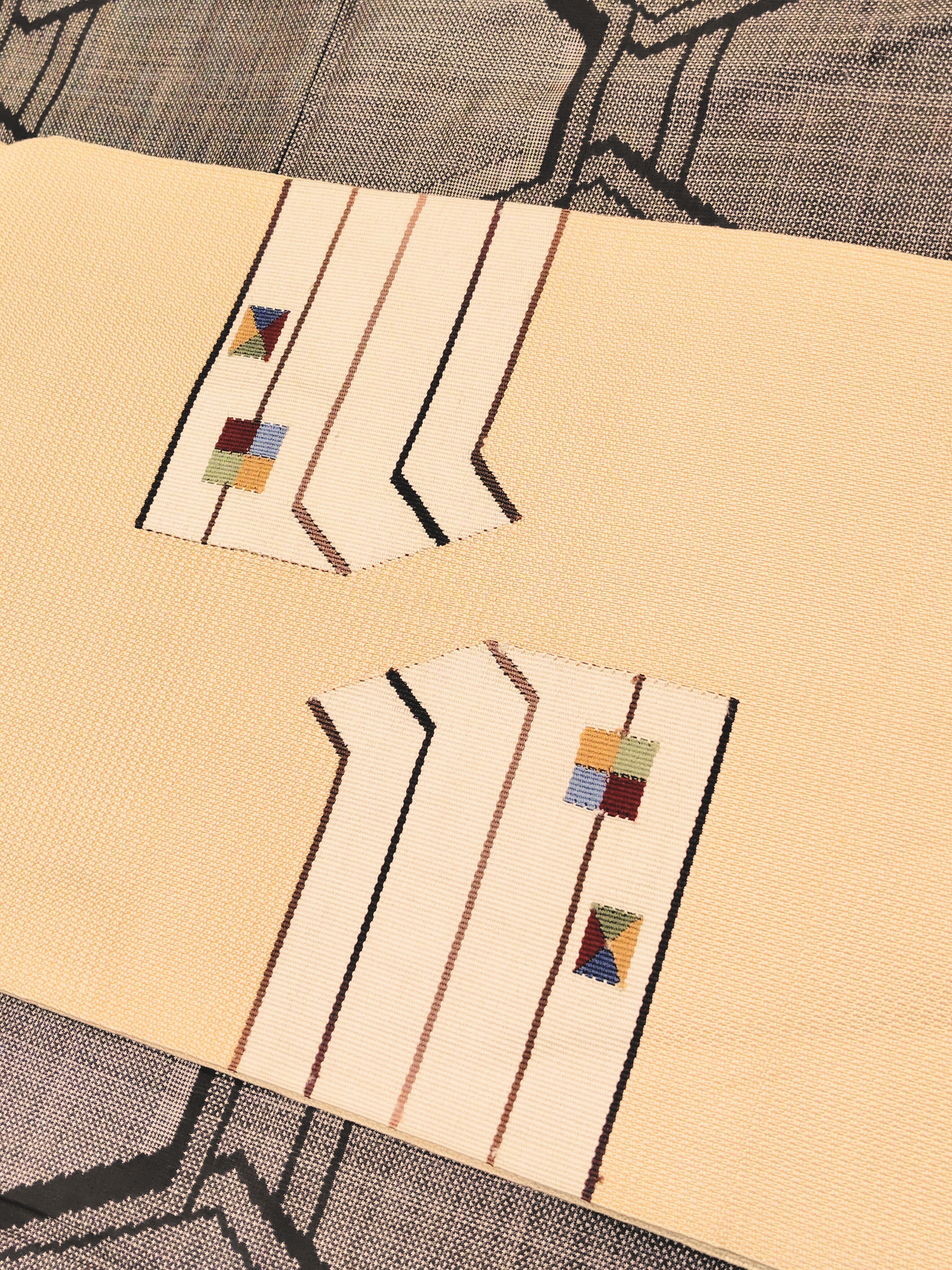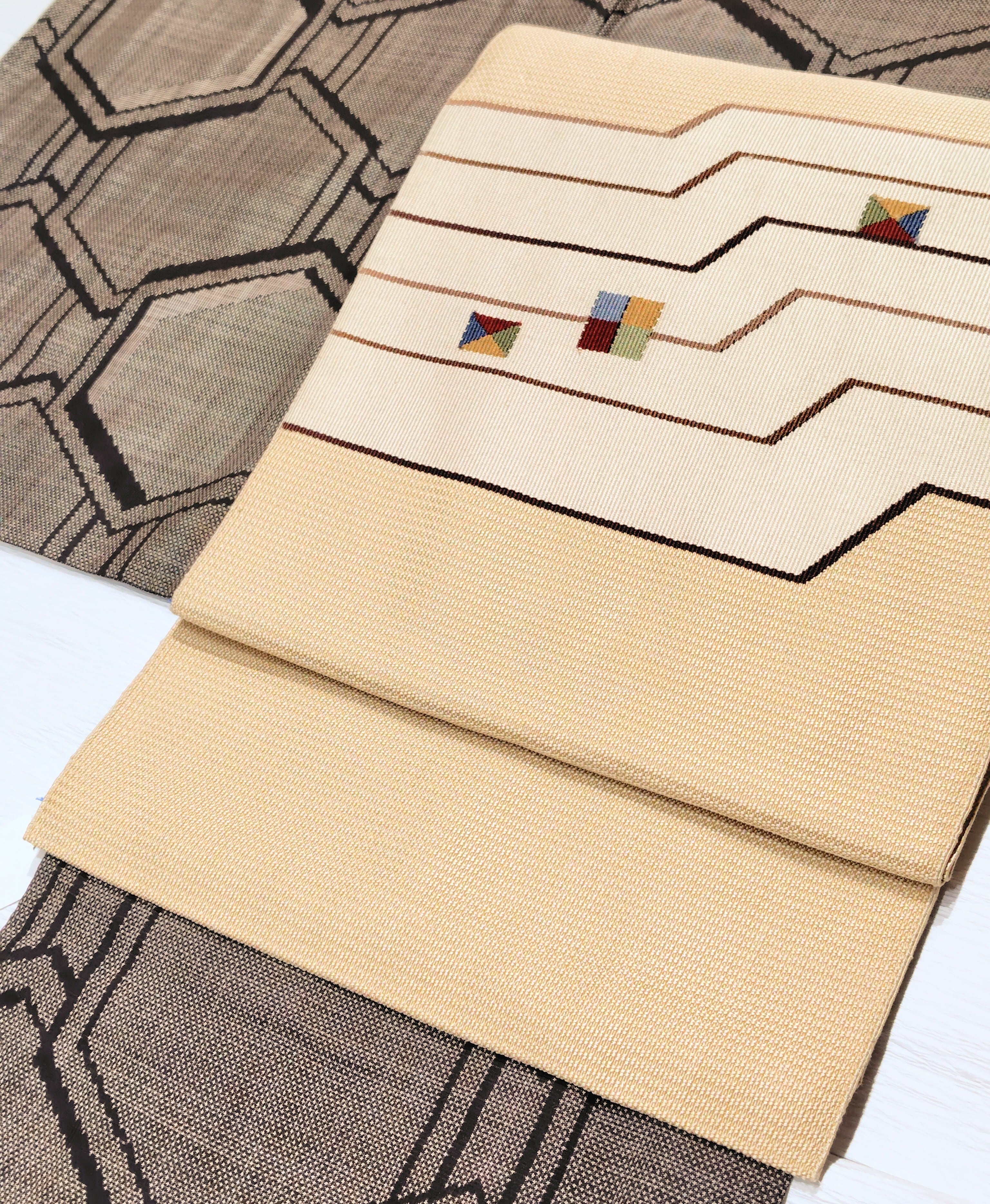 上質で薄手の幾何学柄 八寸名古屋帯です。