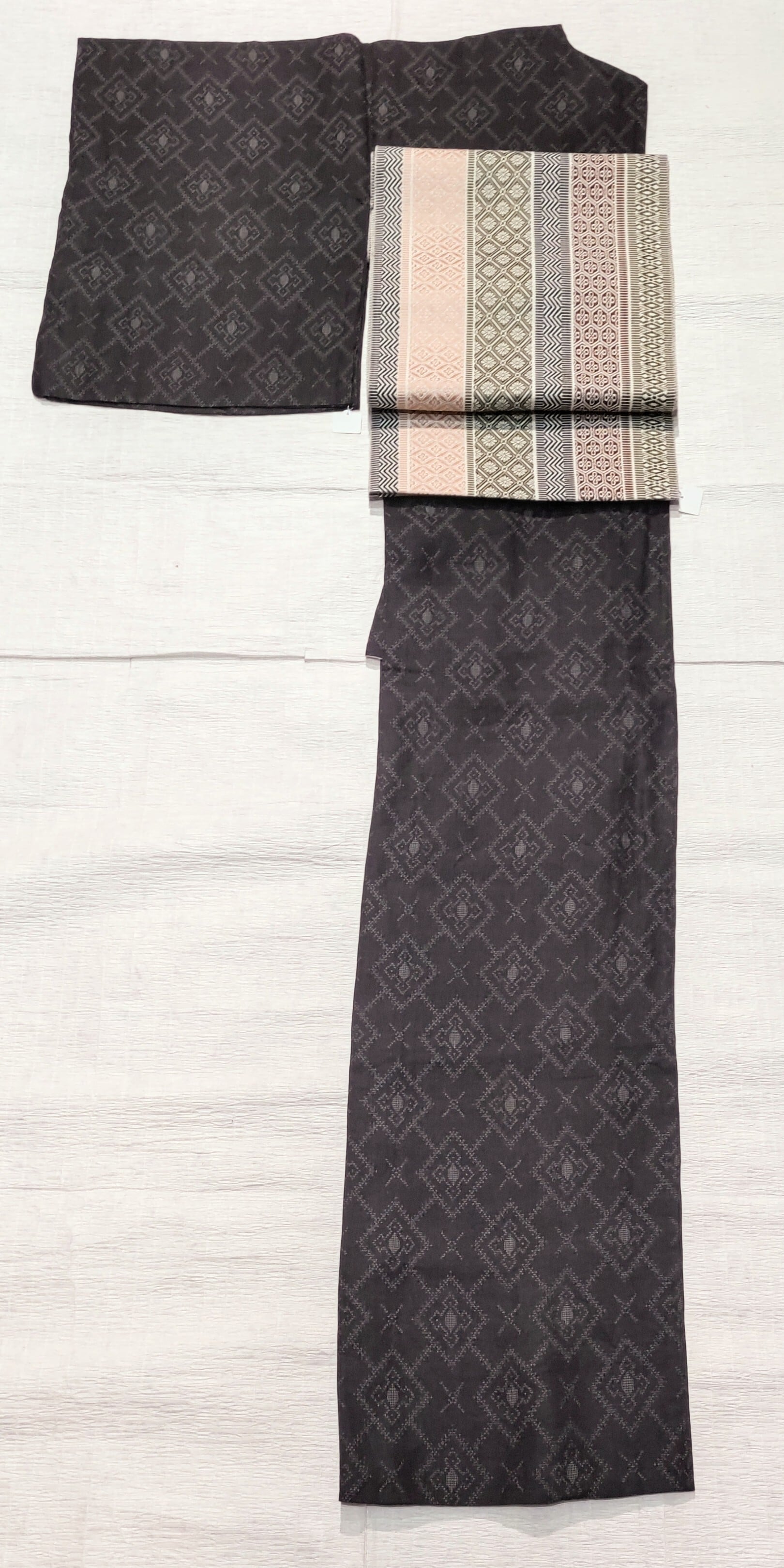 黒地に灰色の絣模様で、すっきりと涼し気な印象です◎
