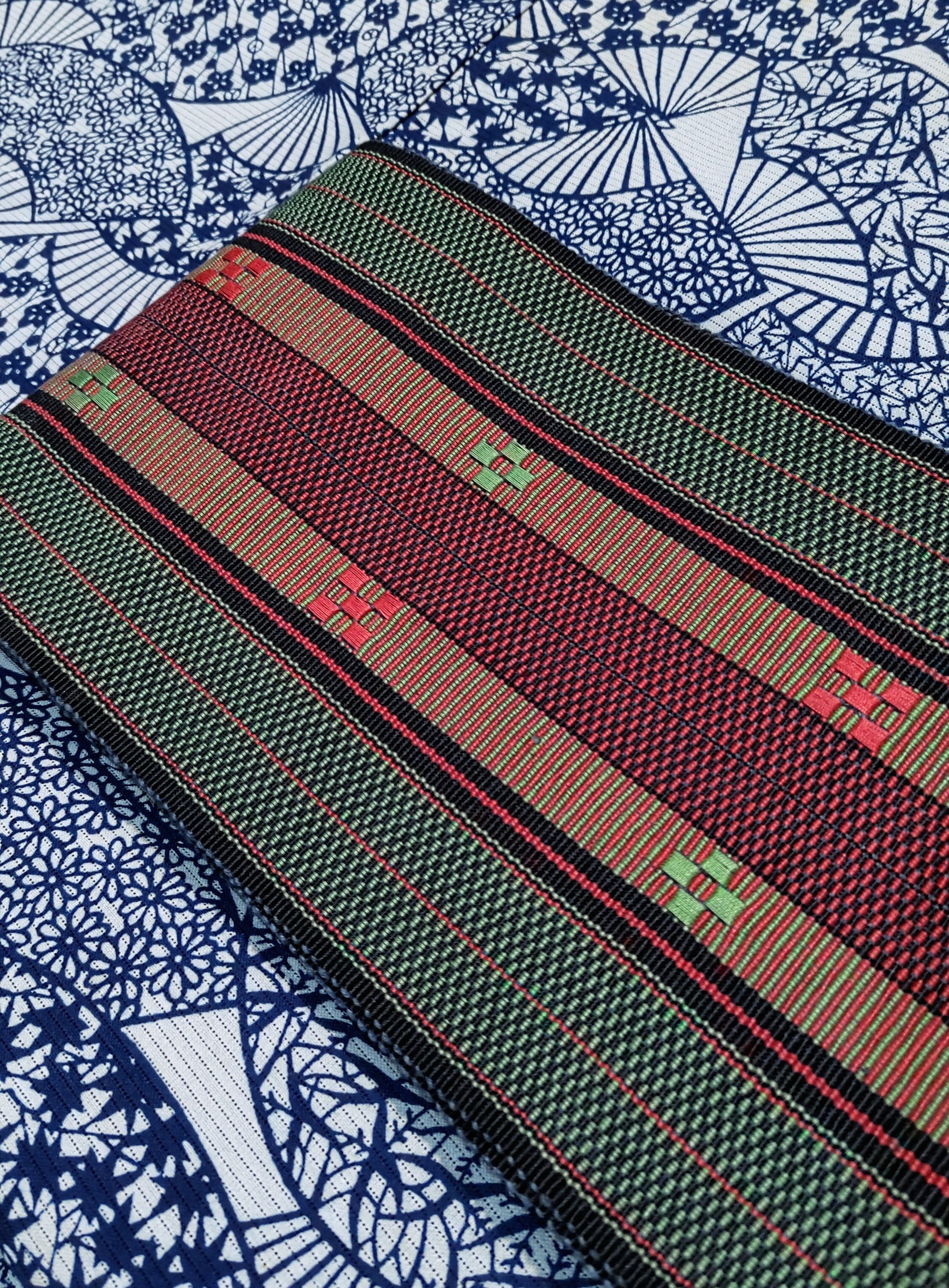 柔らかな木綿をしっかりと織ってあるので、しなやかさや軽さがとても着心地よく大人気のミンサーの帯。