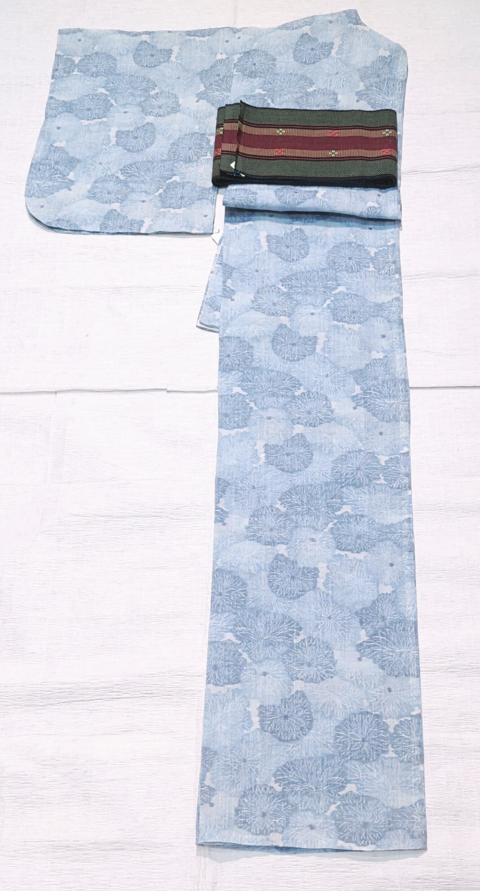 麻100%で通気性があり大変涼しく、汗をかいたり、水洗いしても乾きやすくお手入れもとても楽なお着物です◎