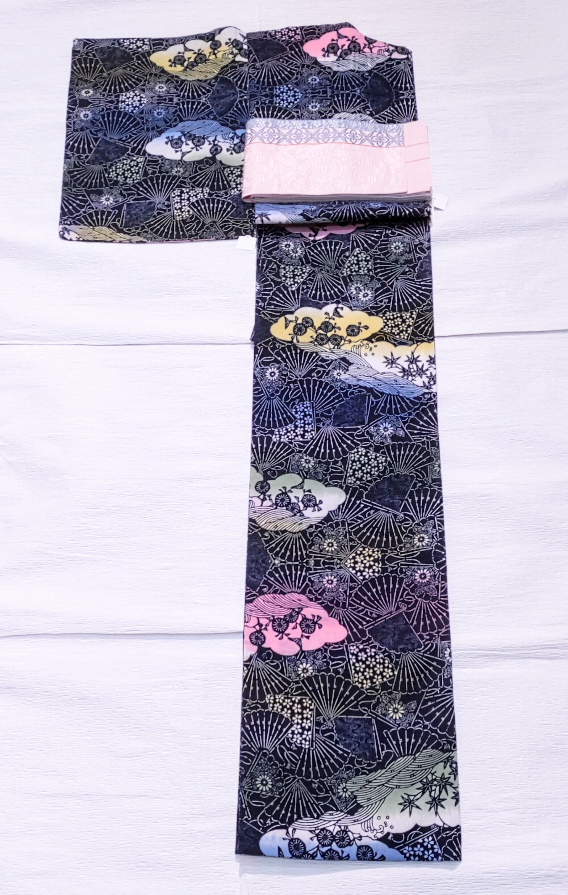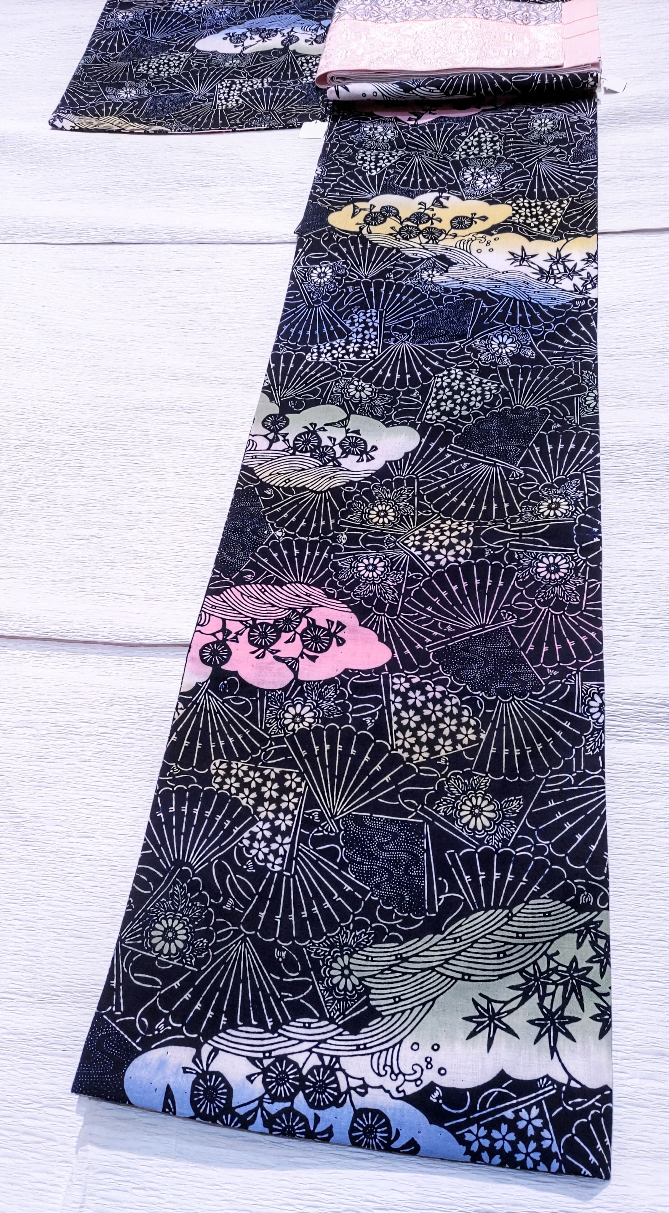 注染浴衣の逸品 扇に雲取り〜粋な美しさ~です。