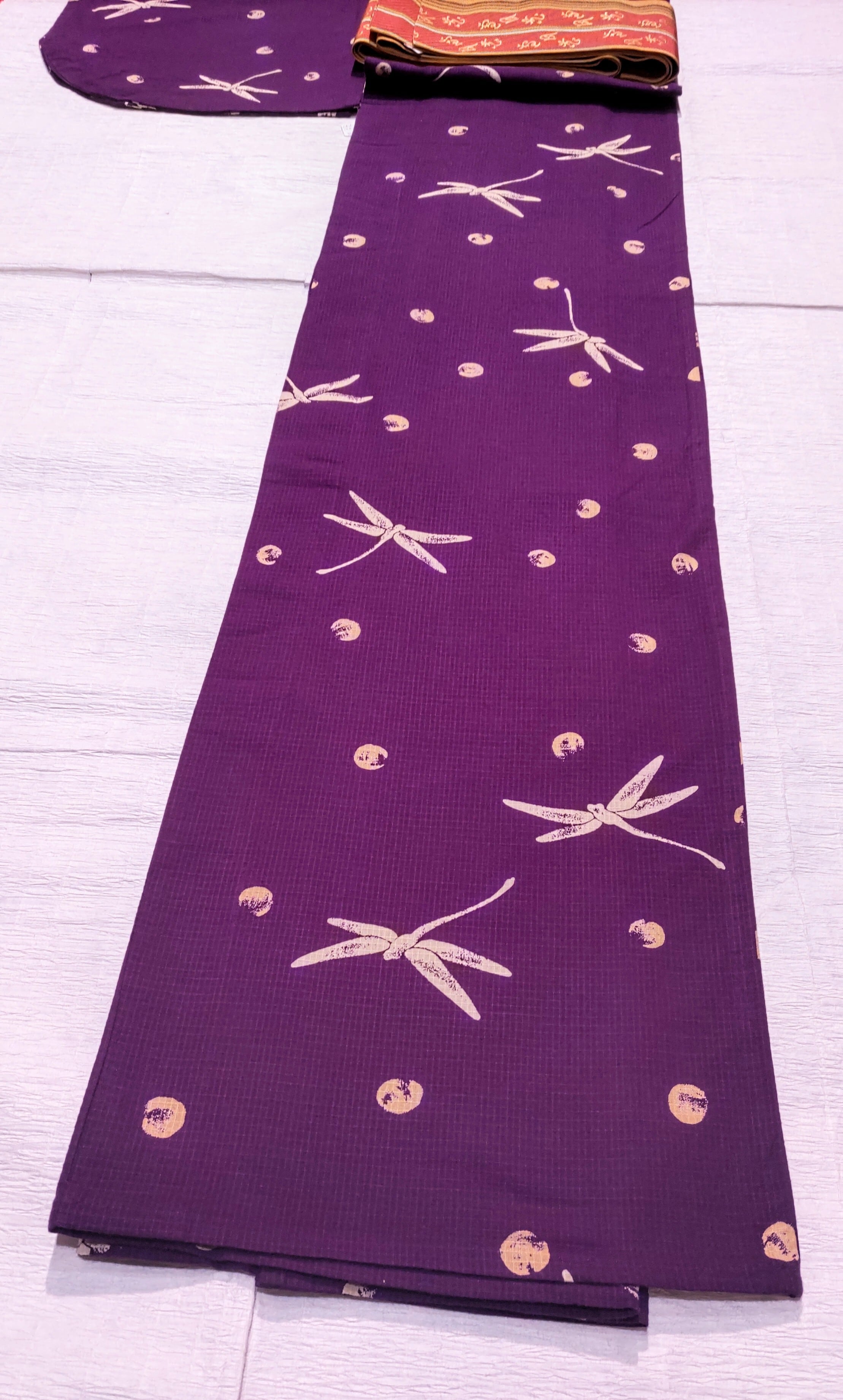 綿紅梅 蜻蛉柄の紫色の浴衣