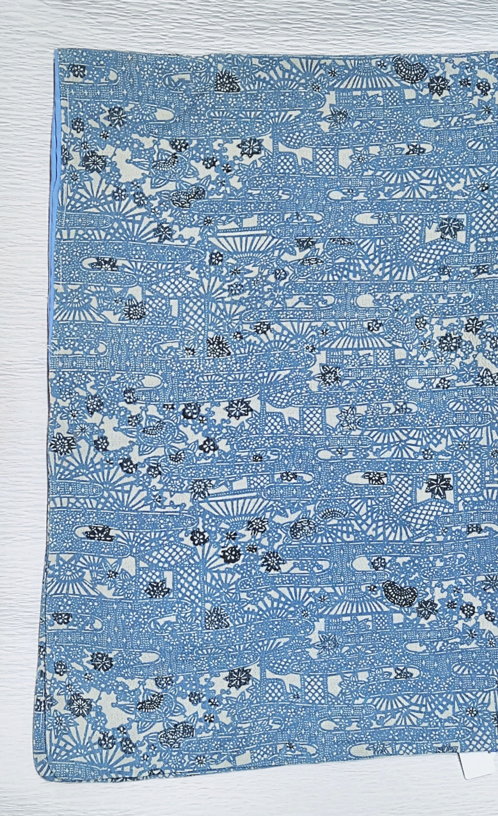 縮緬地の藍染め小紋 古典柄