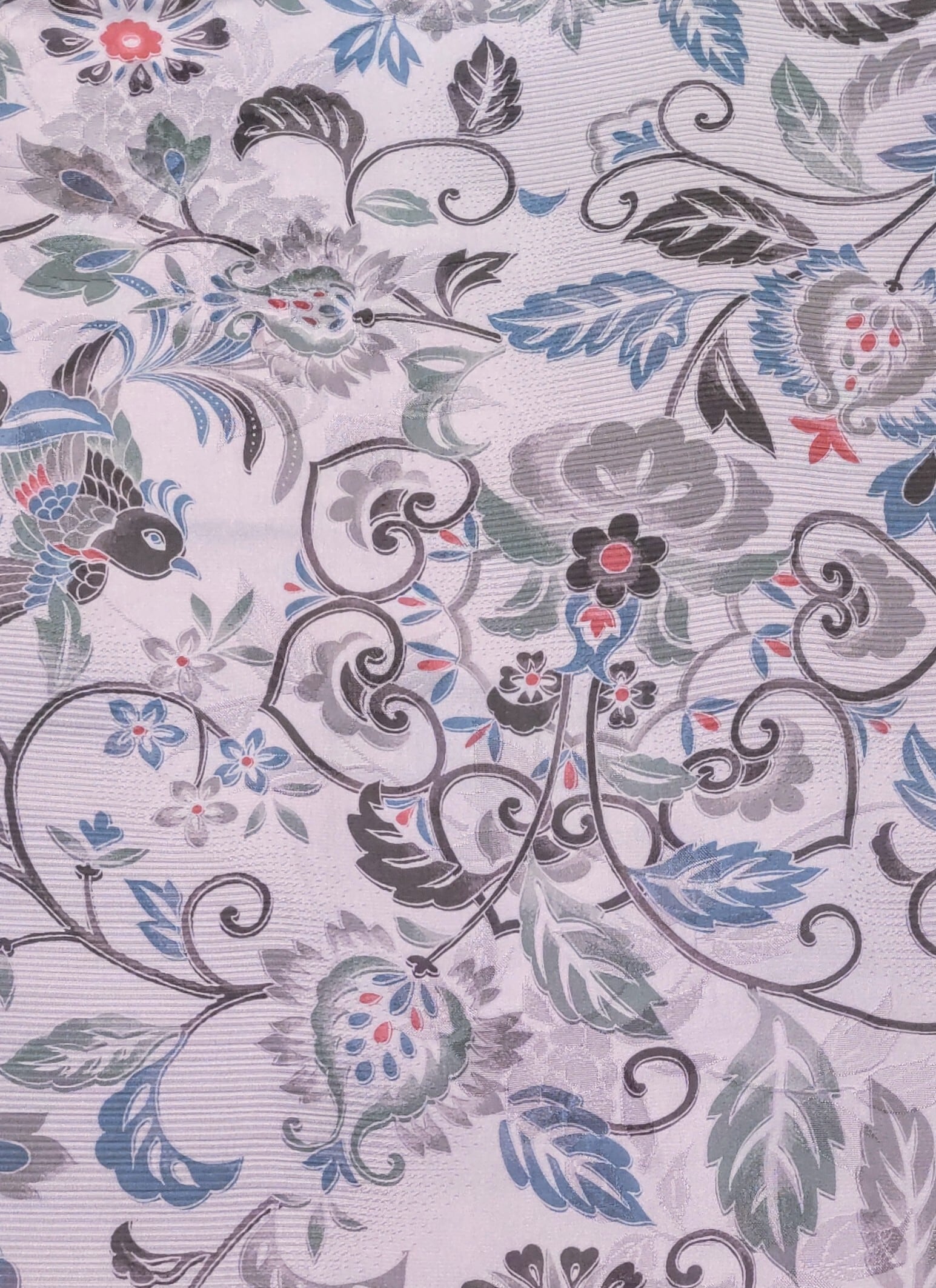 また尾の長い愛らしい小鳥さんも染められていますが、おそらく長尾鶏や鳳凰を可愛く愛らしくデフォルメしたデザインだと思われます。