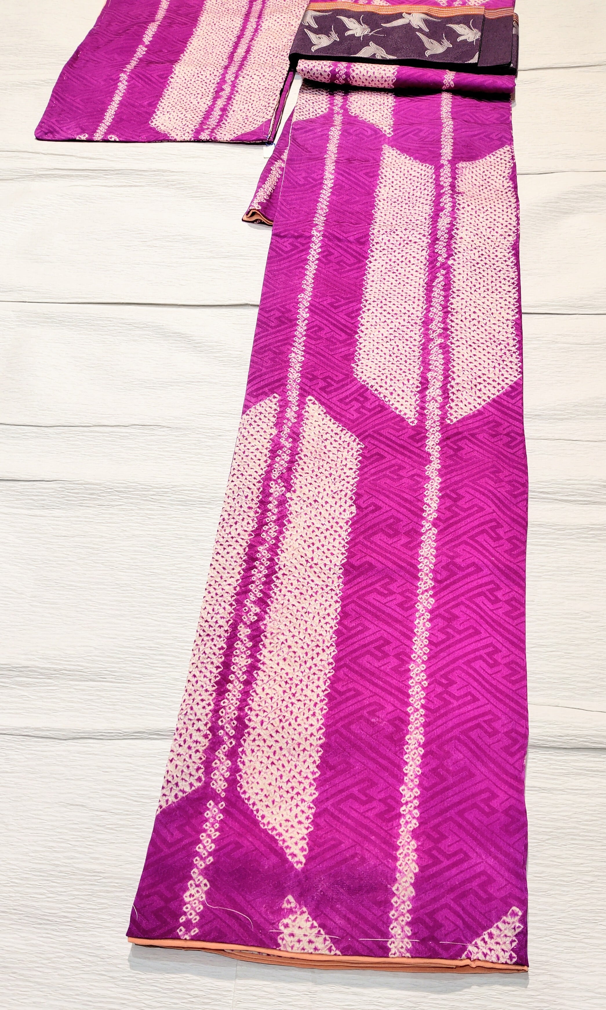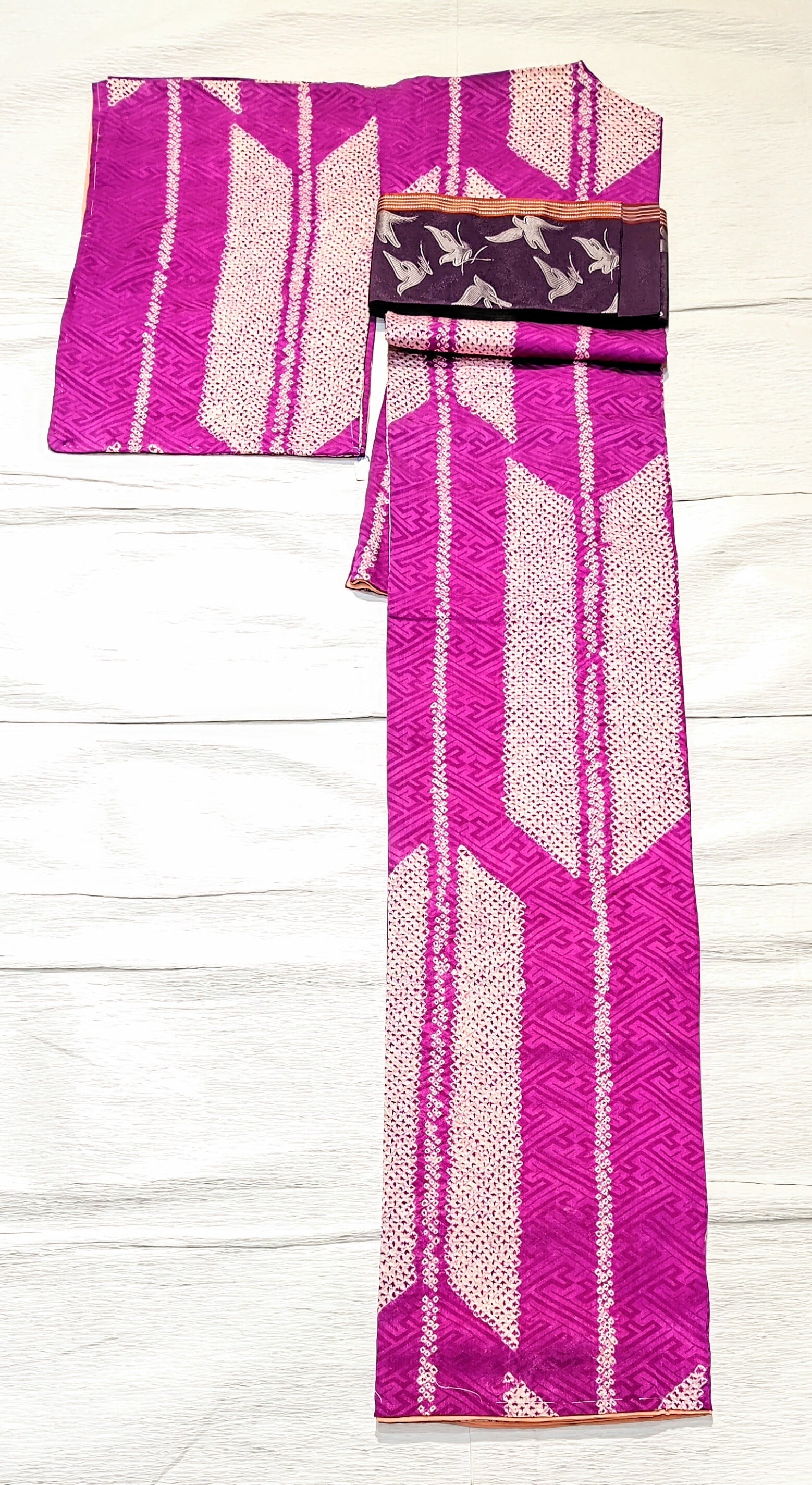 アンティークの絞り小紋 矢羽根柄 丈153cmです。