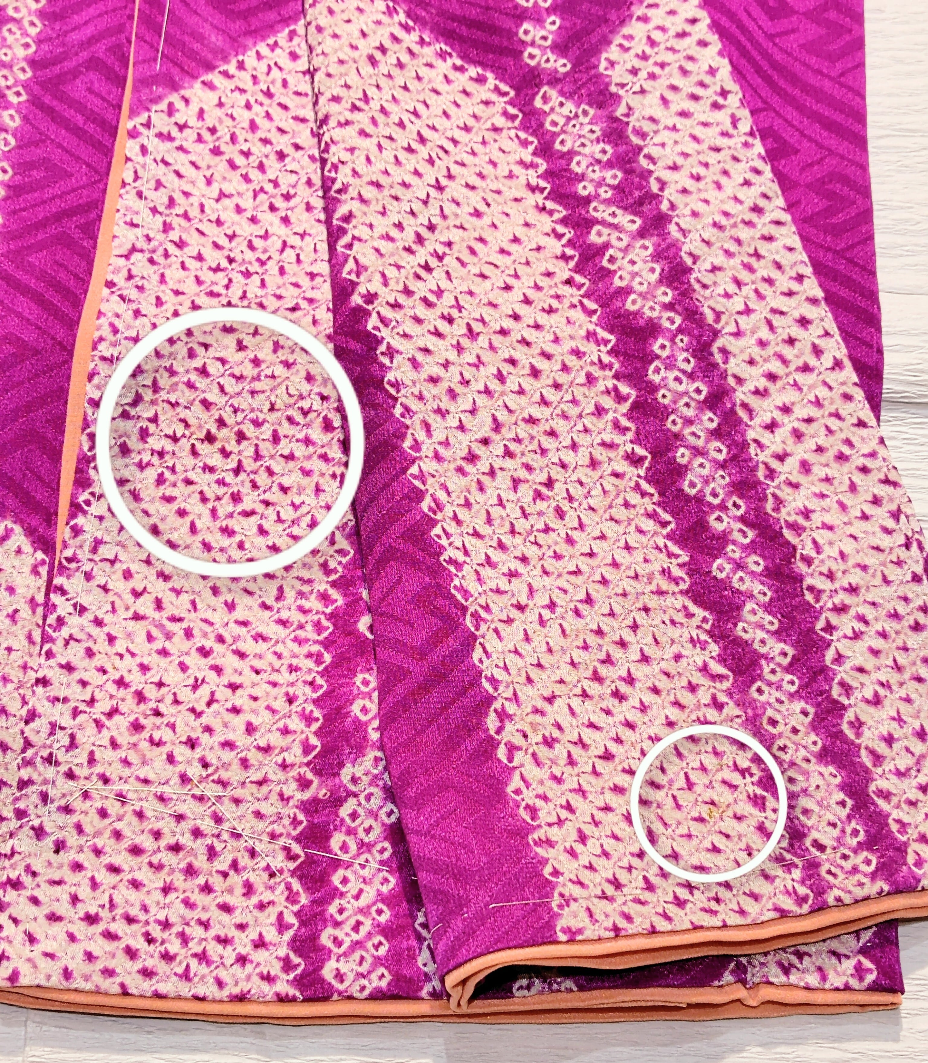 仕立て直しの際になるべく綺麗な部分を見える位置にしてくださった、和裁士さんの心配りが伝わります。