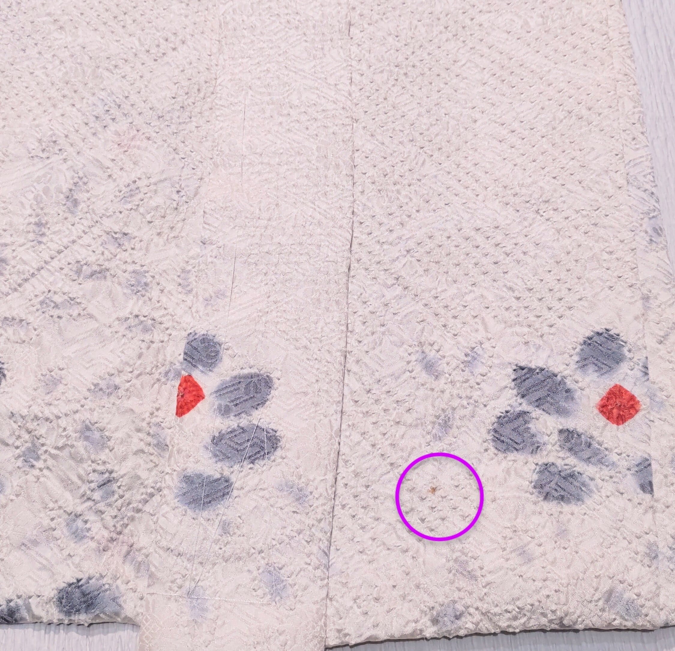 とても珍しい綺麗な白地は綸子の光沢感により、まるで真珠のように輝いて見えます。