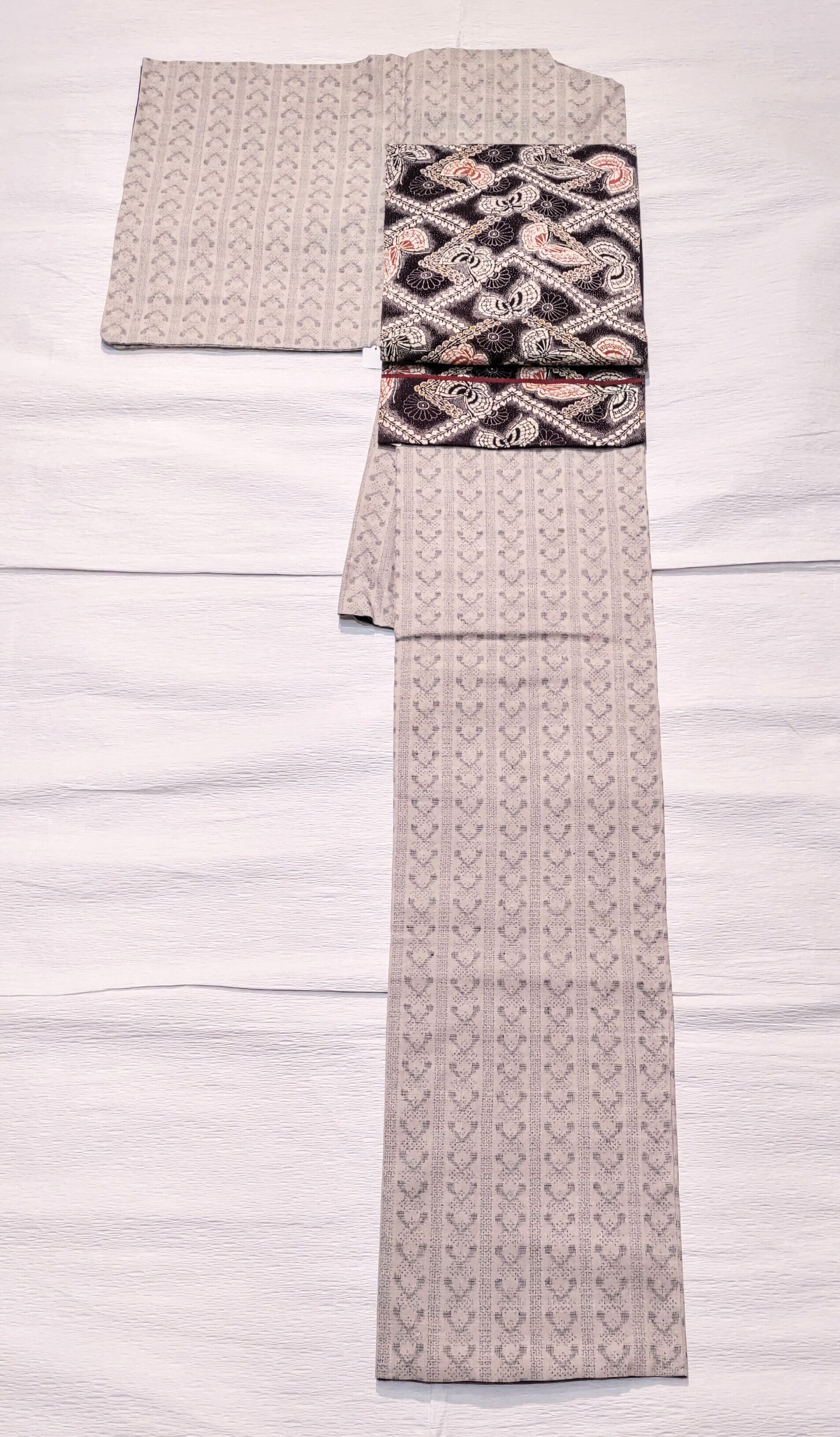 特に白色に近いグレー色は帯や羽織りのお色次第で季節感を変えて、様々な着こなしをお楽しみ頂けるのも、嬉しいポイント。