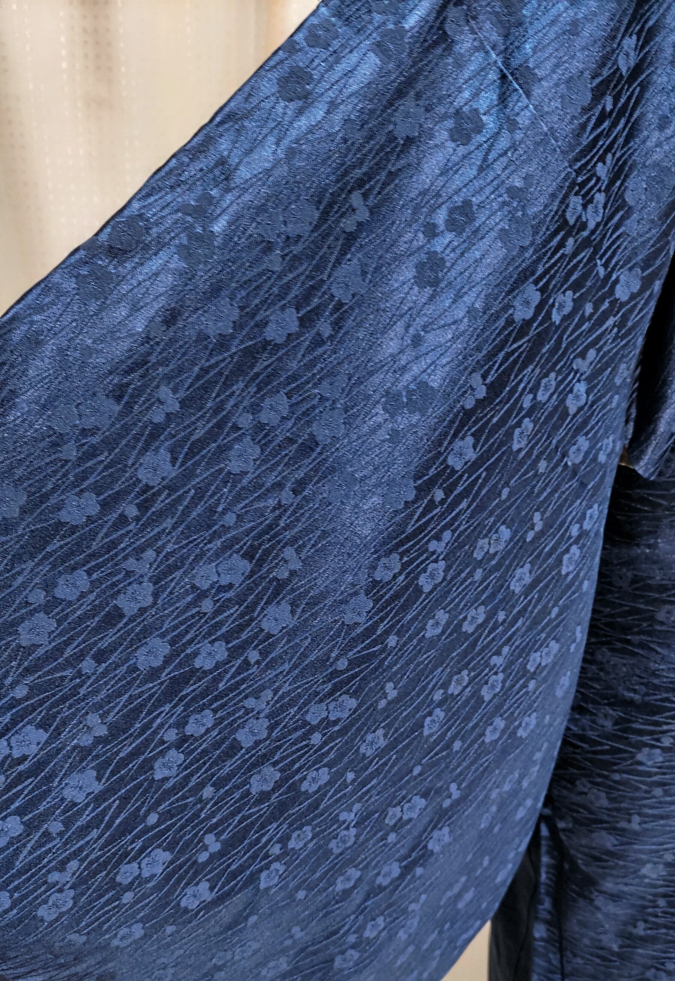 とても珍しい綺麗な紺地は綸子の光沢感により、より美しいお色に見えます。