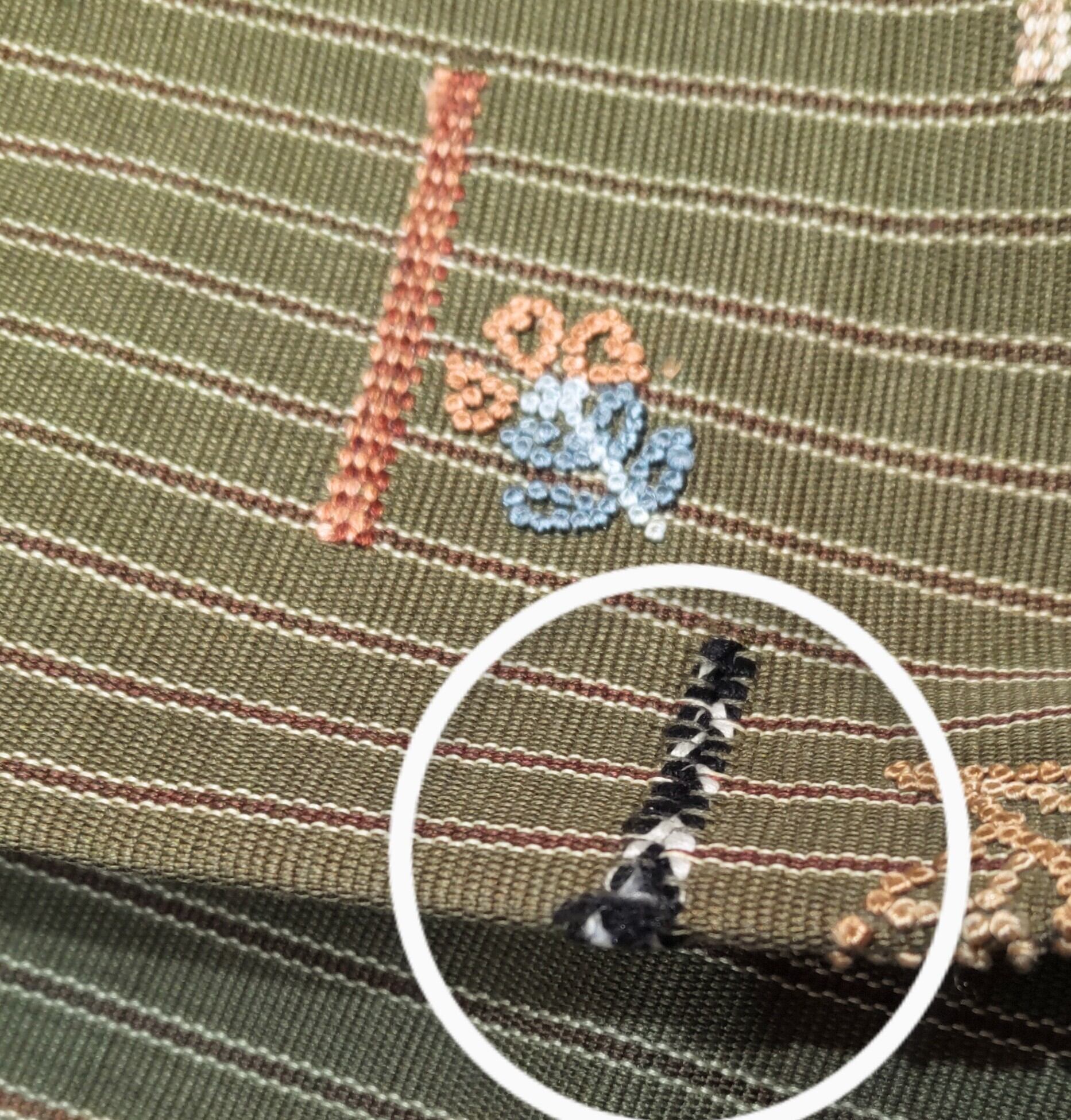 前柄の片面に一部糸が飛び出しているように見えますが、下線なのであまり目立たないと思います。)