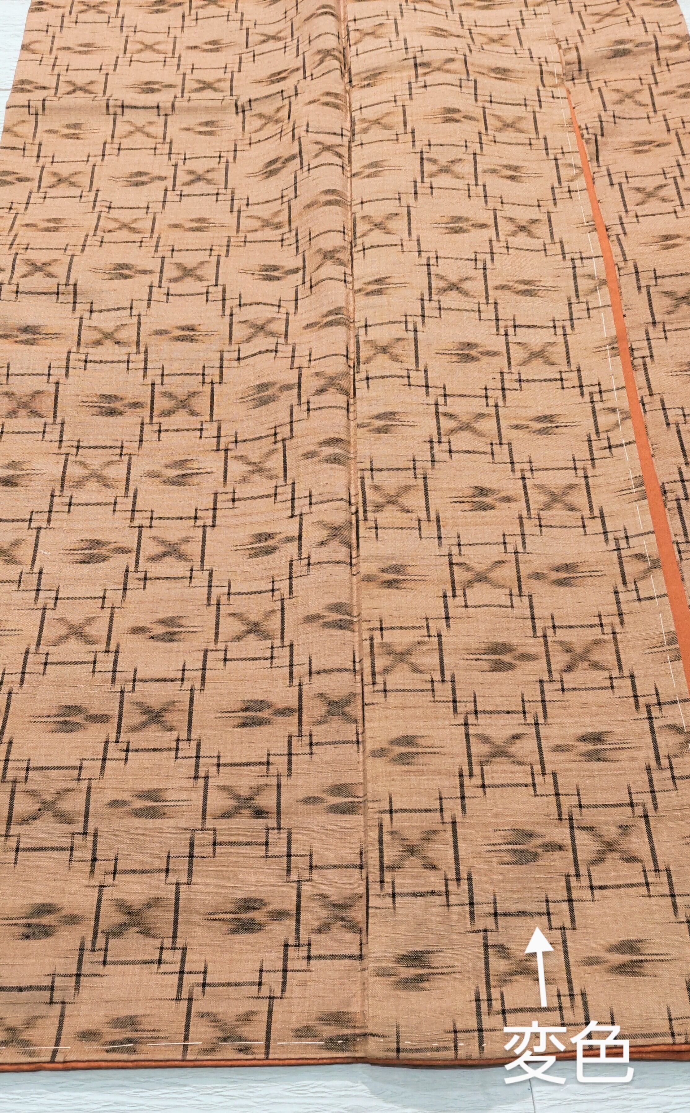 本場久米島紬 薄いベージュ色 寸法長尺