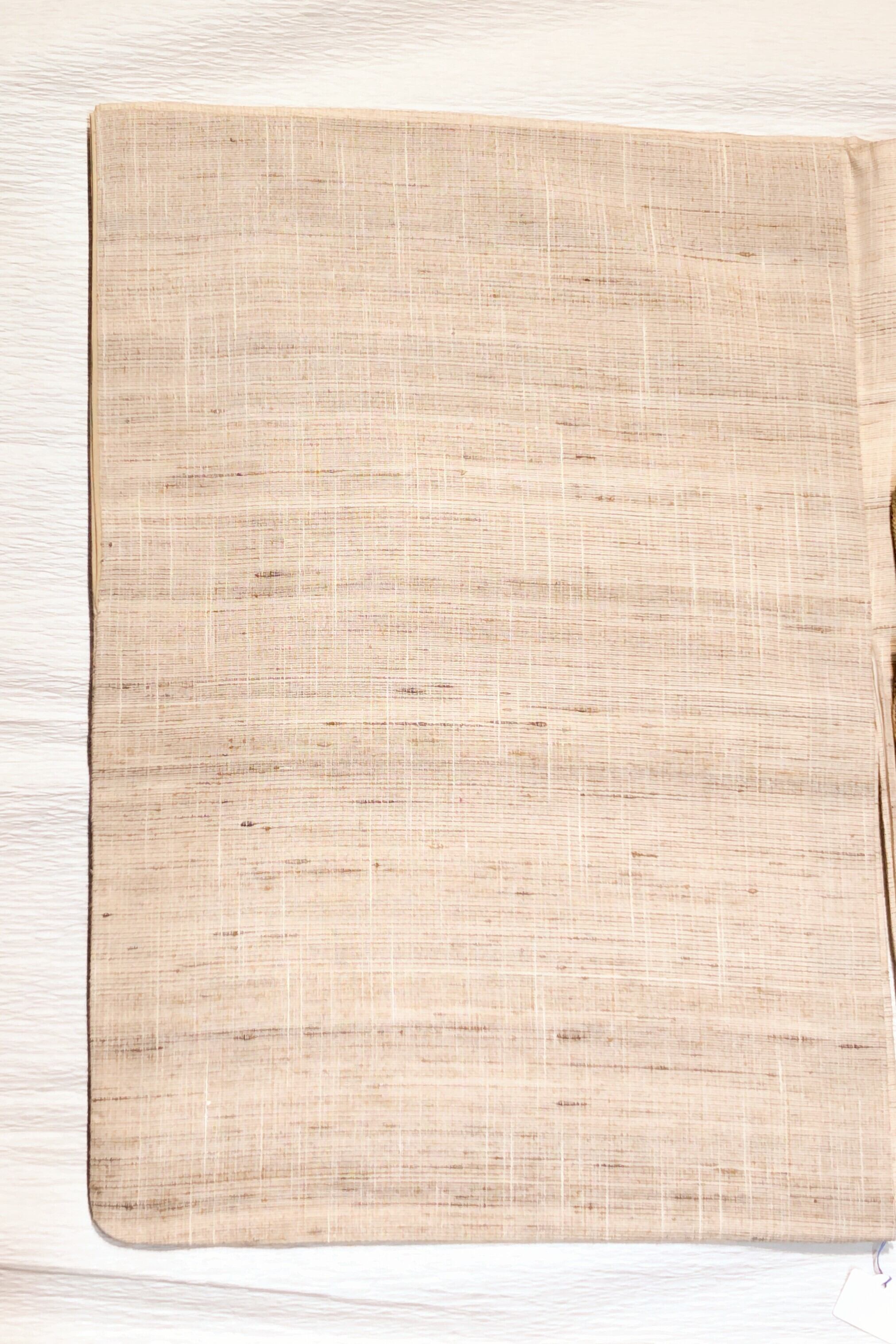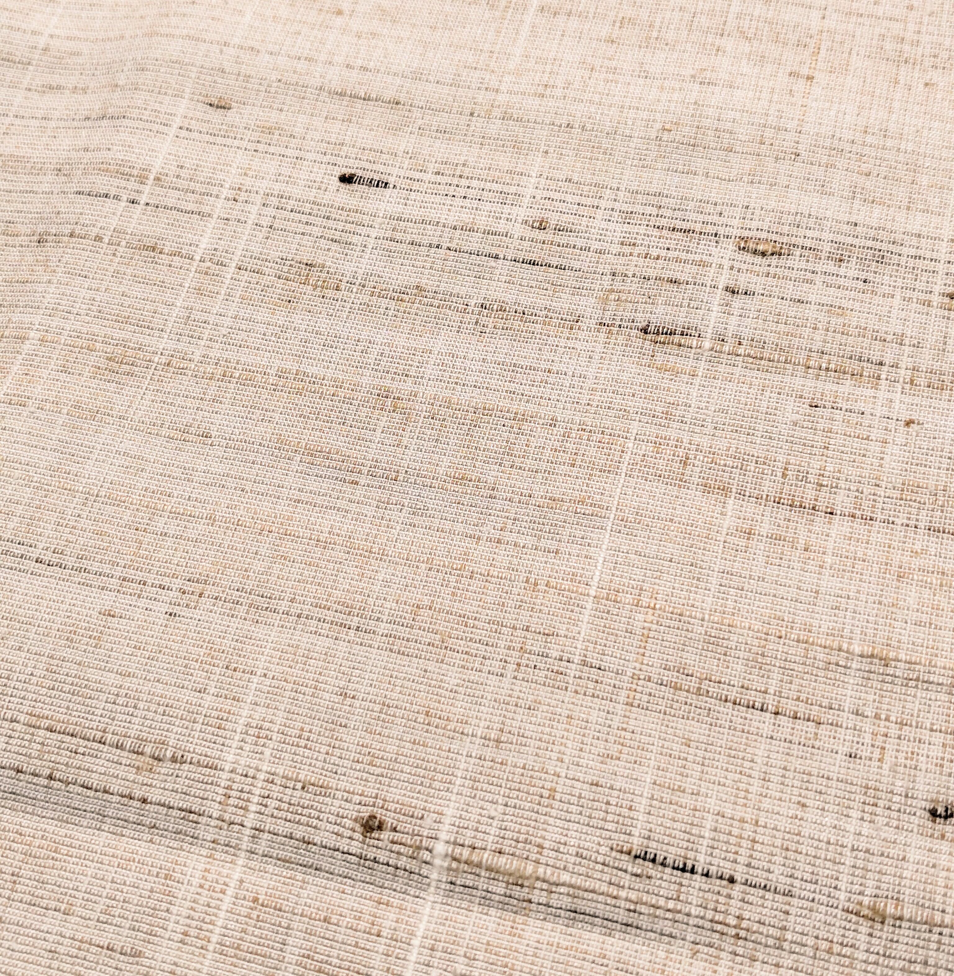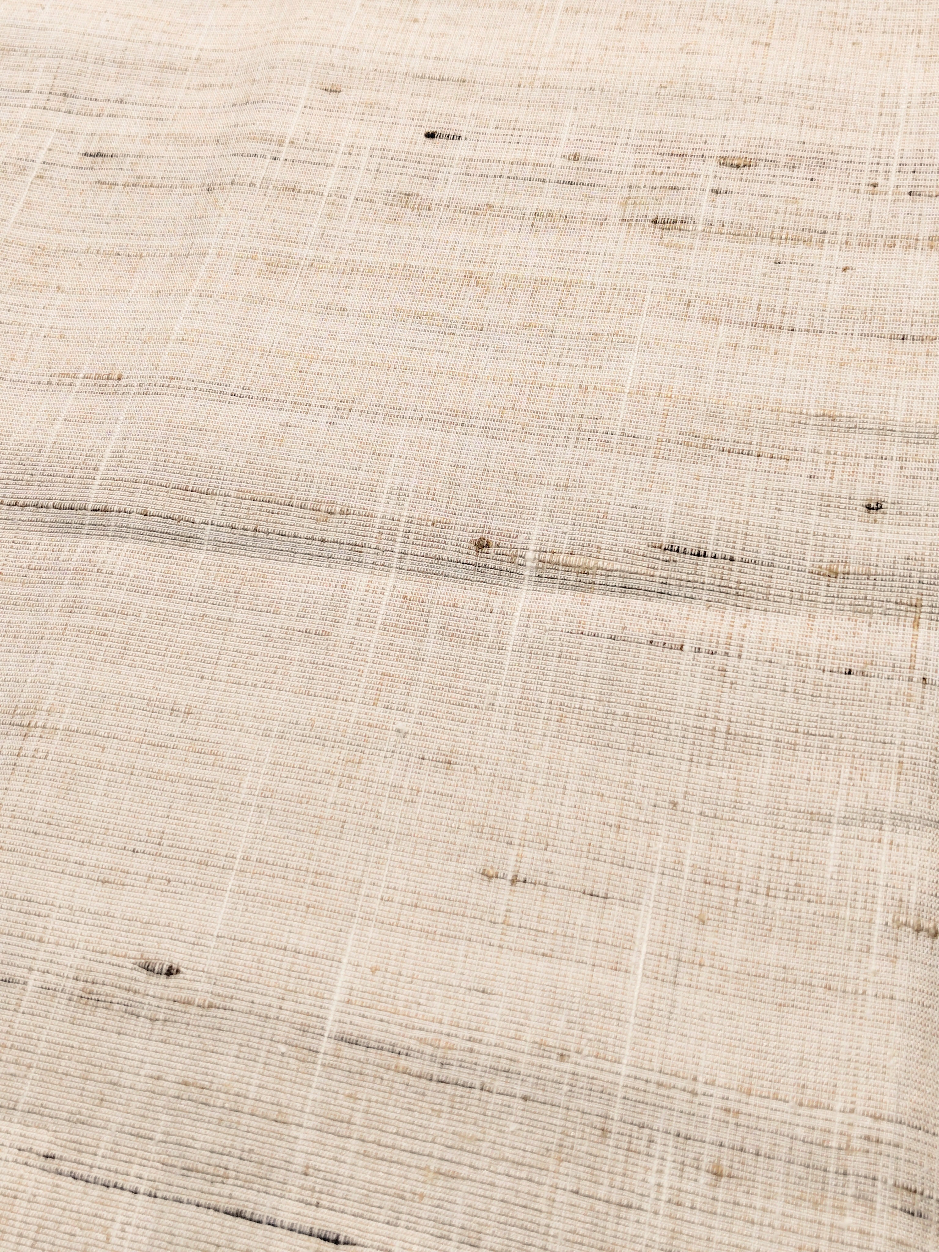 白色に限りなく近い灰色の、ざっくりとした節が美しい紬です。